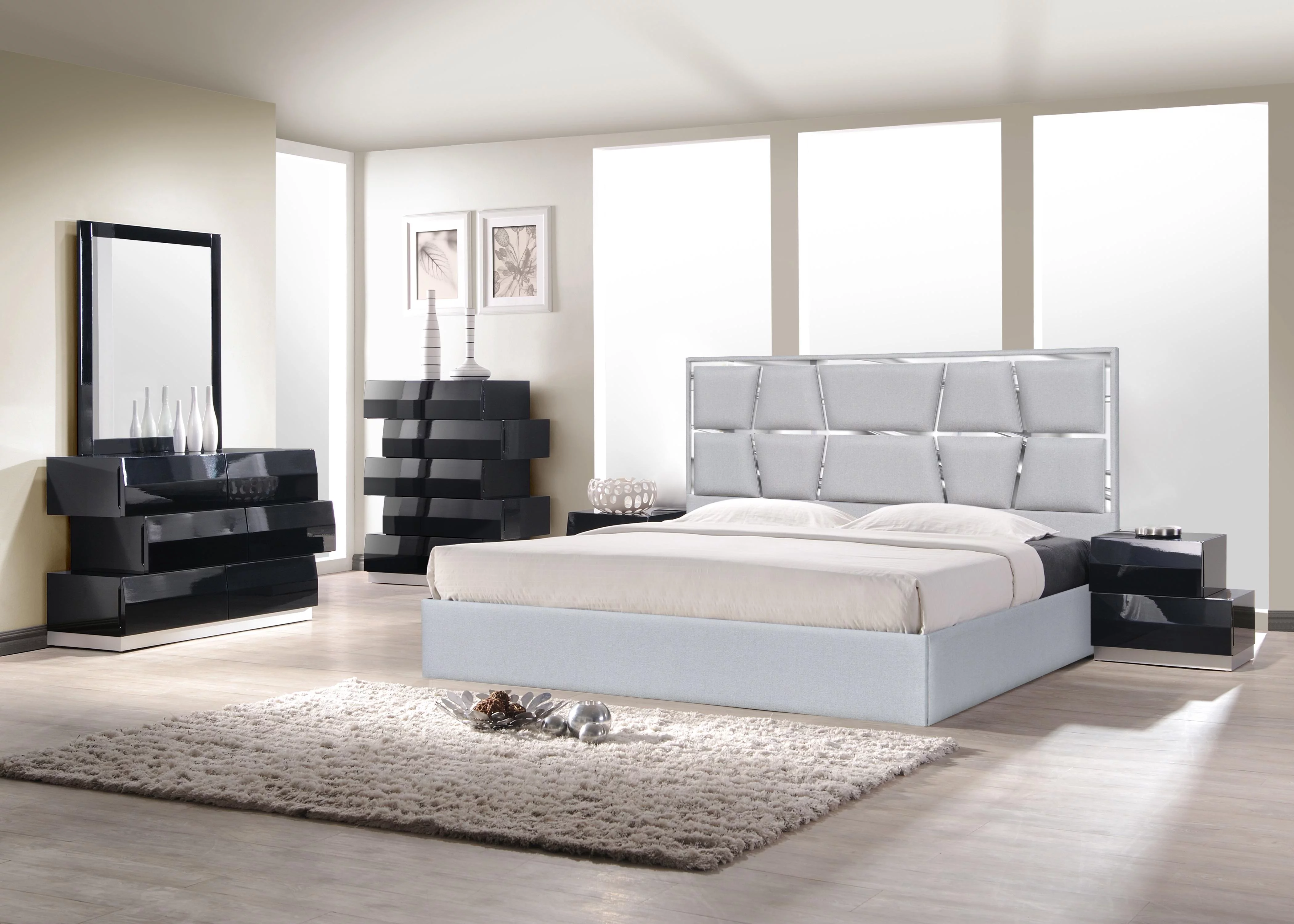 Light Gray Woven Canvas King Platform Bed Contemporary J&M Furniture Degas