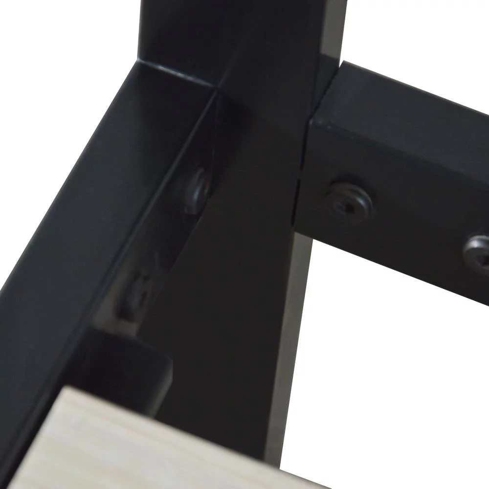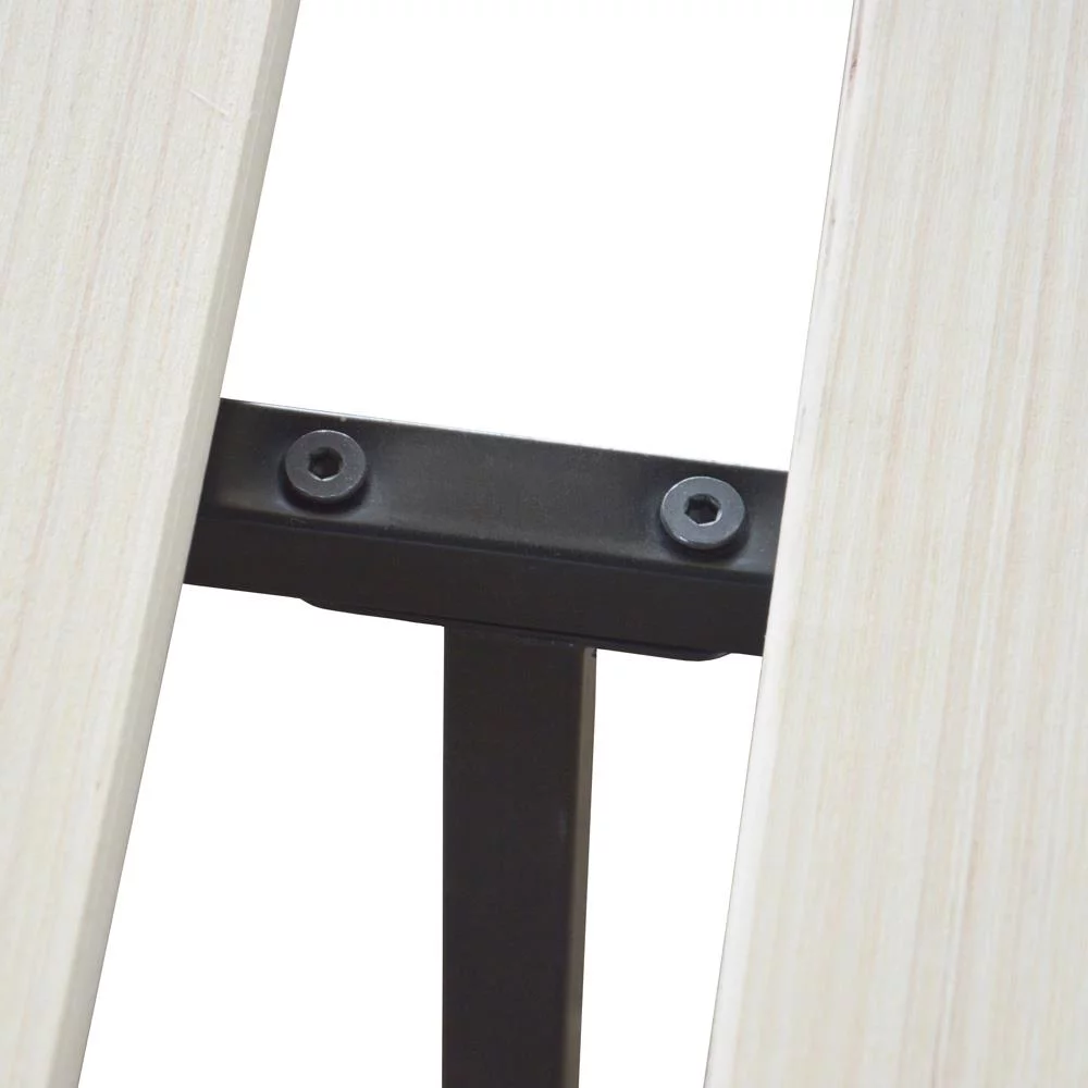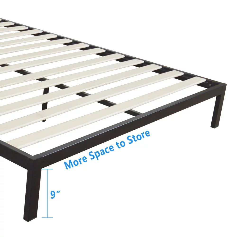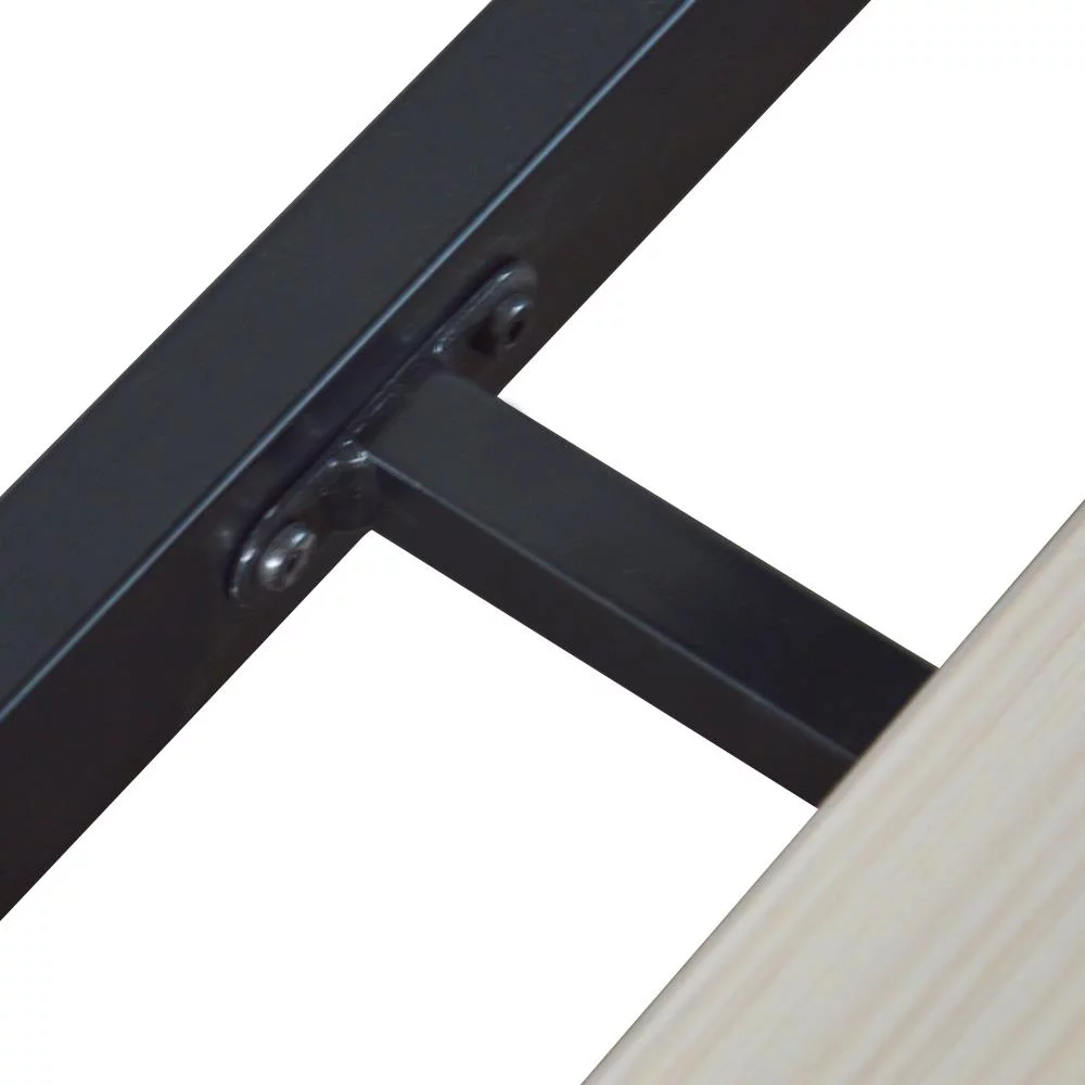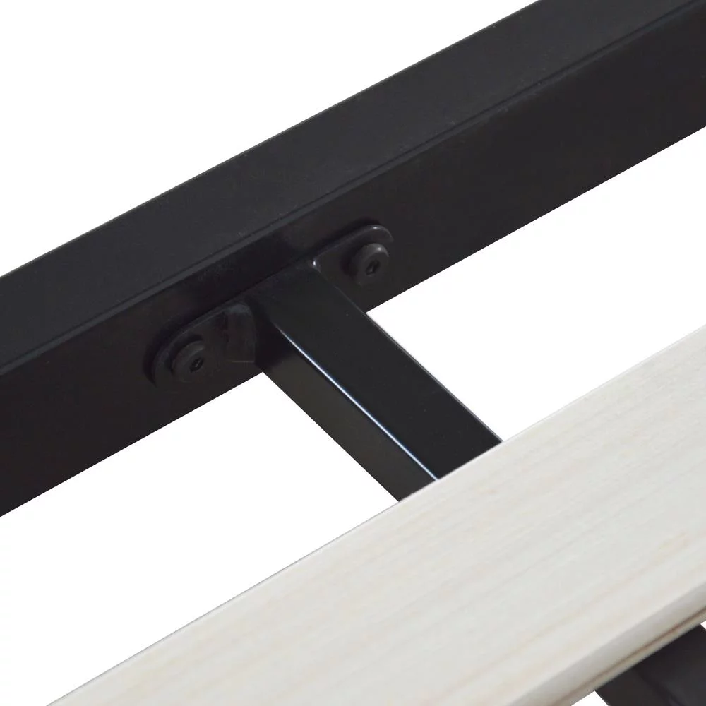 SalonMore Queen Size Square Horizontal Bar Head of Bed Iron Bed,with Headboard and Wooden Slat Support Black