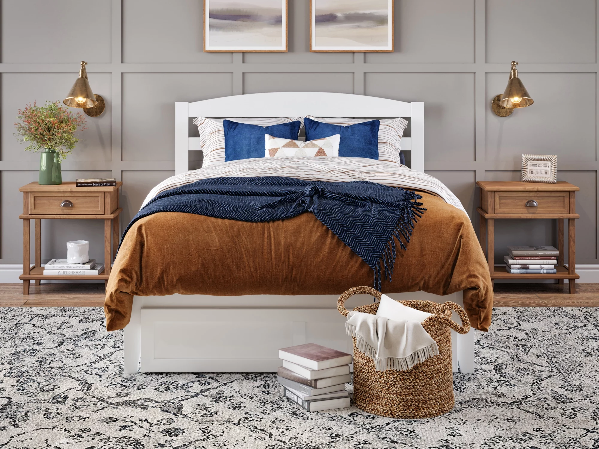 AFI NoHo 14" Full Wood Platform Bed Frame with Foot Drawer Storage, White
