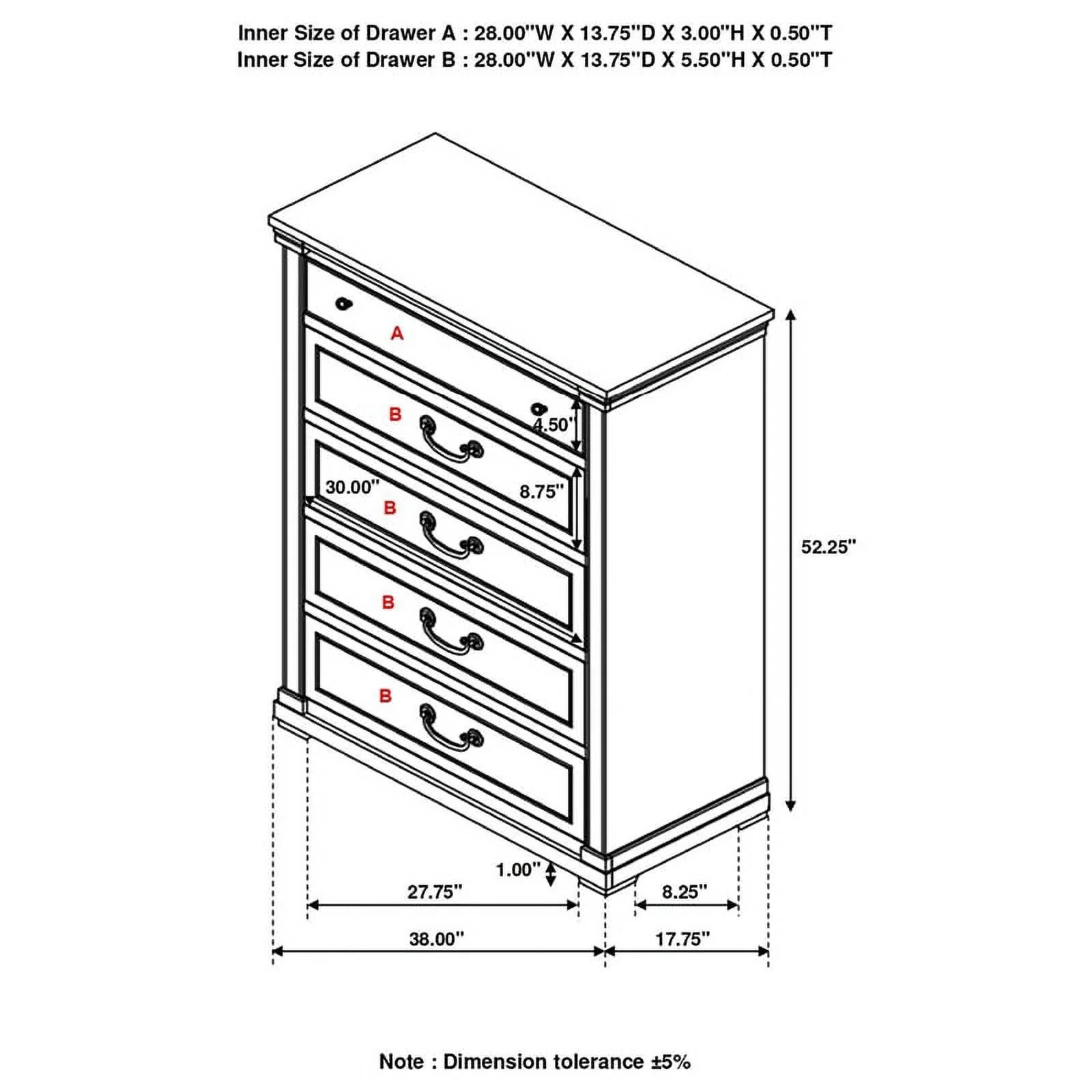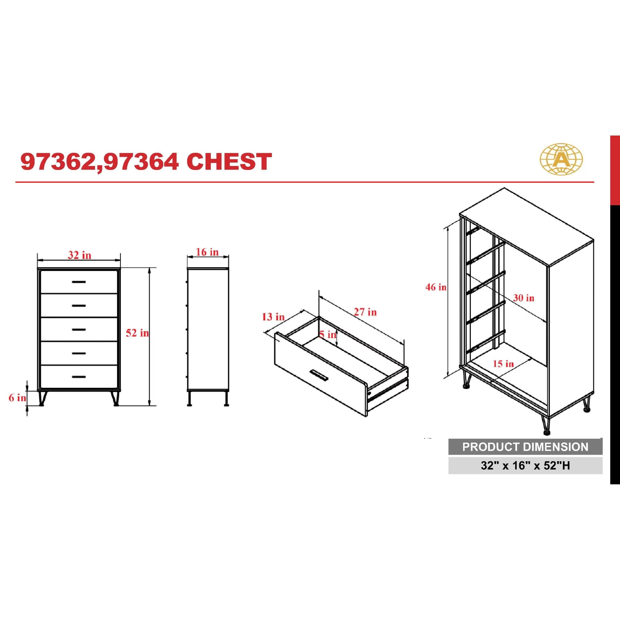 Contemporary Espresso Finish Bedroom 5pc Set Eastern King Bed Dresser Nightstand Chest Mirror