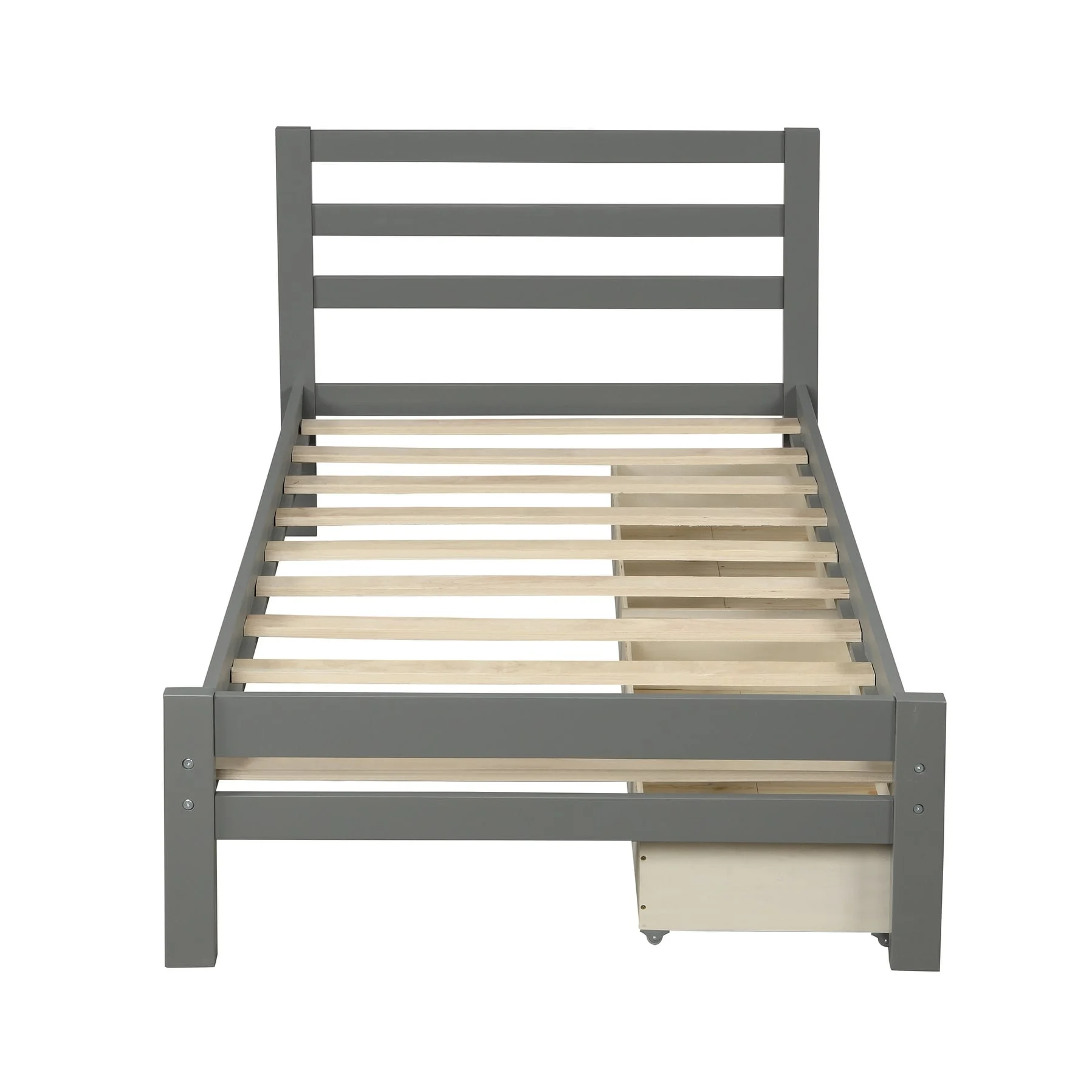 MERAX Wood Twin Bed Frame with Storage Drawers and Headboard White Twin