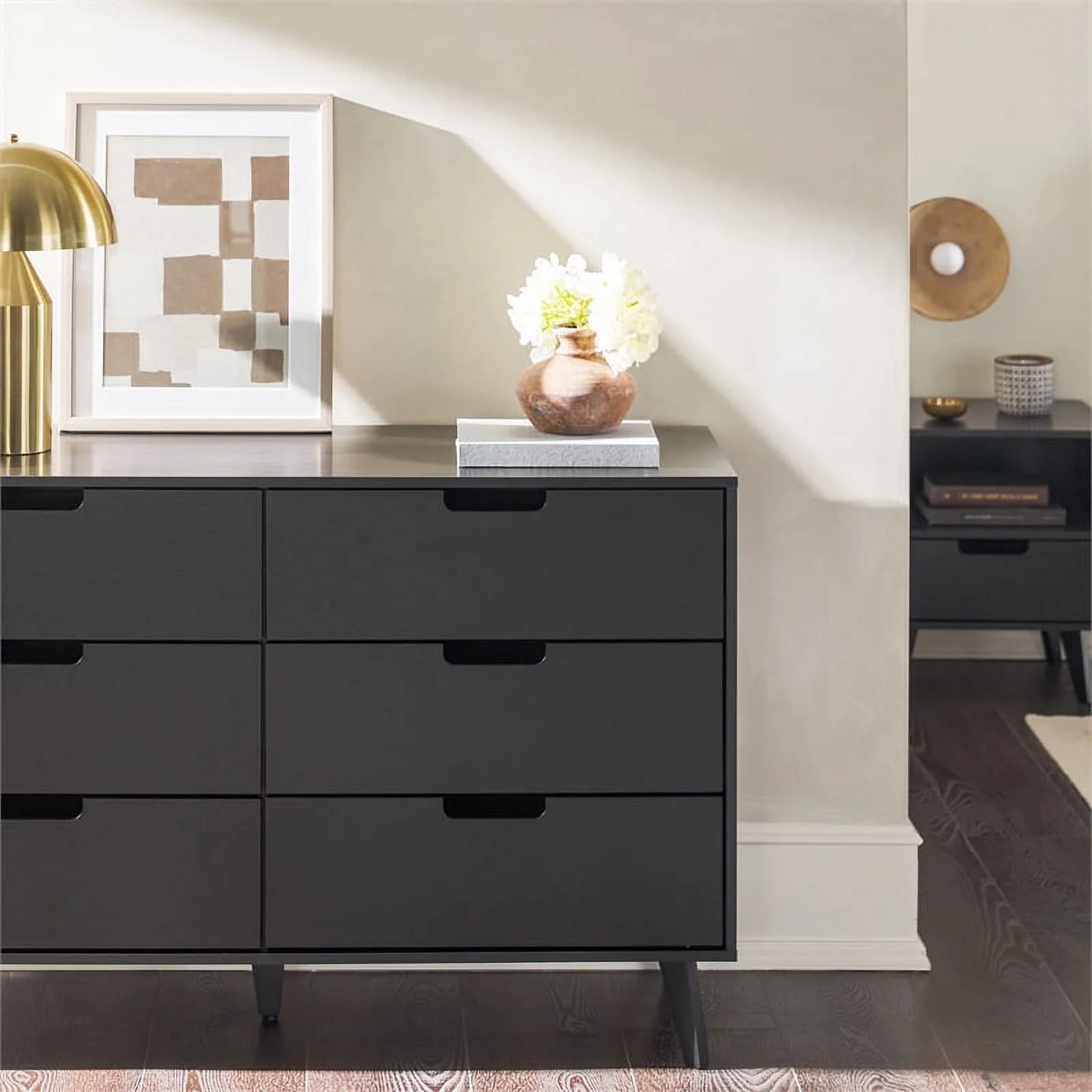 Pemberly Row Simple Wood 6 Drawer Dresser with Cut Out Handles - Black