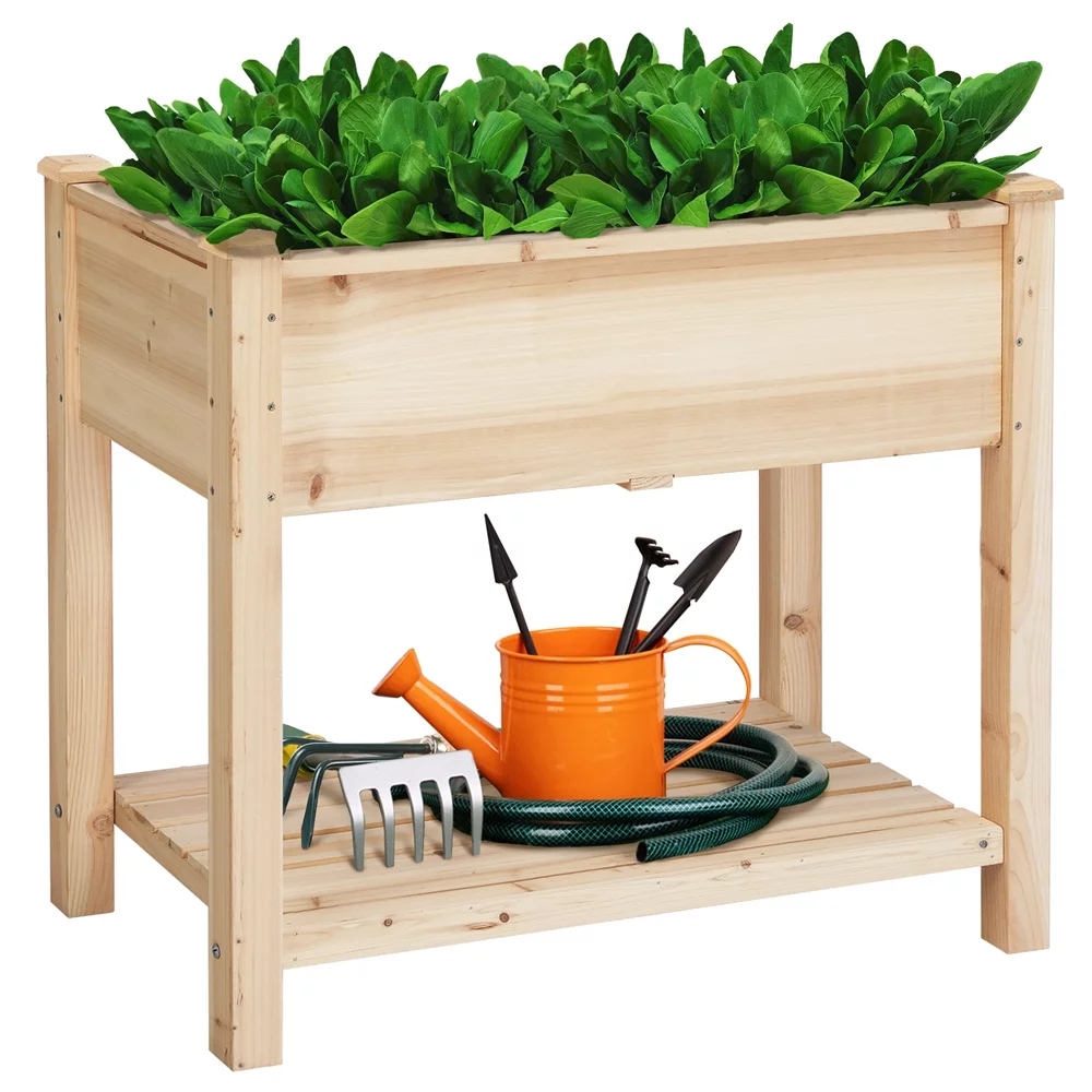 SmileMart 2 Tiers Wooden Raised Garden Bed Elevated Planter Box for Indoor/Outdoor Wood