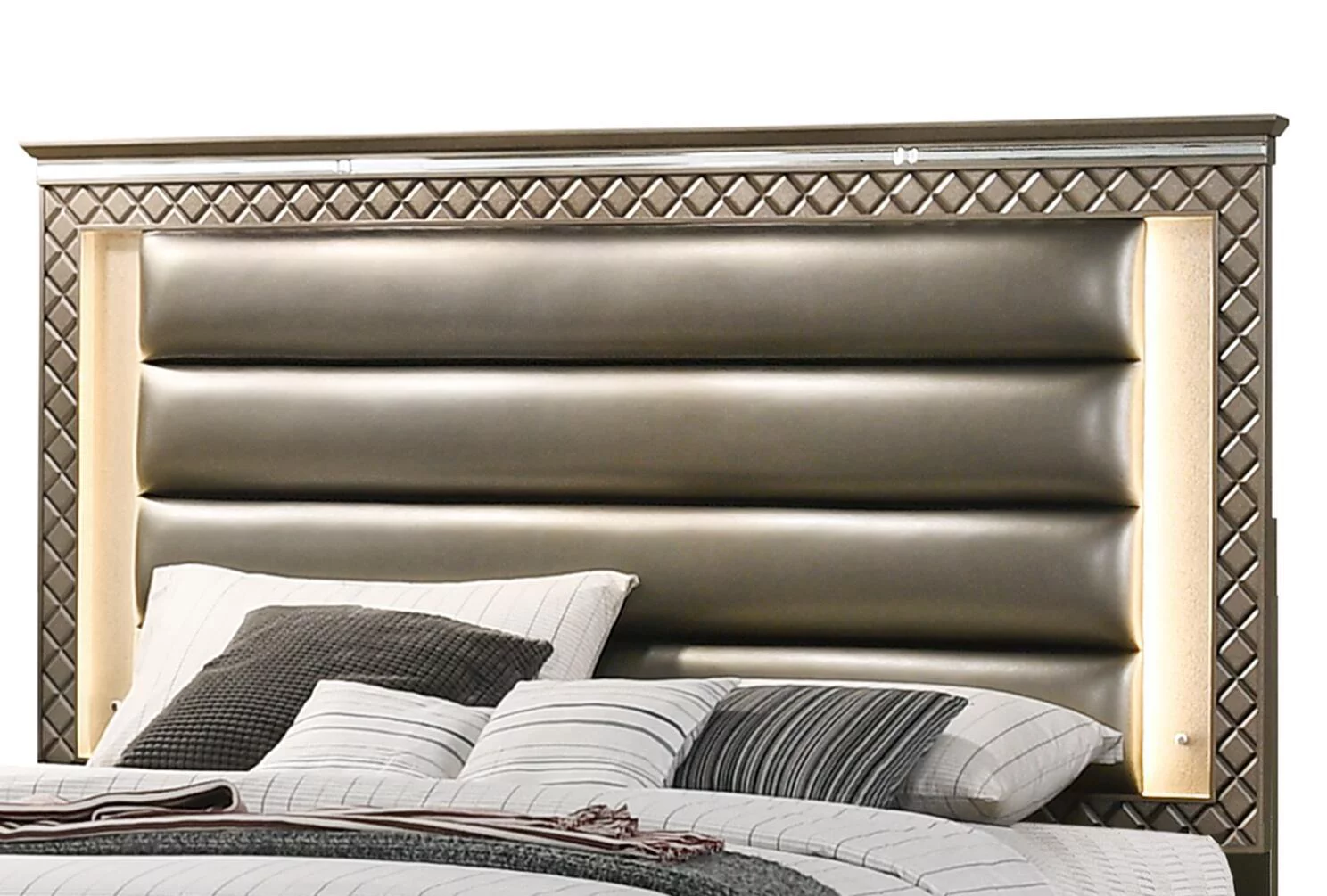 Birch King Bedroom Set 3Ps w/LED Contemporary Made in Italy ESF Platinum Legno