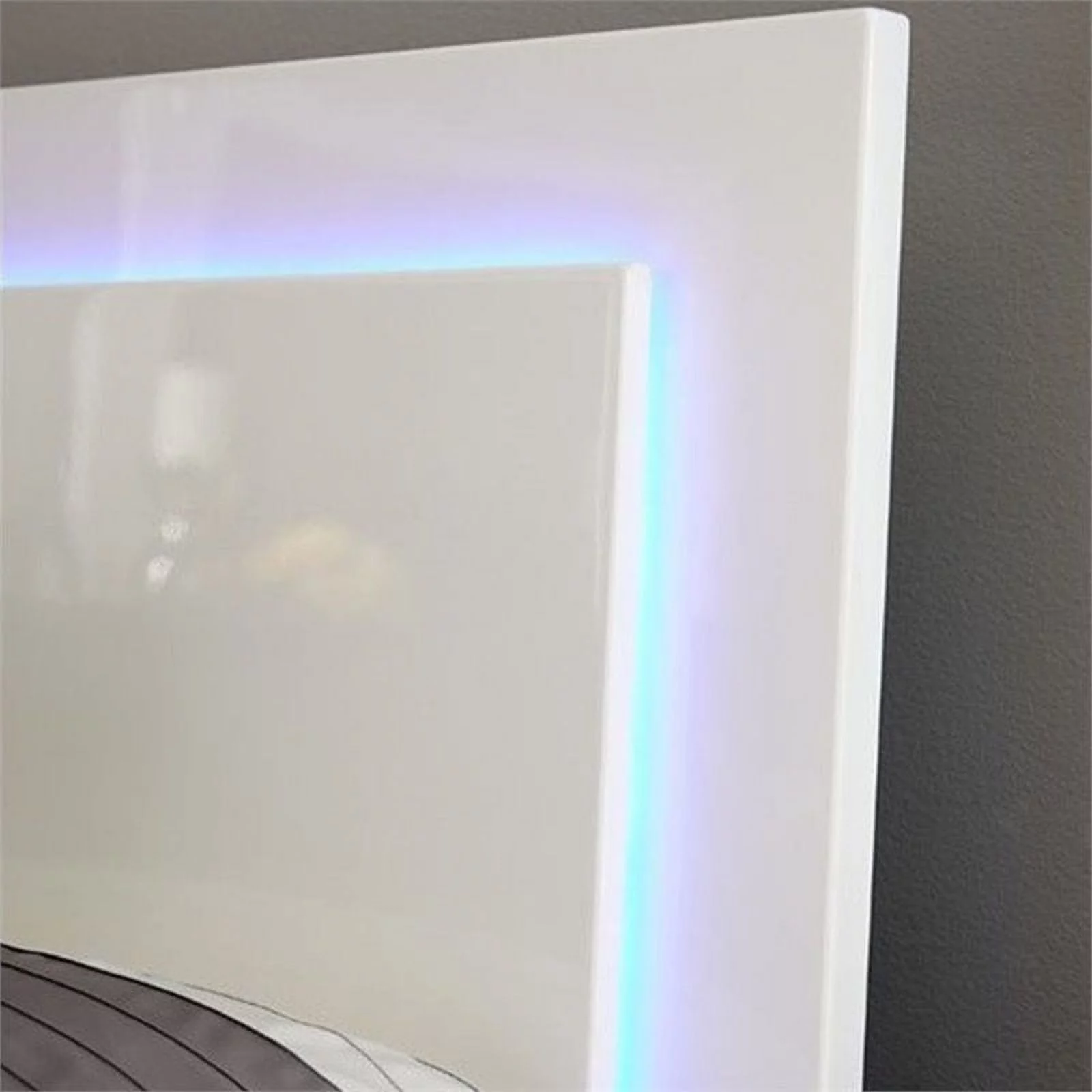 Camelot Contemporary Queen Bed with Polished Stainless Steel and Grey Fabric