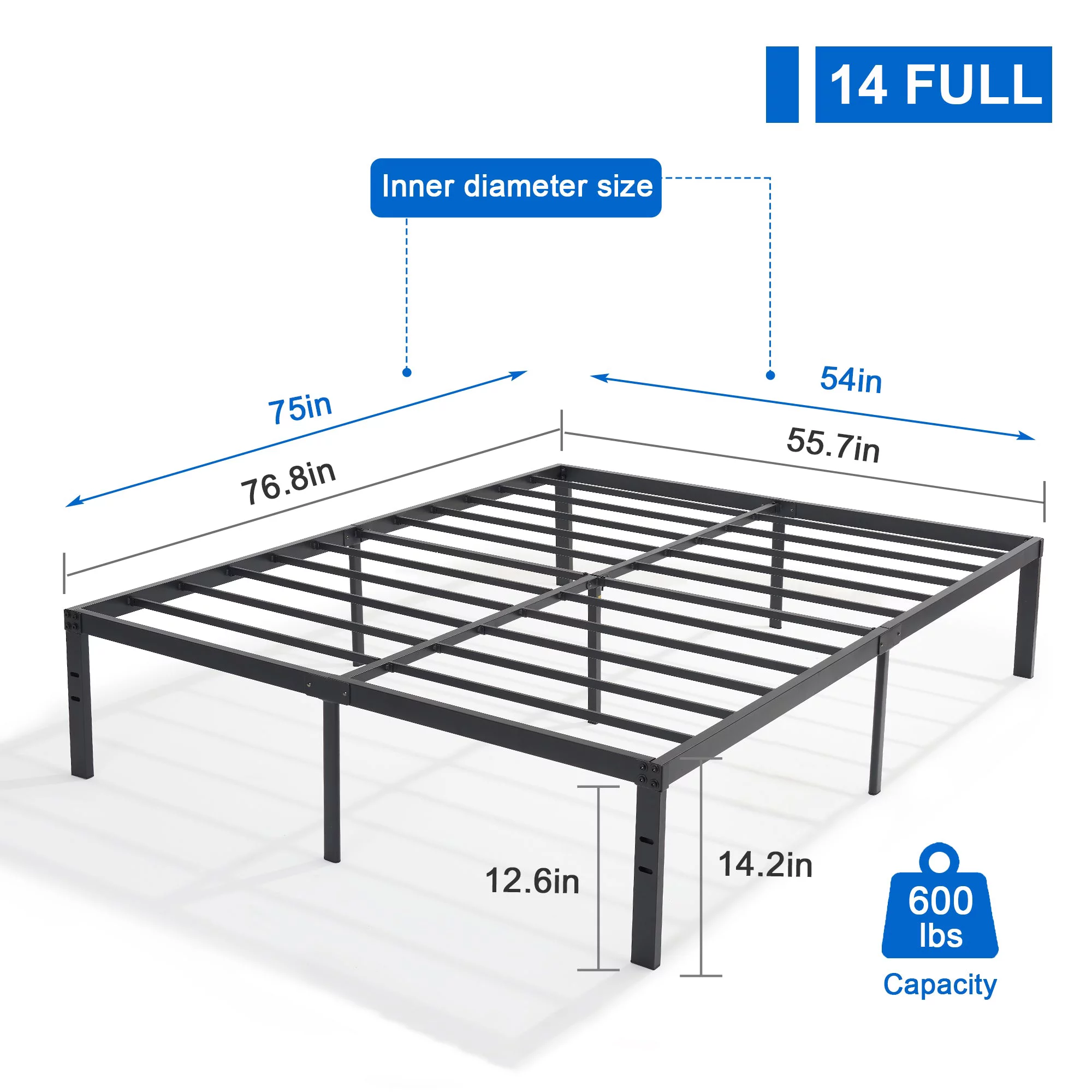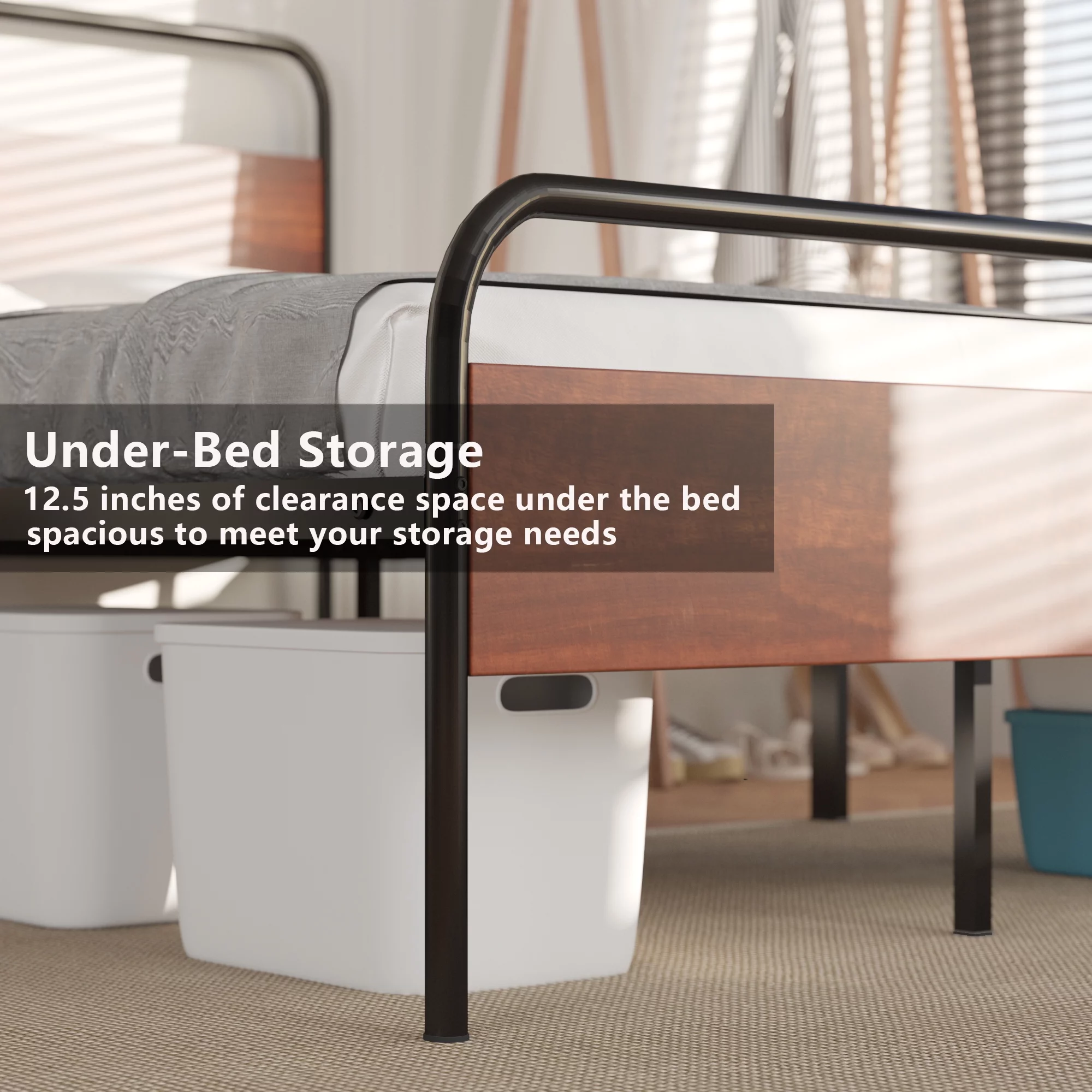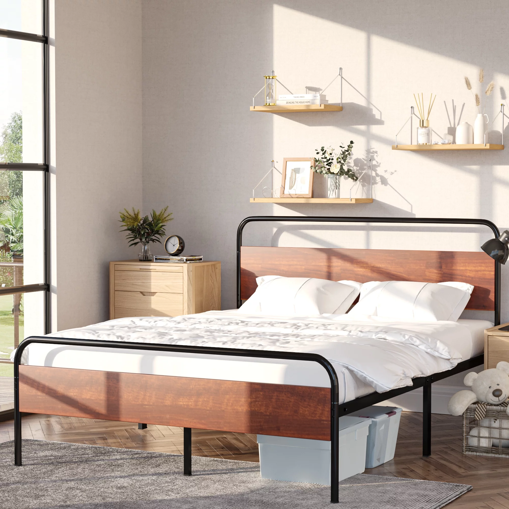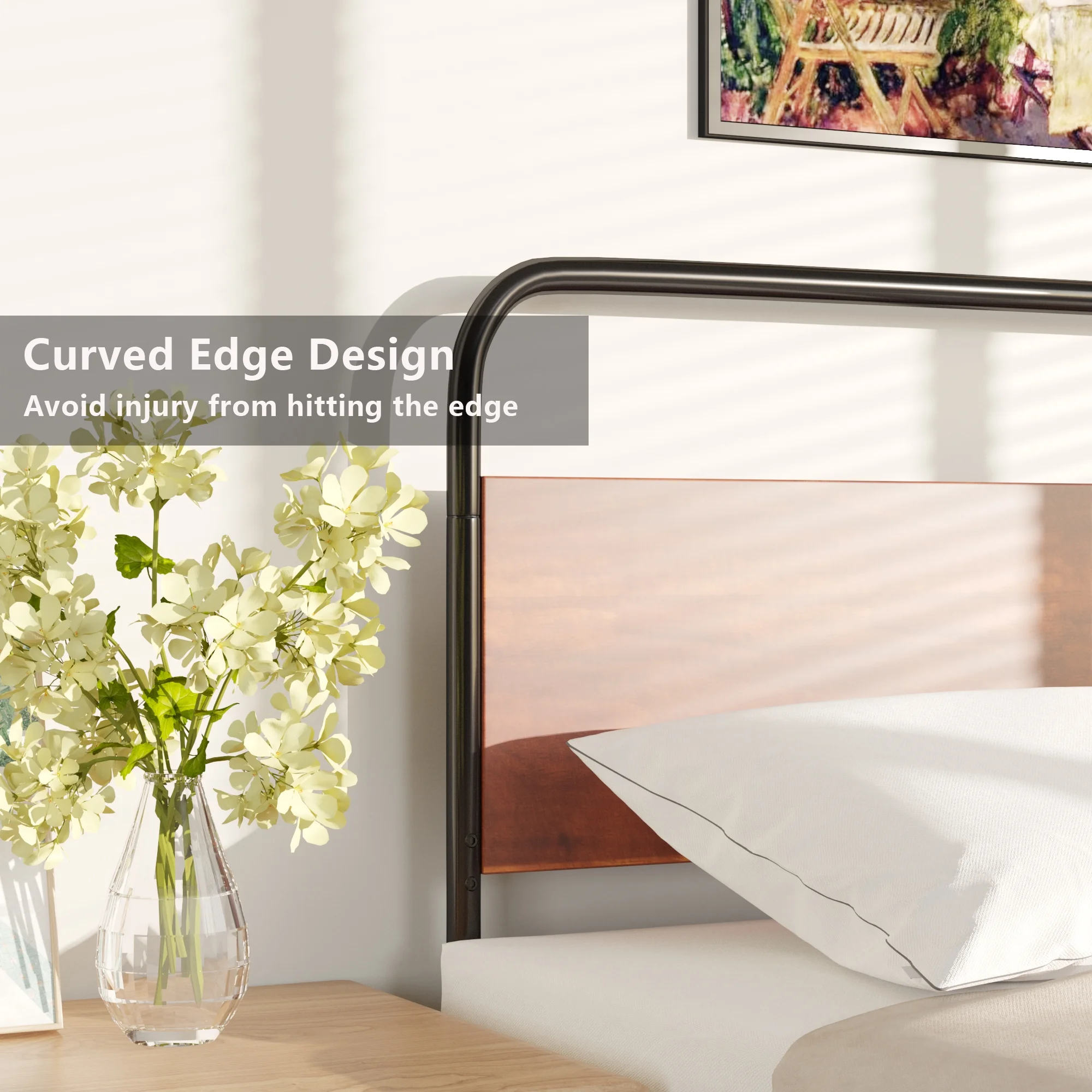 Homall 14 inch Full Size Metal Platform Bed Frame with Wooden Headboard, Black/Red