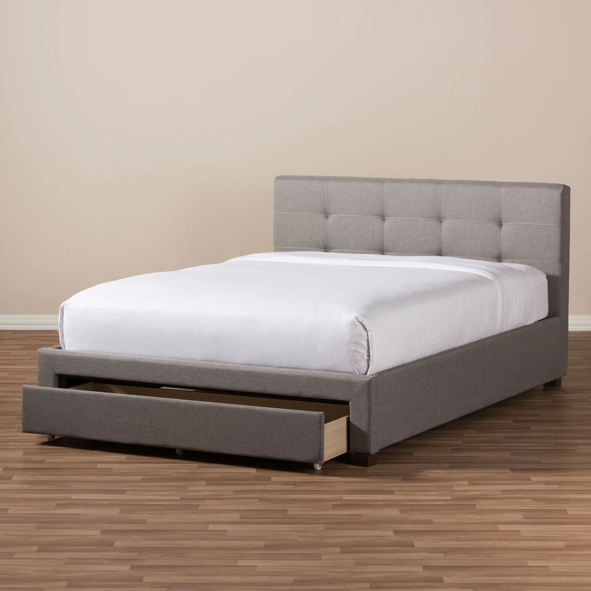 Baxton Studio Contemporary Tufted Upholstered Storage Platform Bed by Grey Queen