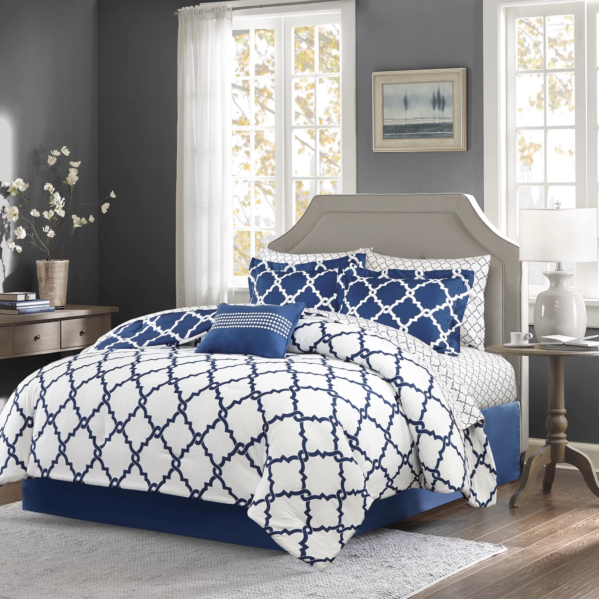 Home Essence Navy 7 Piece Bed in a Bag Comforter Set with Sheets, Twin-XL