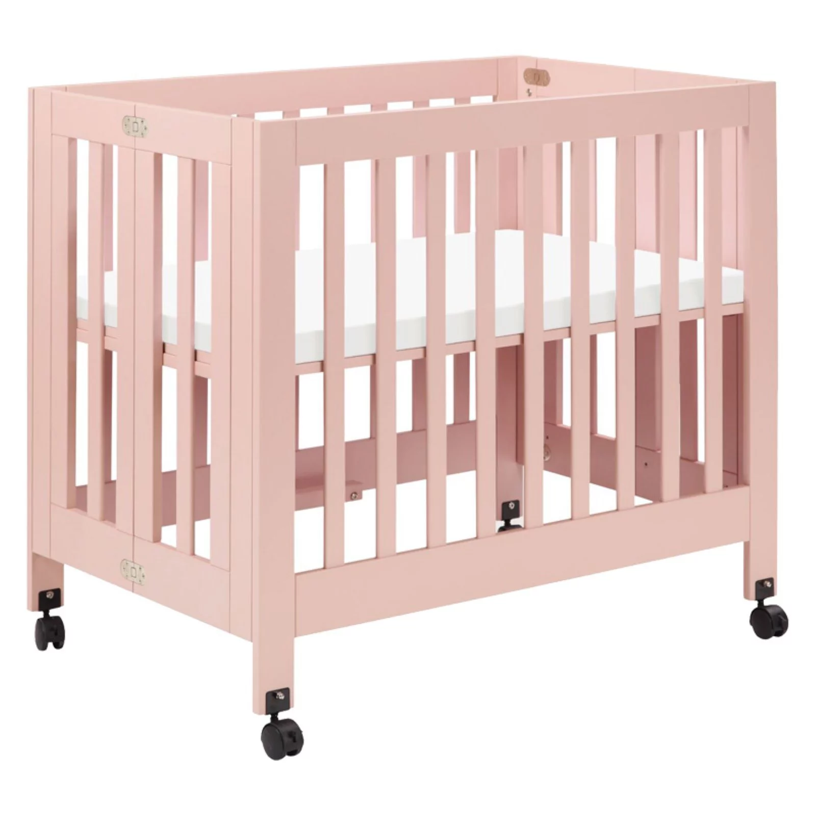 Suite Bebe Palmer Contemporary Wood Mini Crib with Mattress Pad in Baby Blue