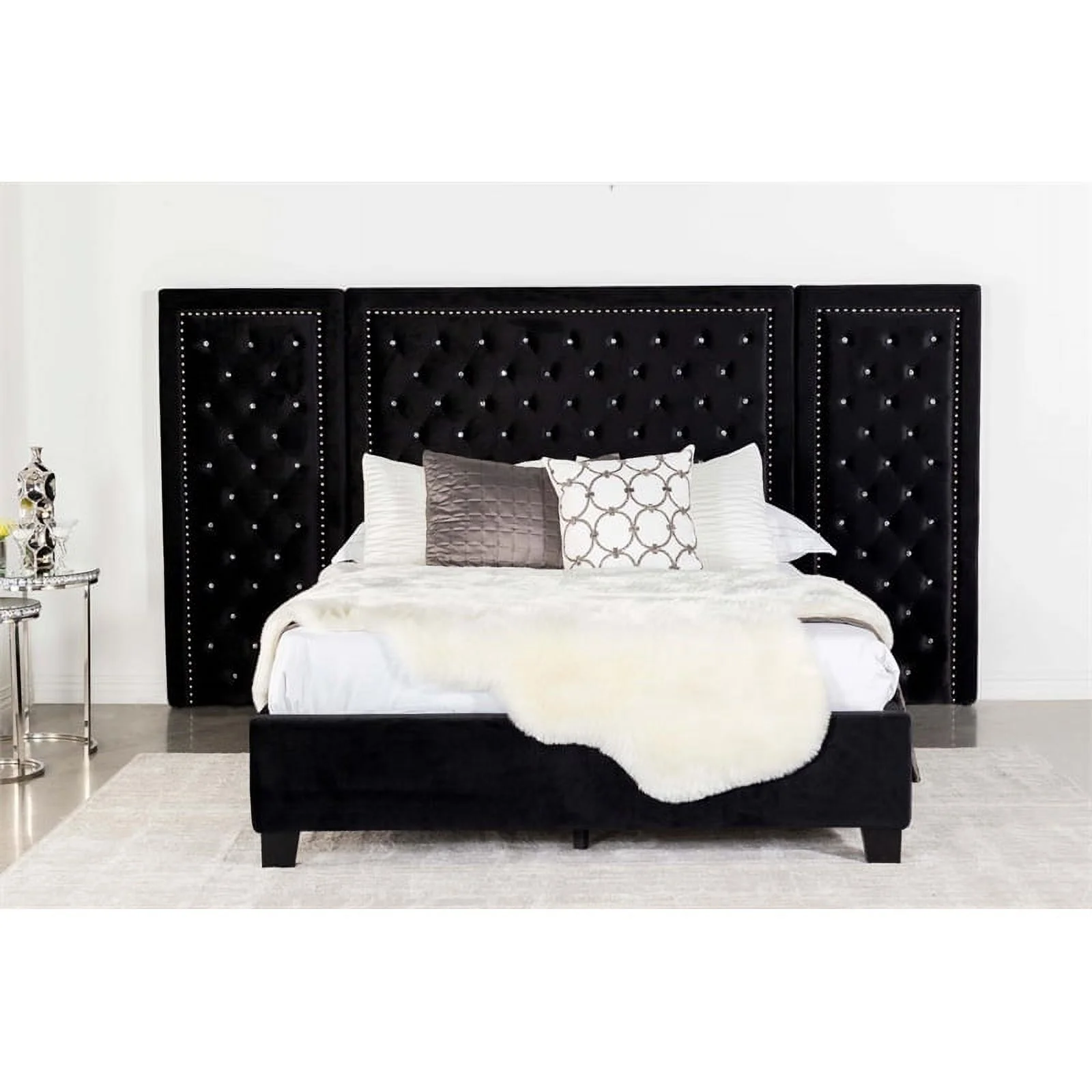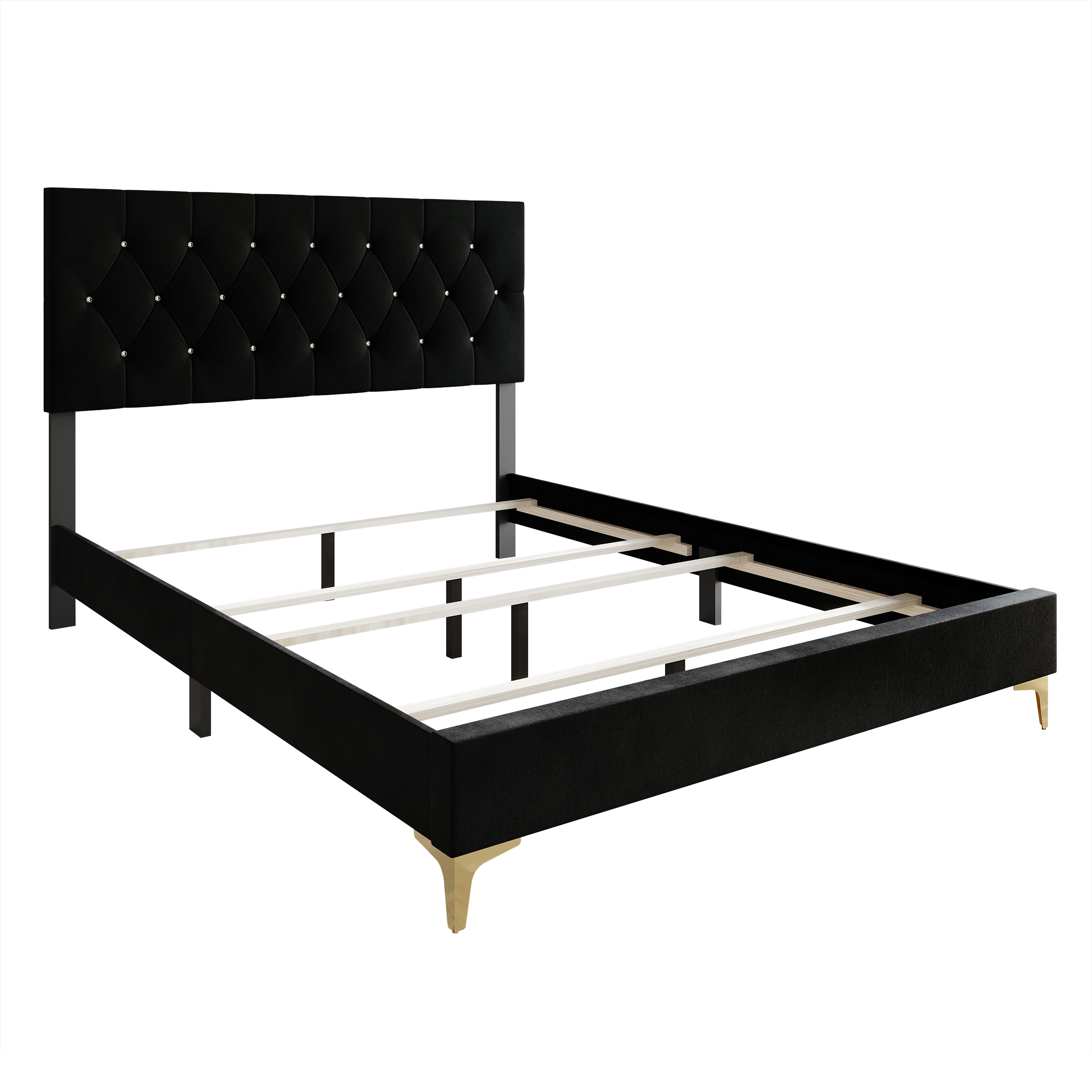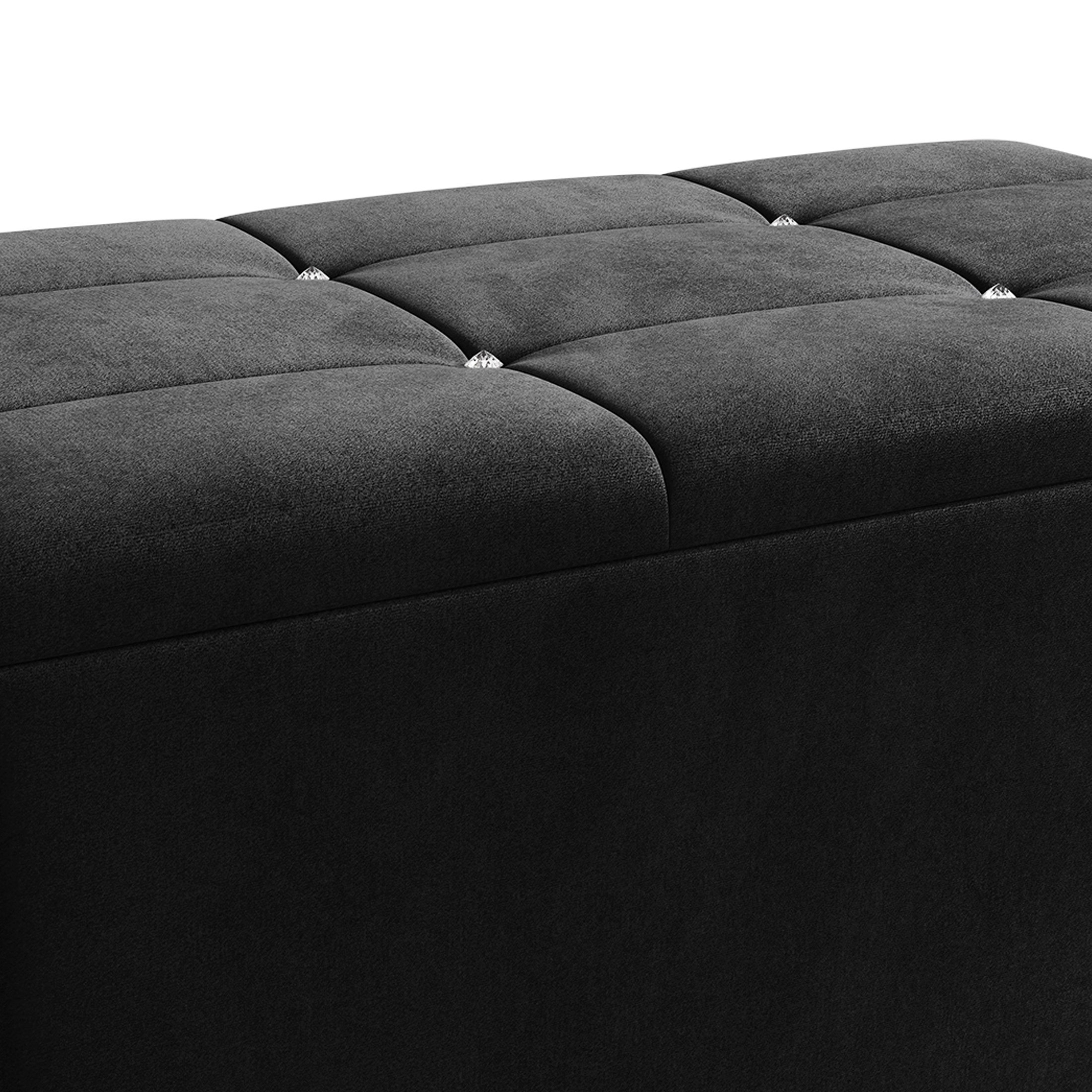 Castle Place Contemporary Crystal Queen Size Velvet Upholstered Bed with Storage Bench, Black