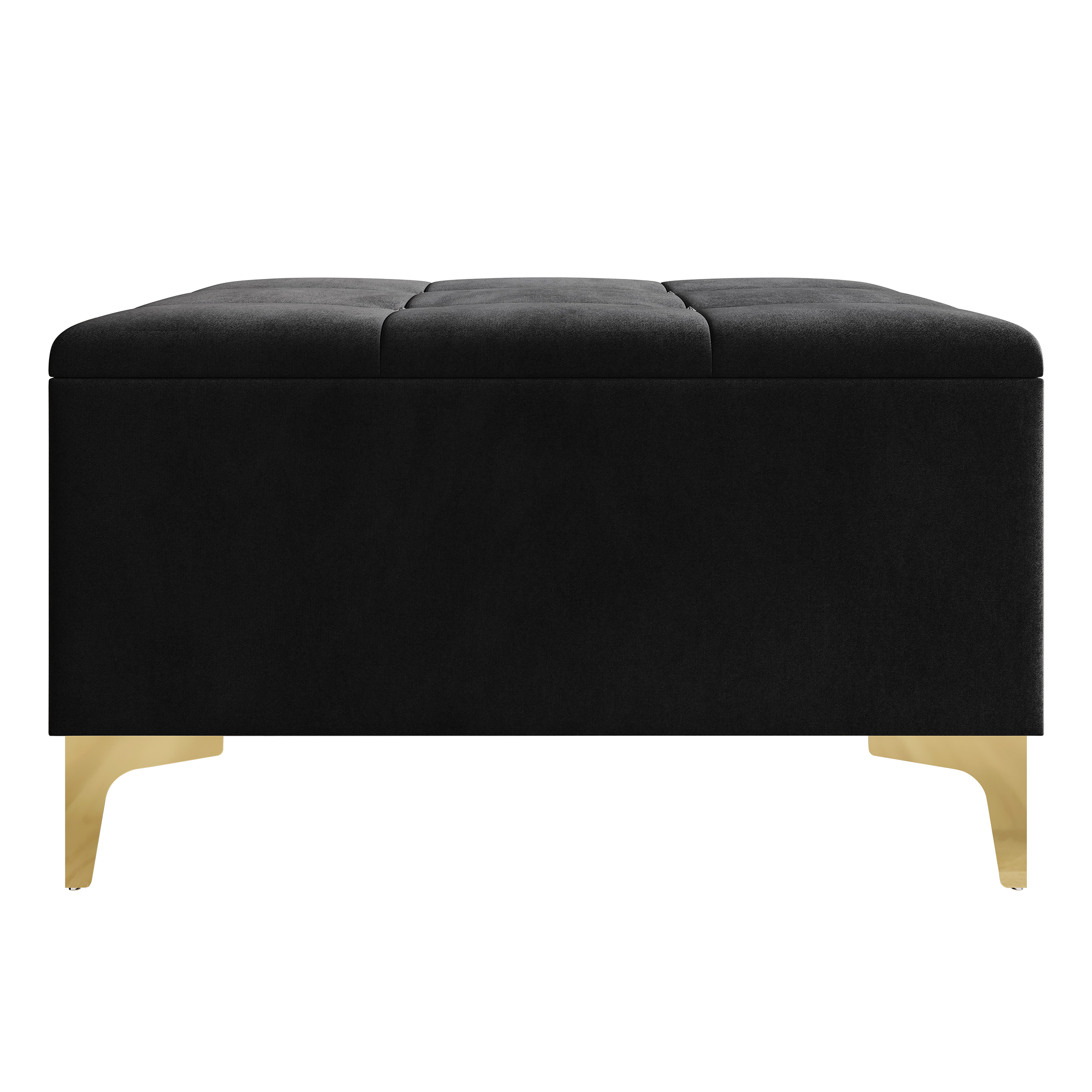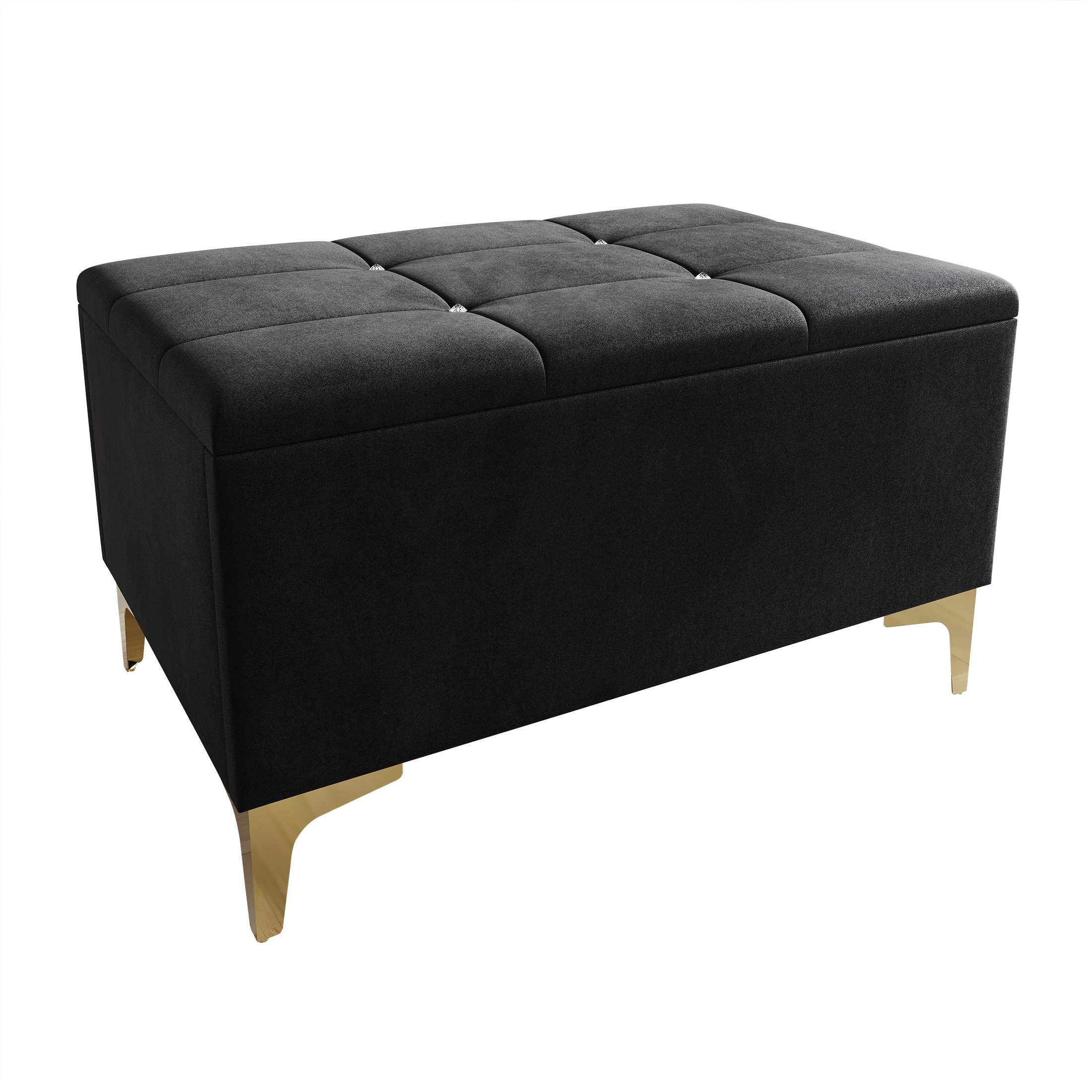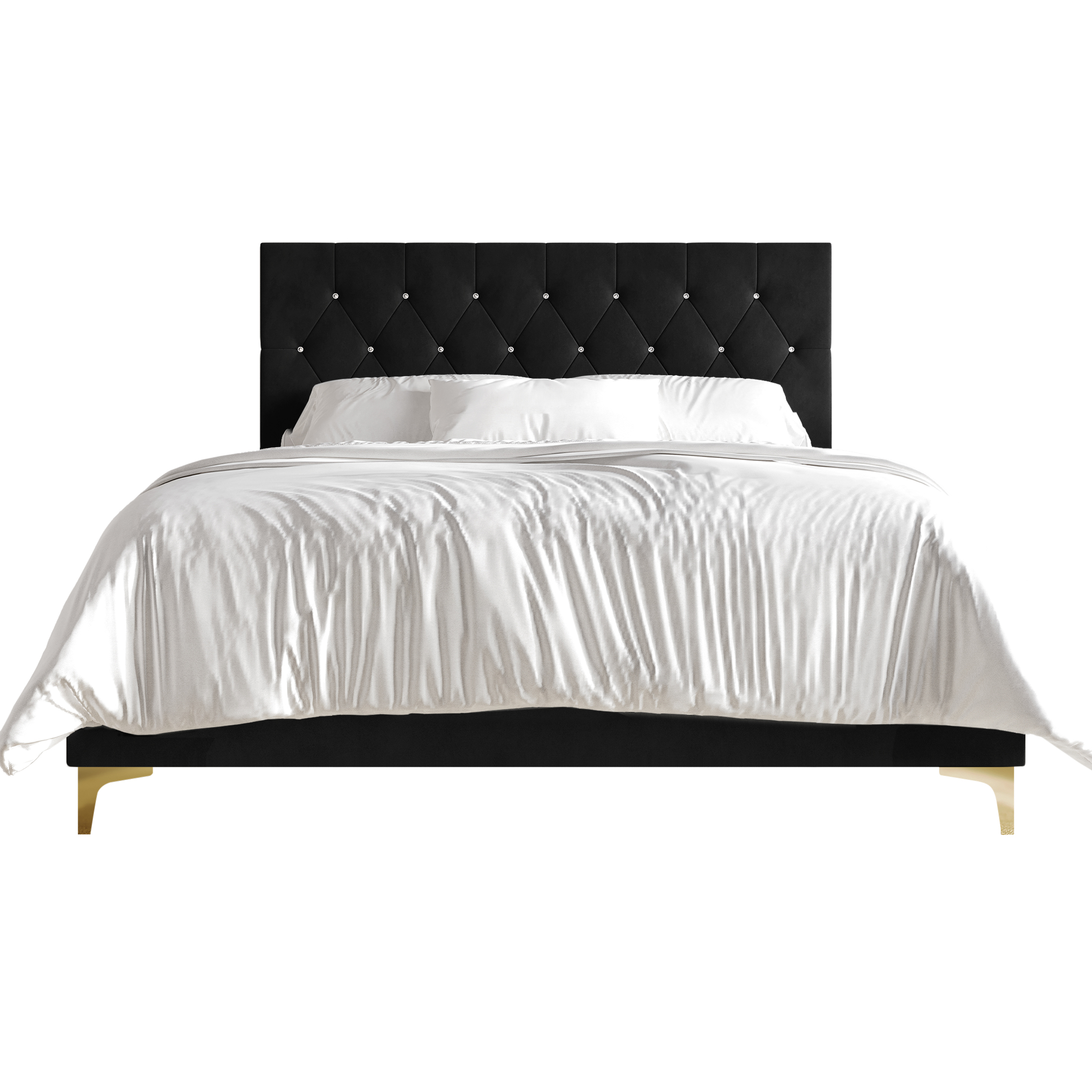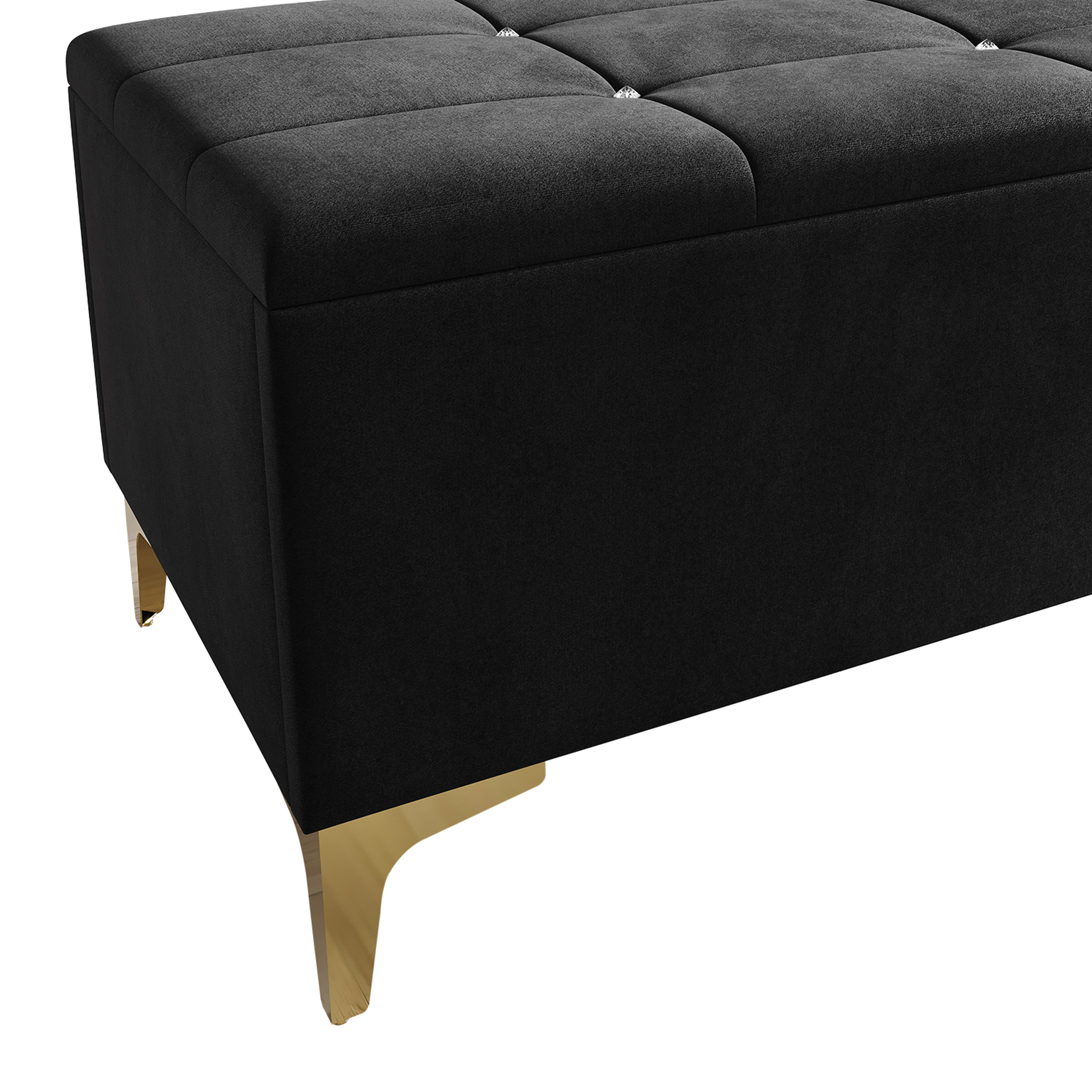 Castle Place Contemporary Crystal Queen Size Velvet Upholstered Bed with Storage Bench, Black