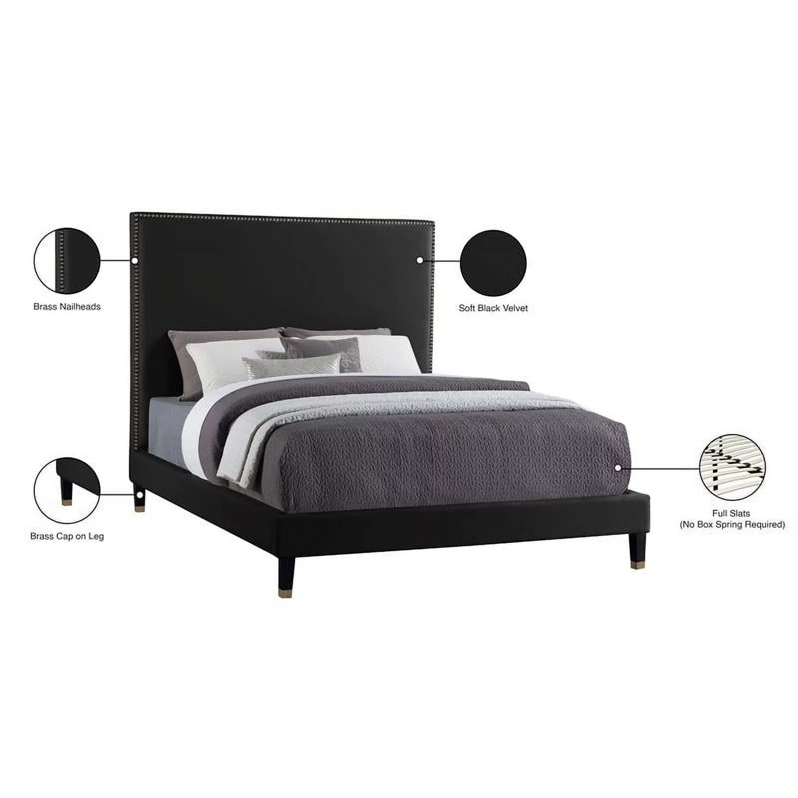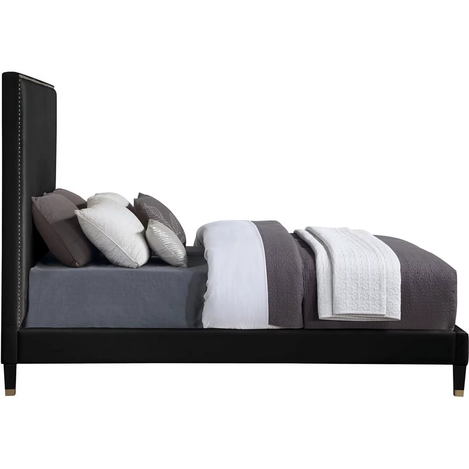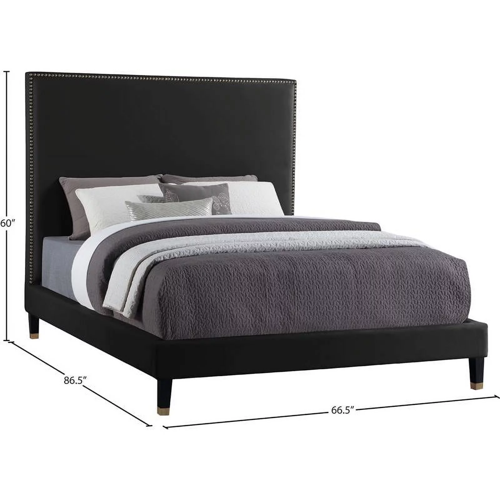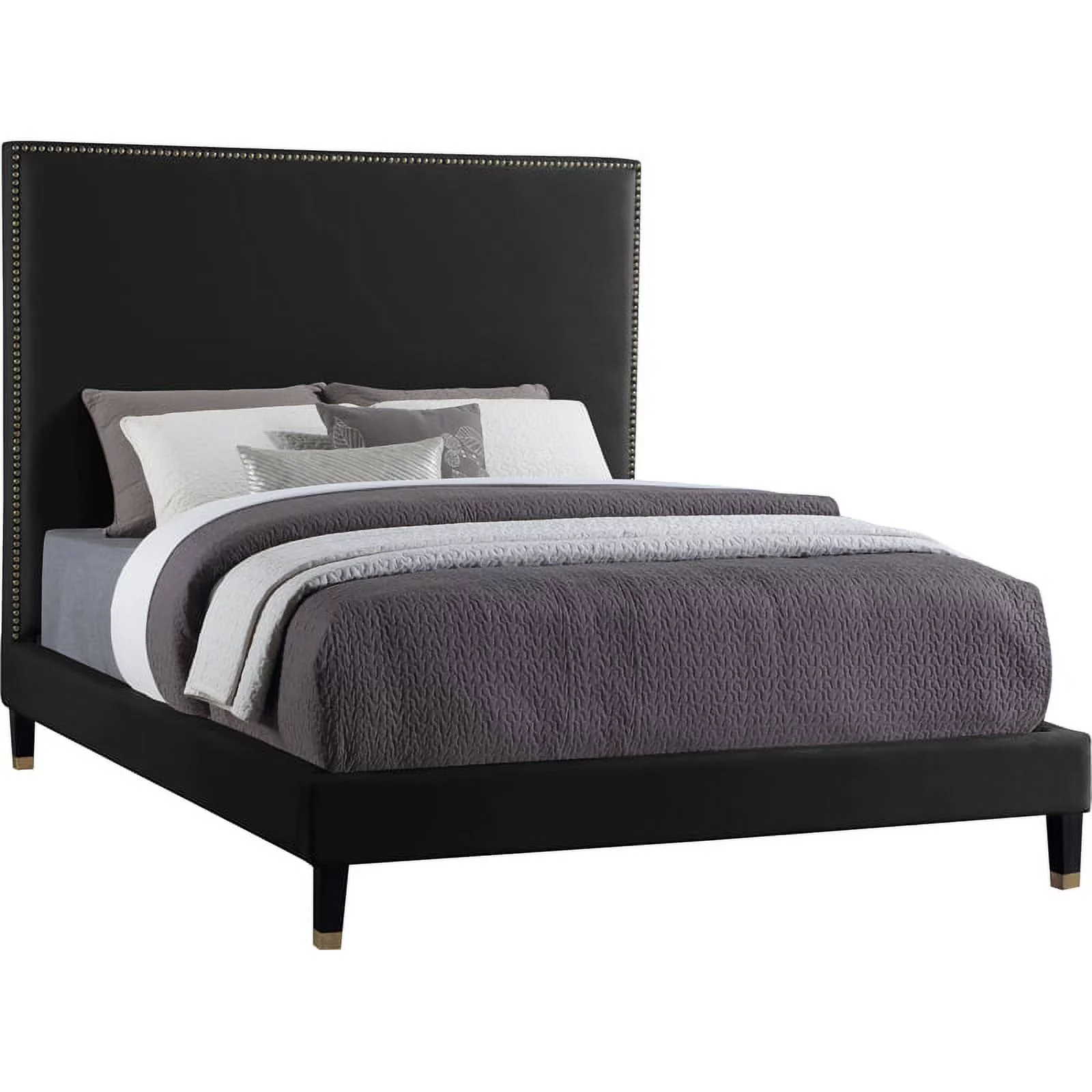 Posh Living Posh Living Poppy Velvet Channel Tufted Queen Bed with Silver Nailhead Trim, Black