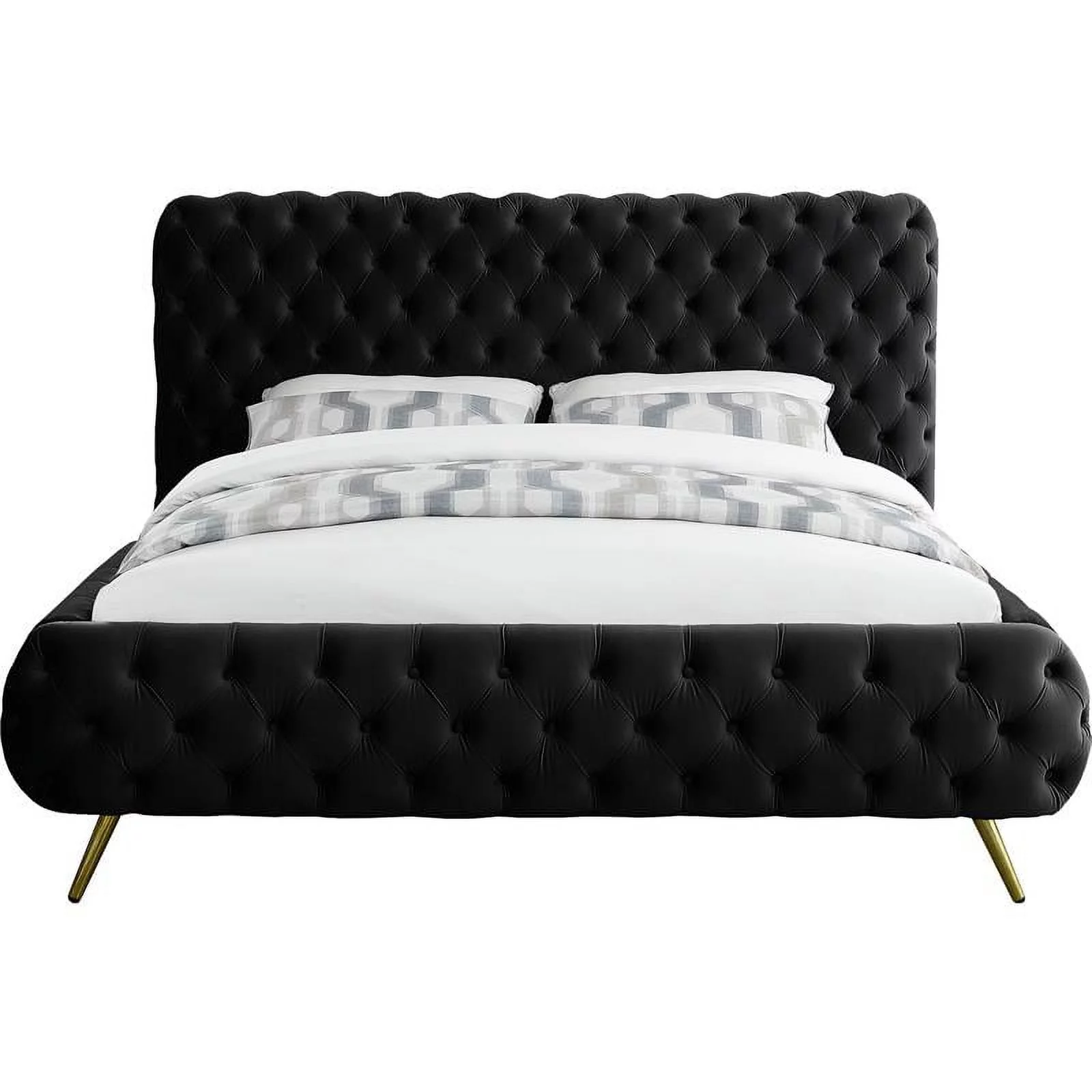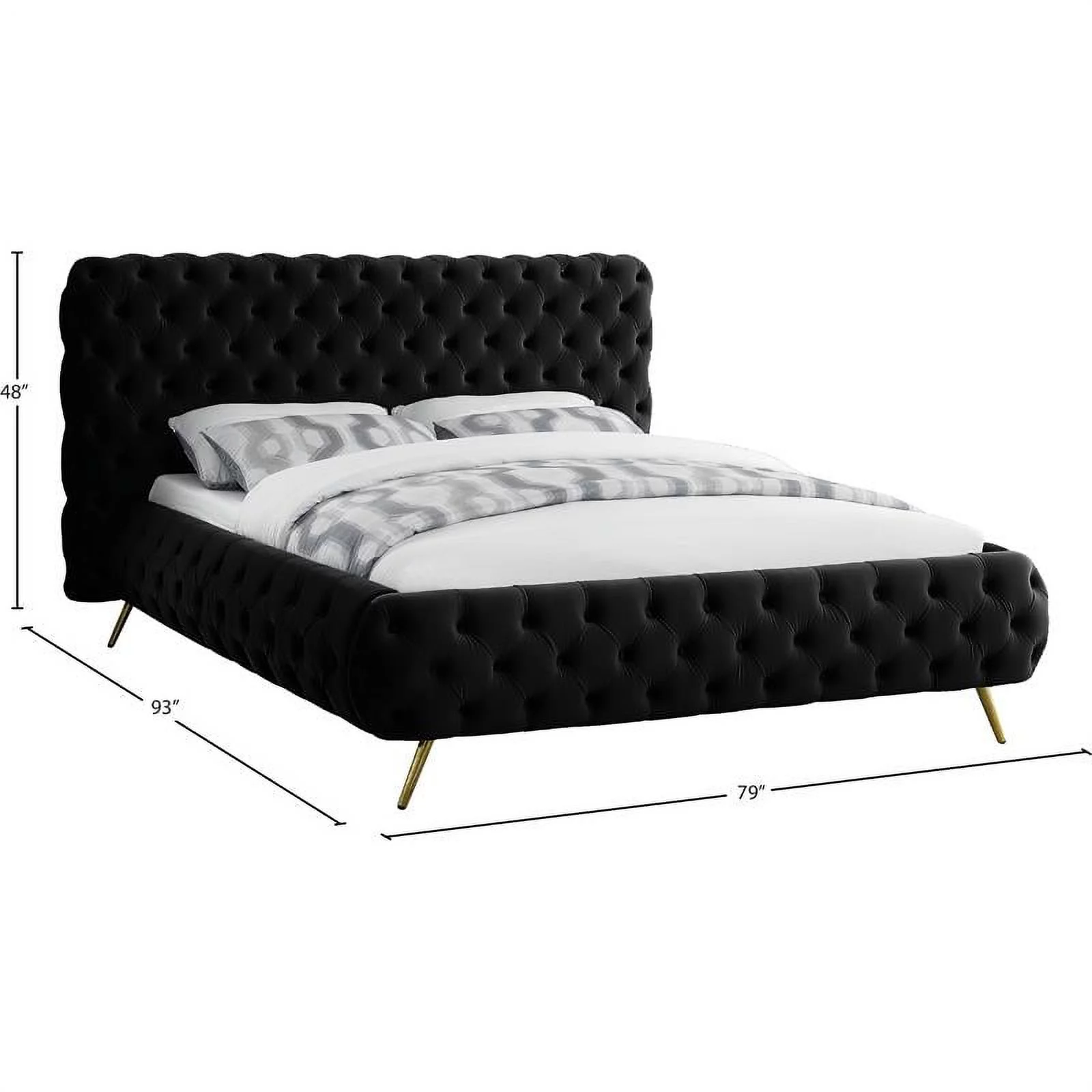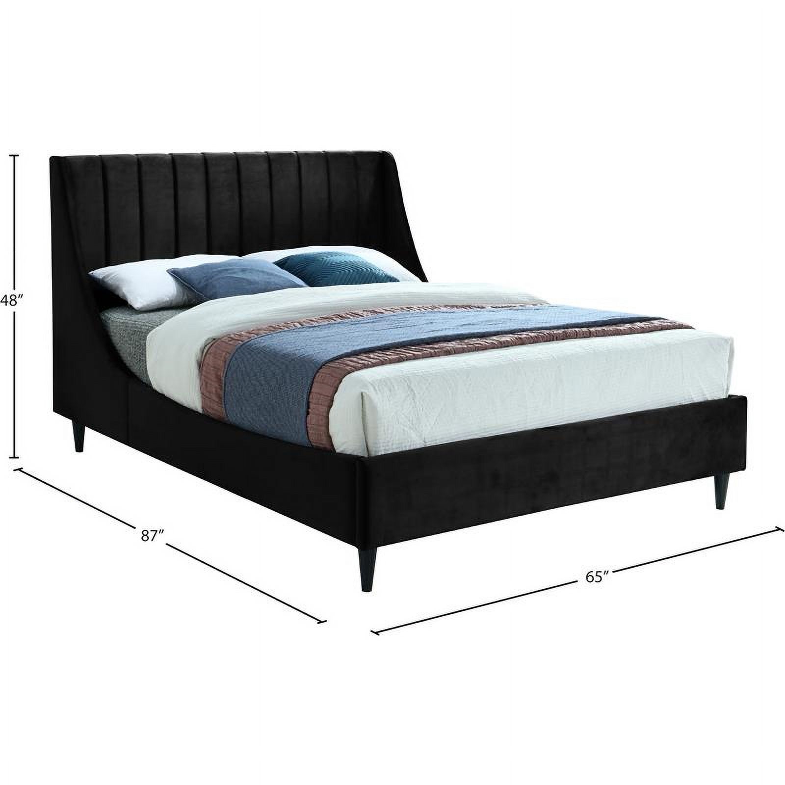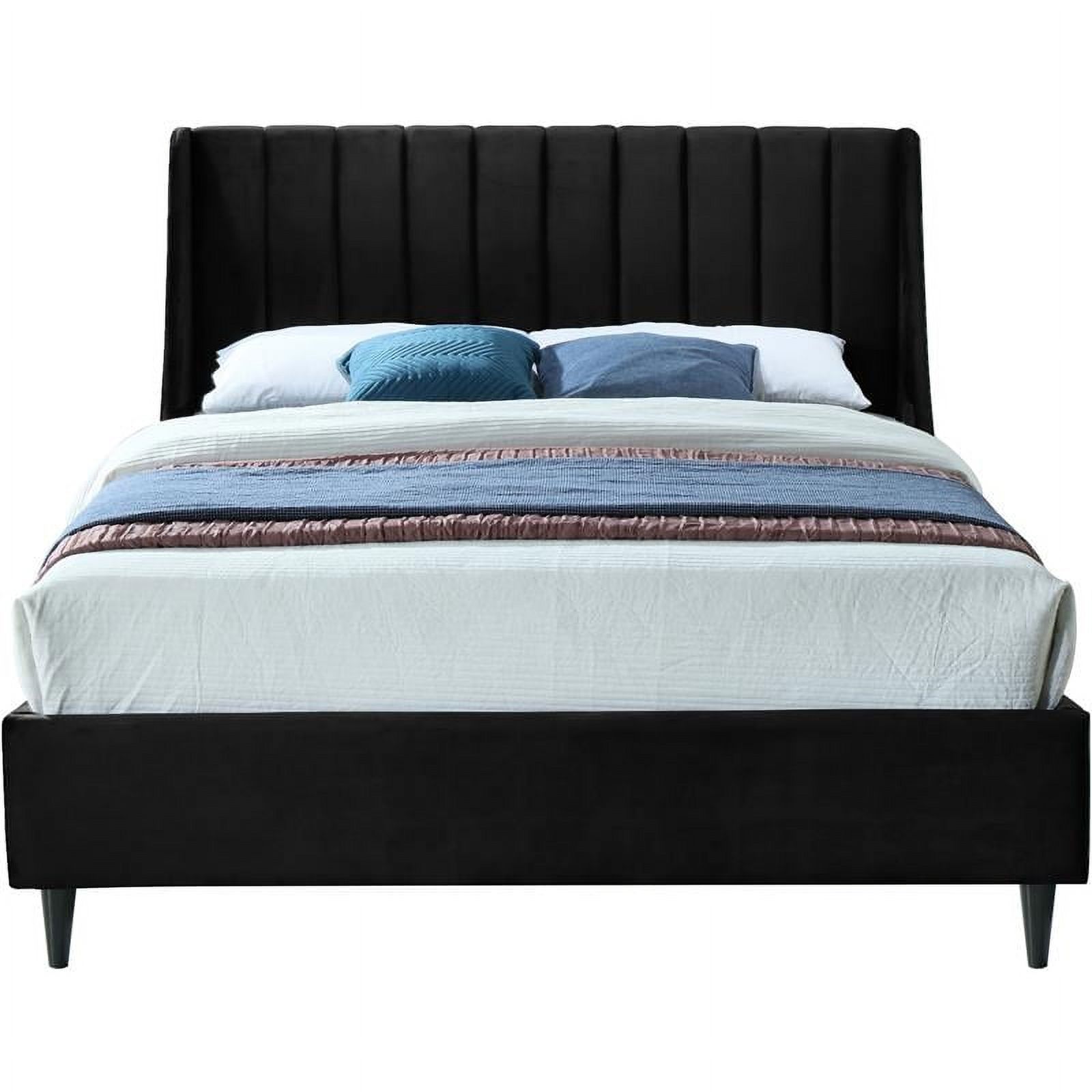 Posh Living Posh Living Poppy Velvet Channel Tufted Queen Bed with Silver Nailhead Trim, Black