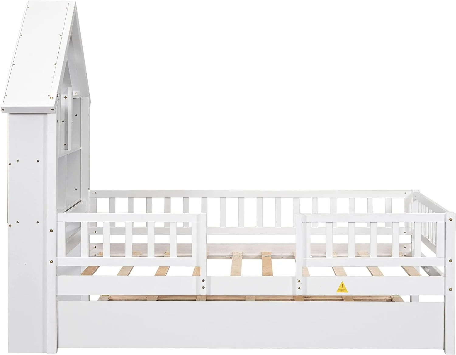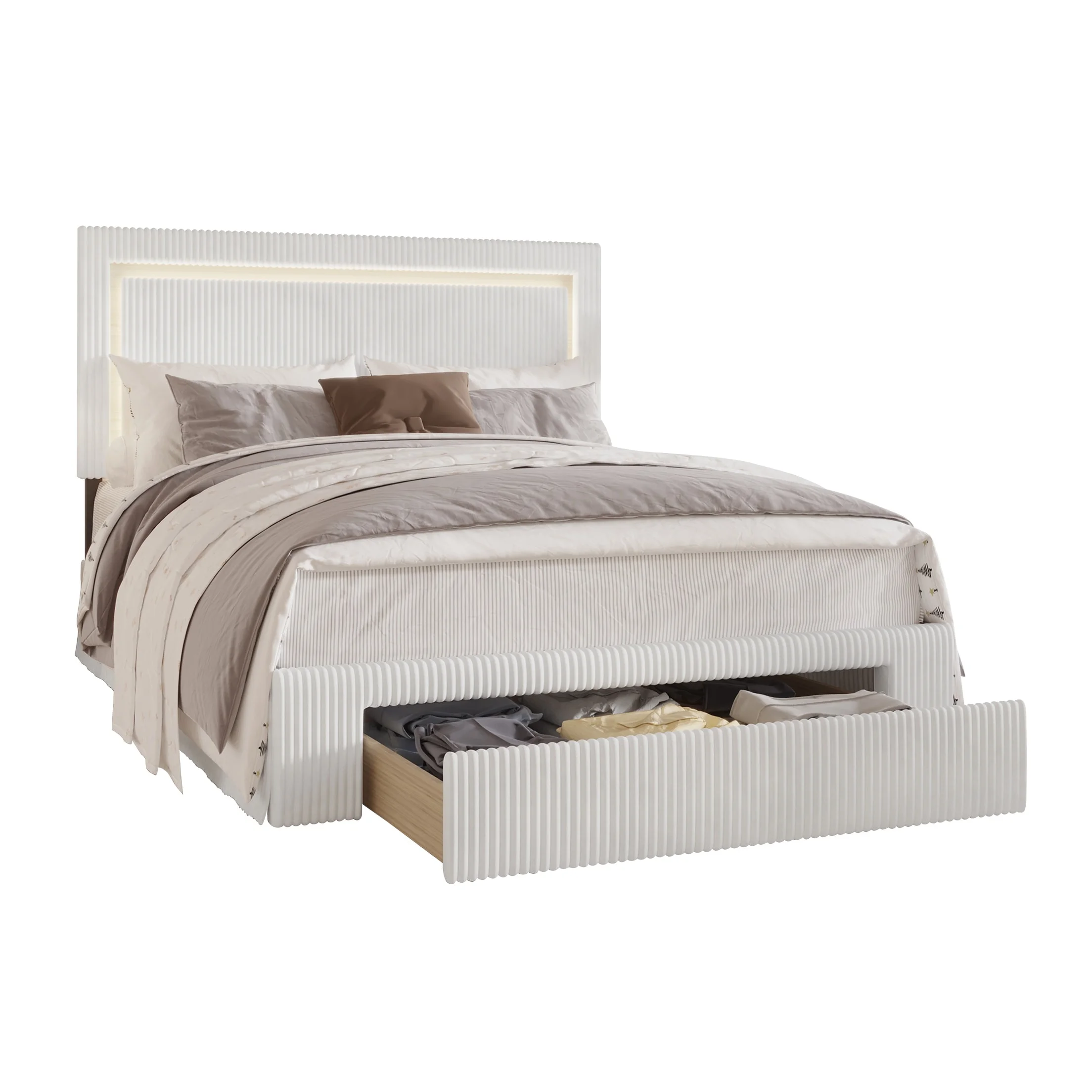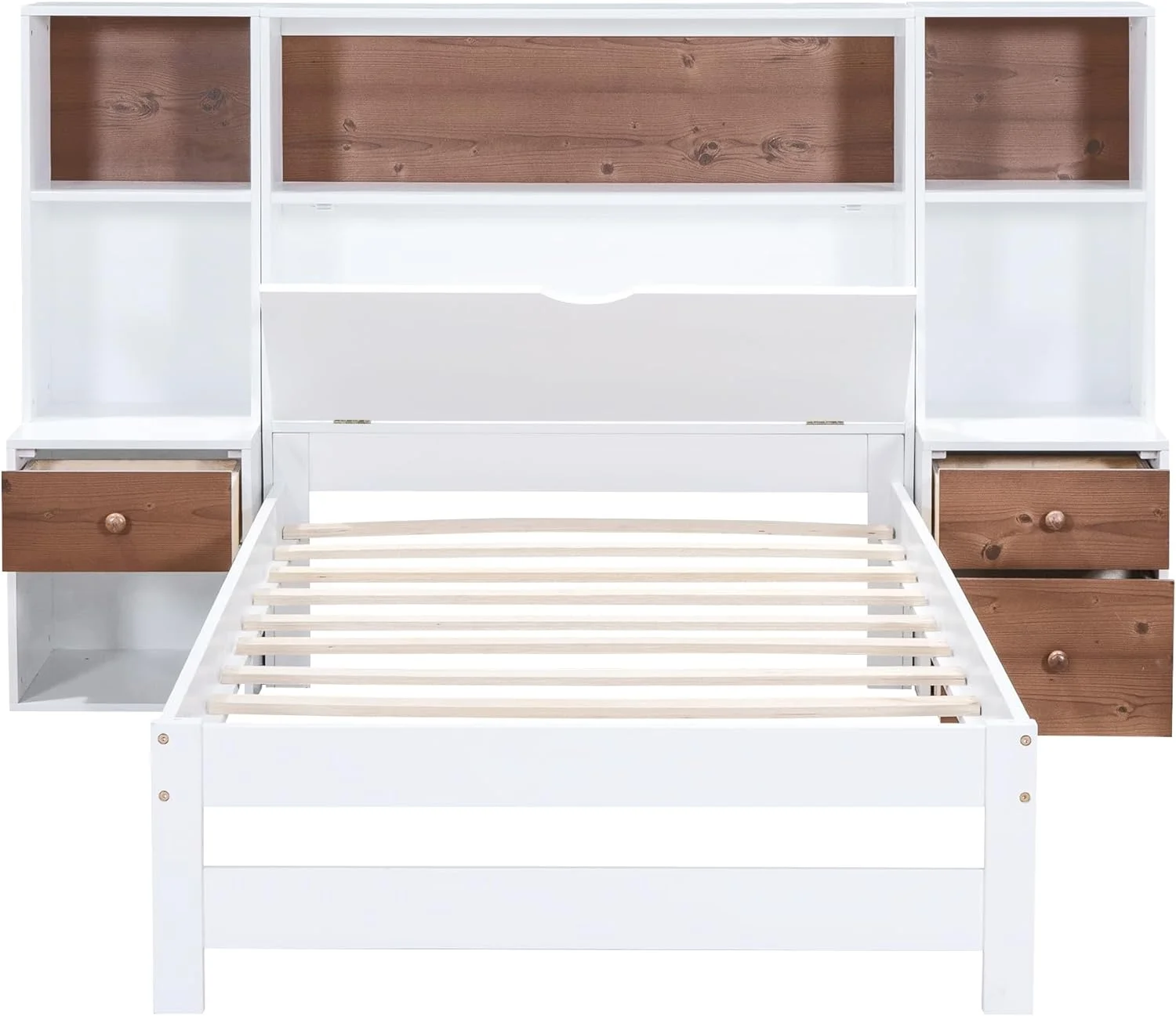 4pc Eastern King Size Platform Bed Headboard Shelves Furniture Set White Finish Dresser Mirror Nightstand