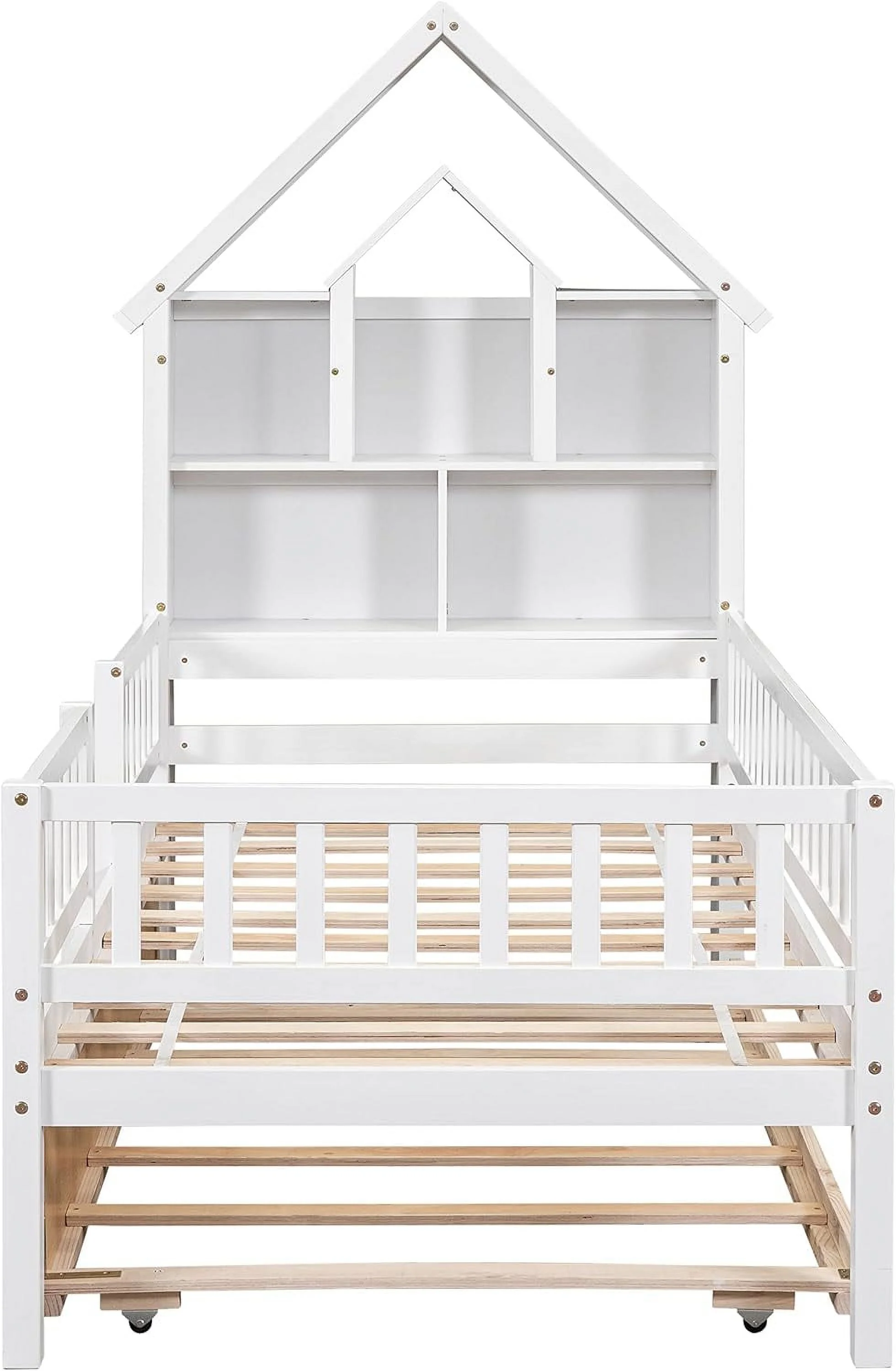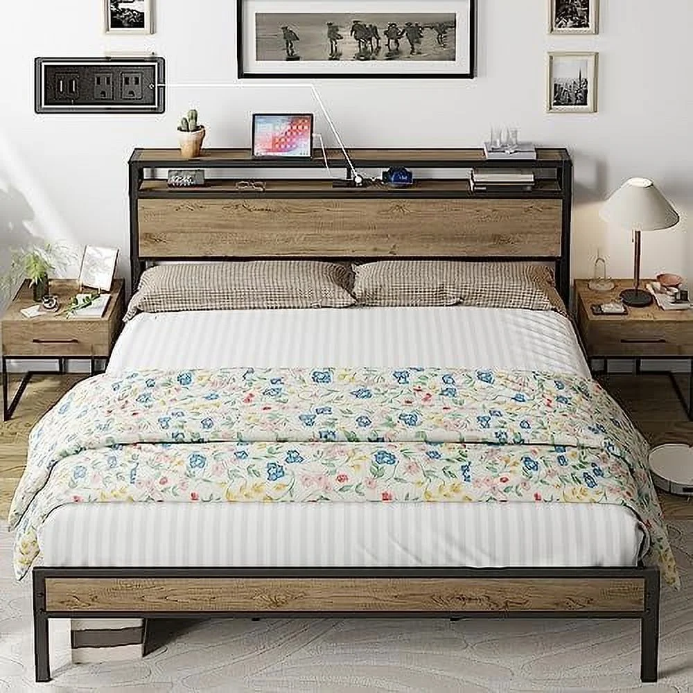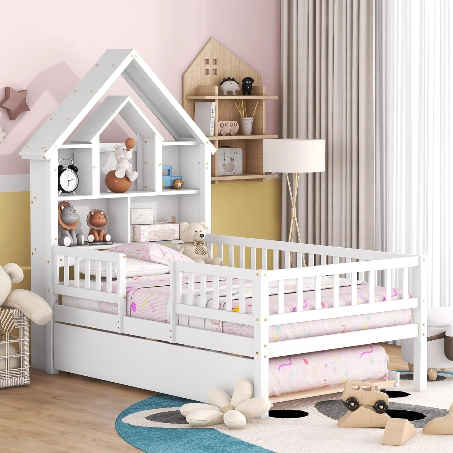 4pc Eastern King Size Platform Bed Headboard Shelves Furniture Set White Finish Dresser Mirror Nightstand