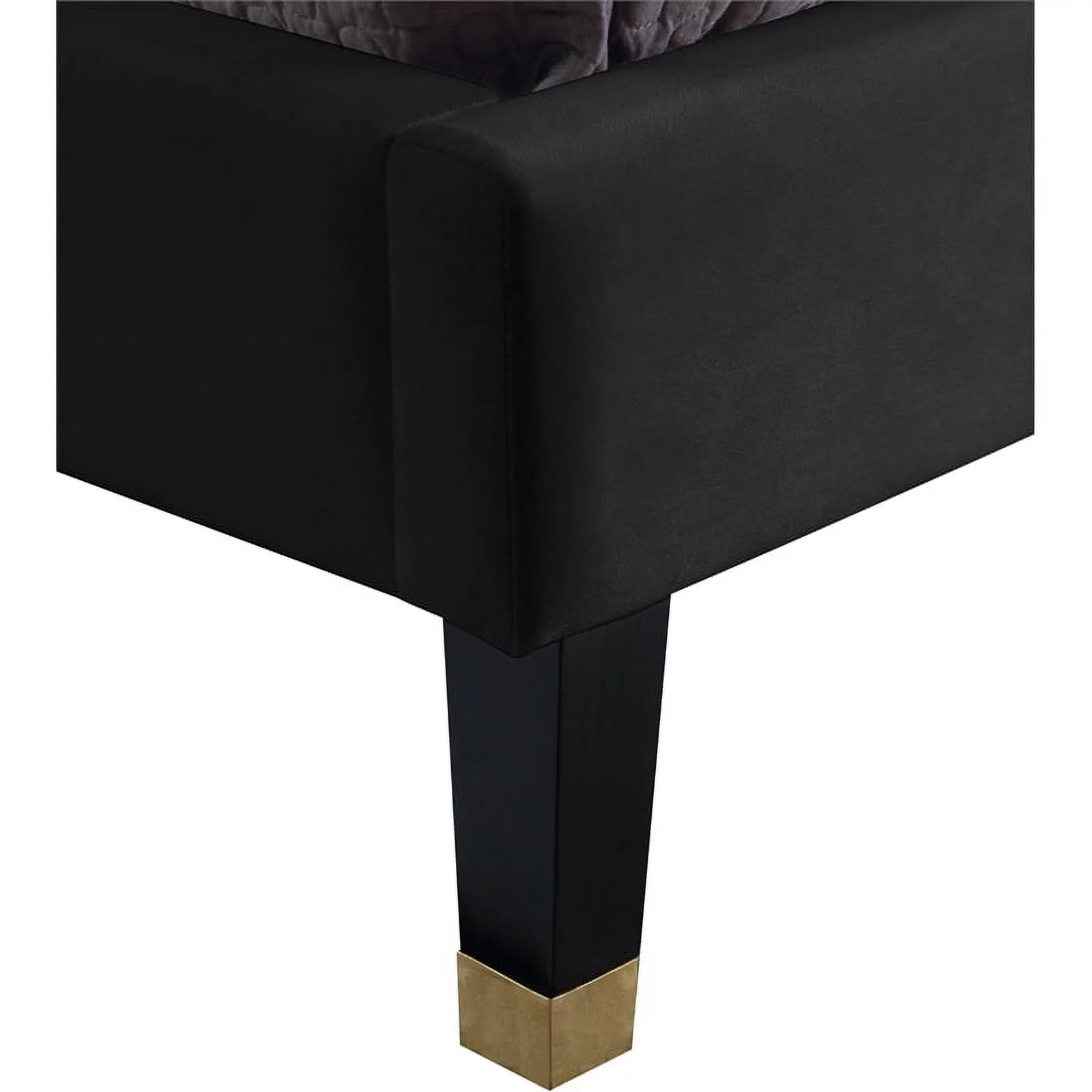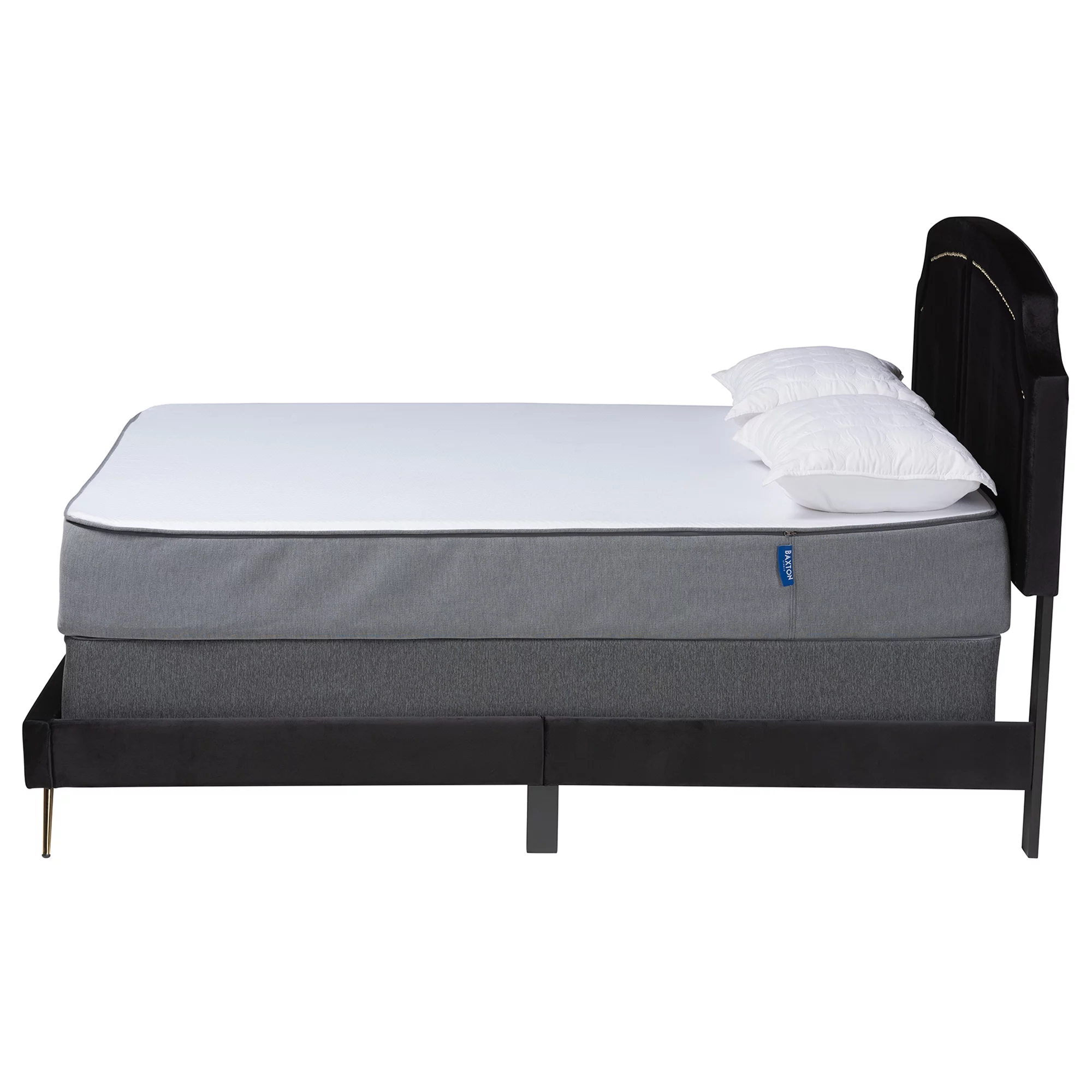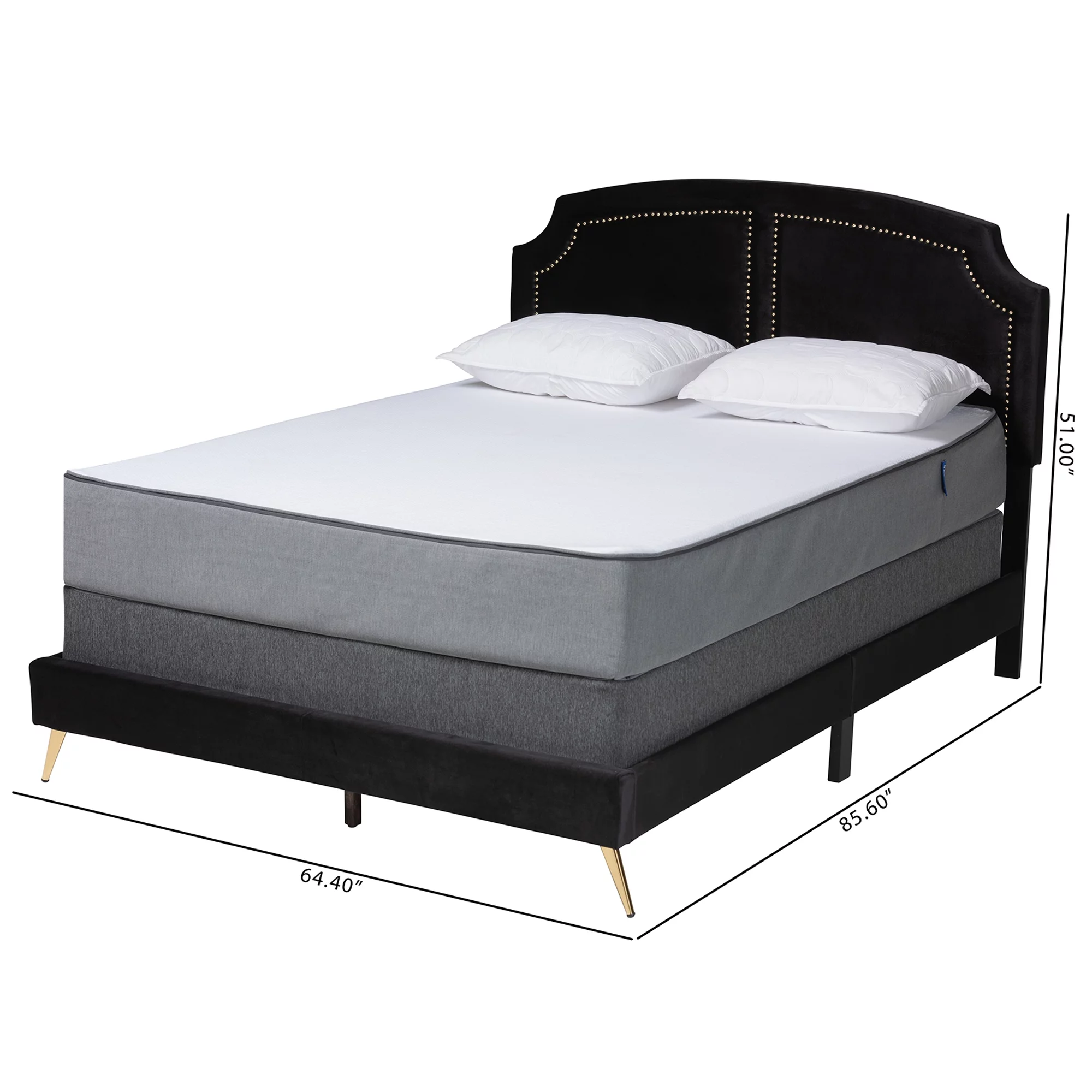 Baxton Studio Oxley Traditional Glam and Luxe Black Velvet and Gold Metal Queen Size Panel Bed