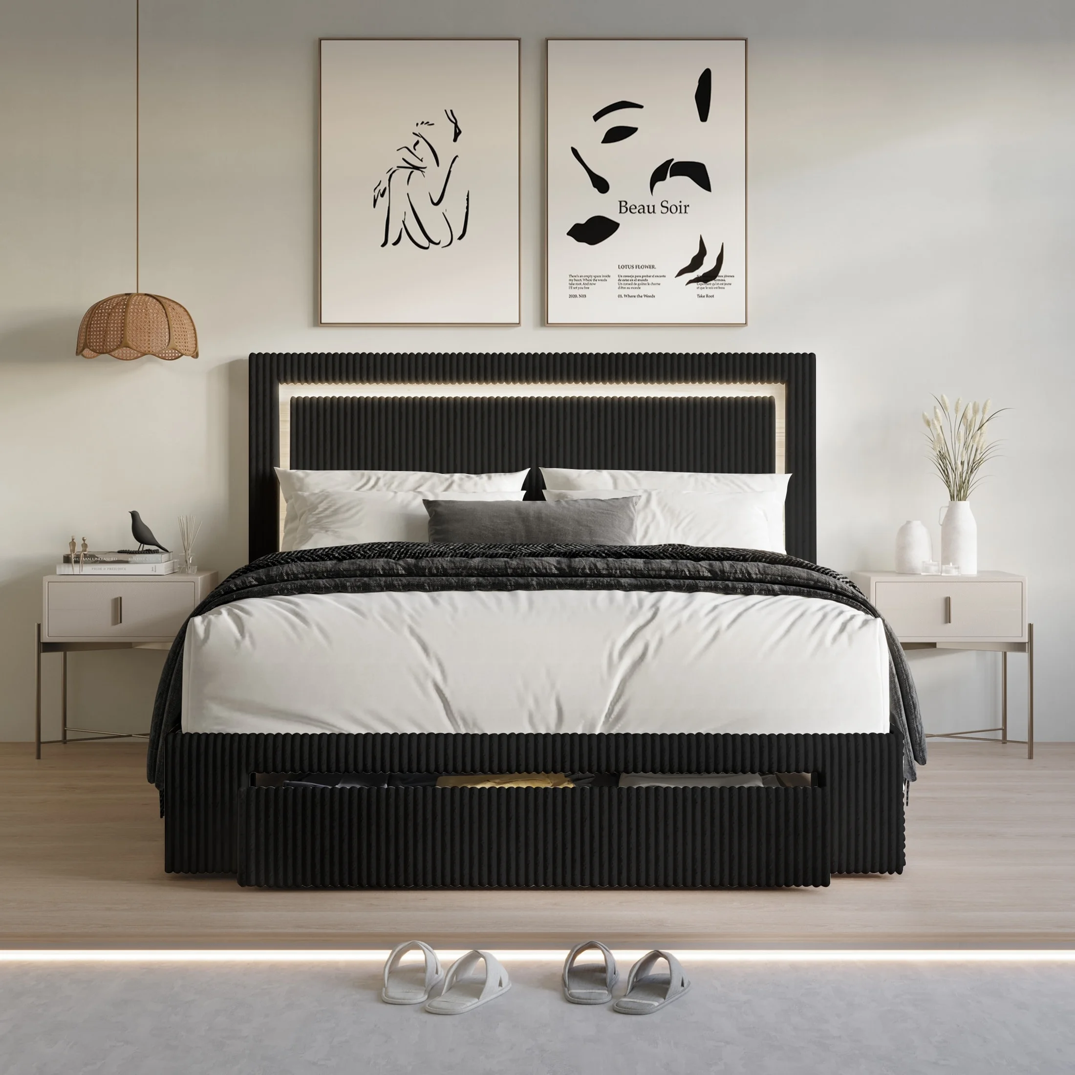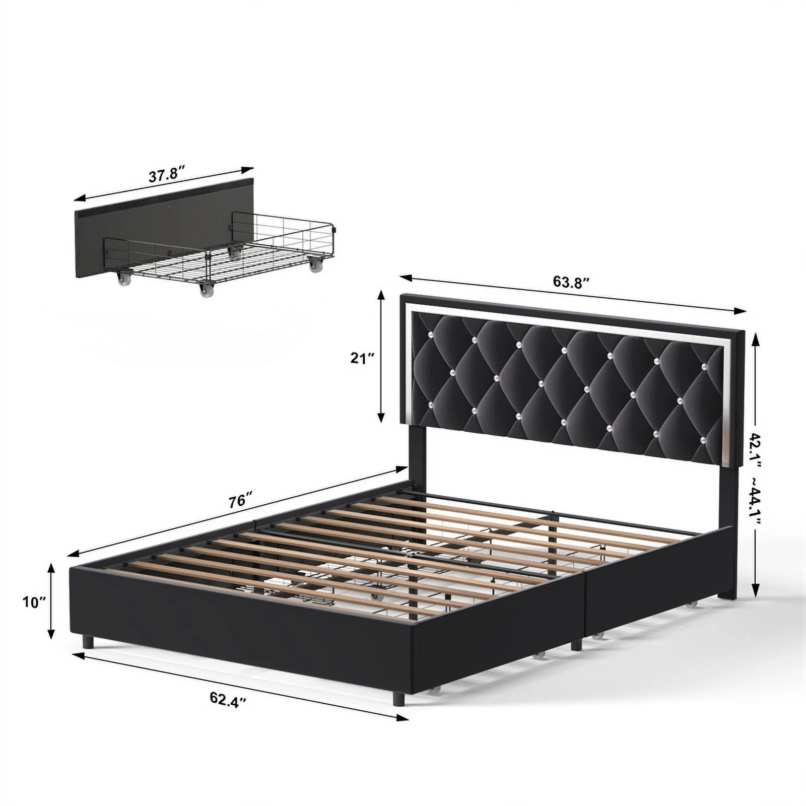 Better Home Products Monica 4-Drawer Velvet Queen Size Platform Bed in Black