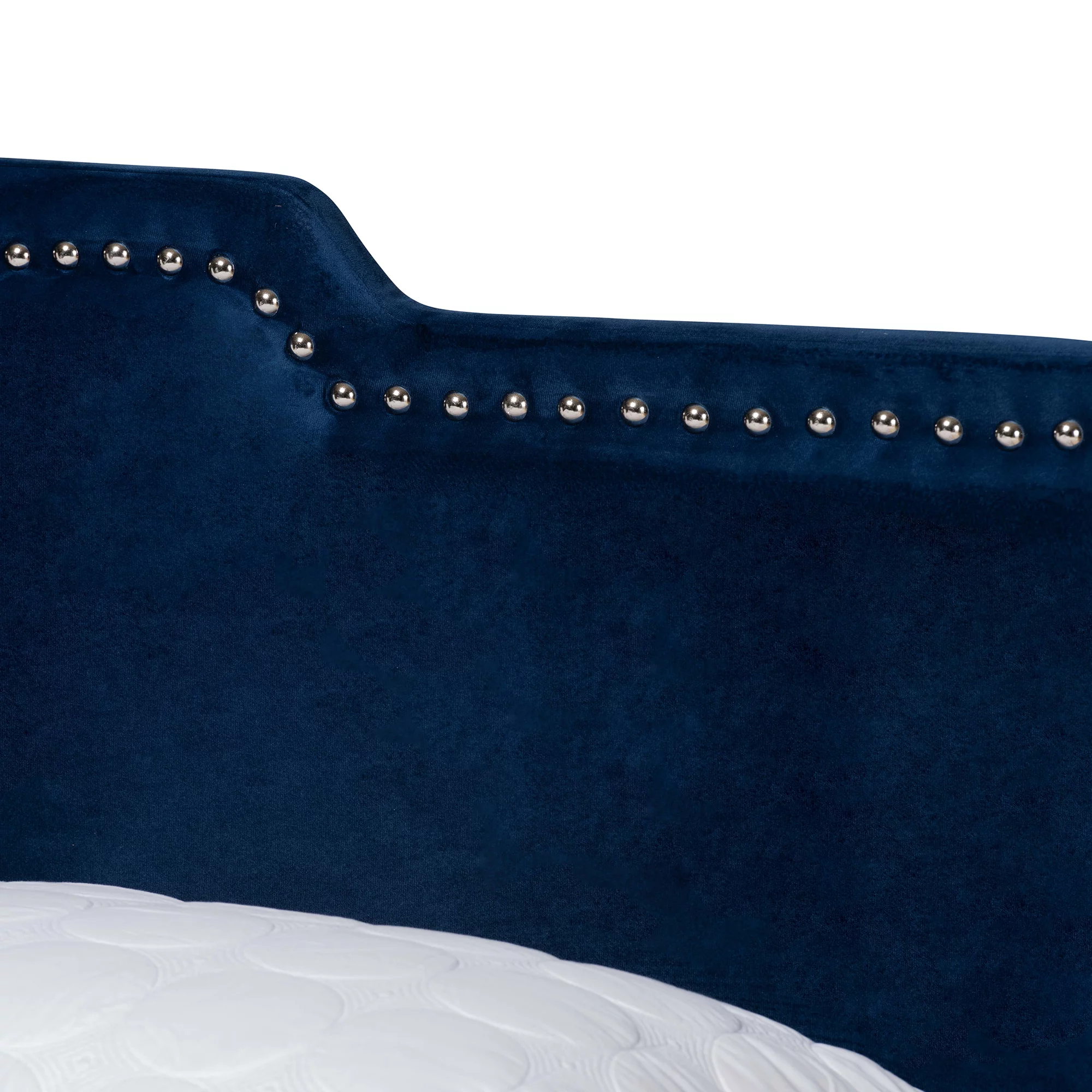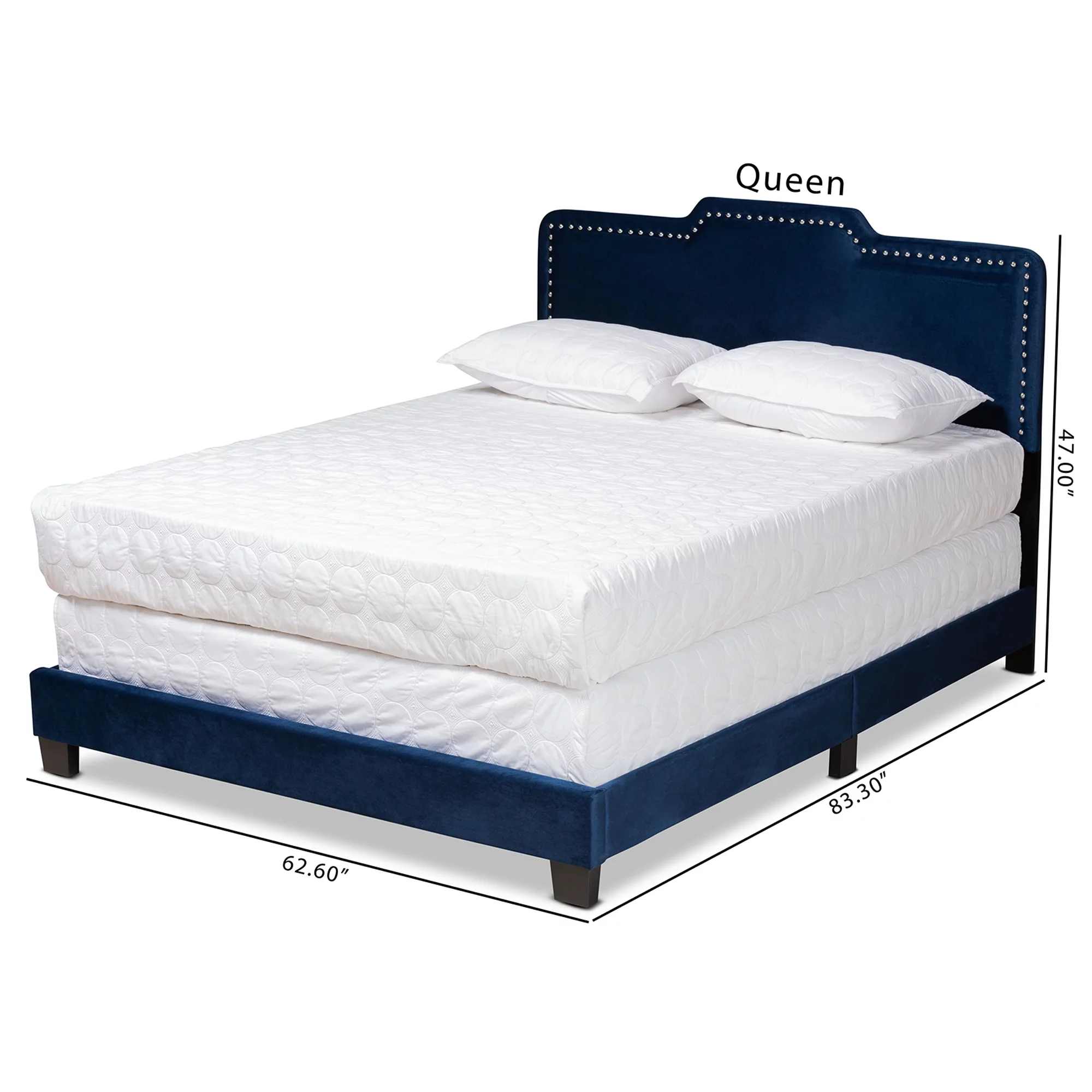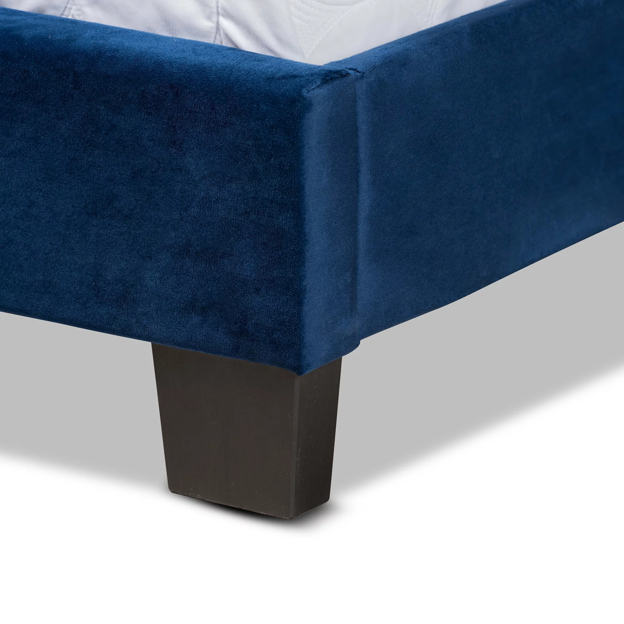 Baxton Studio Benjen Contemporary/Modern Velvet Back Support Panel Bed, Queen, Navy Blue/Black