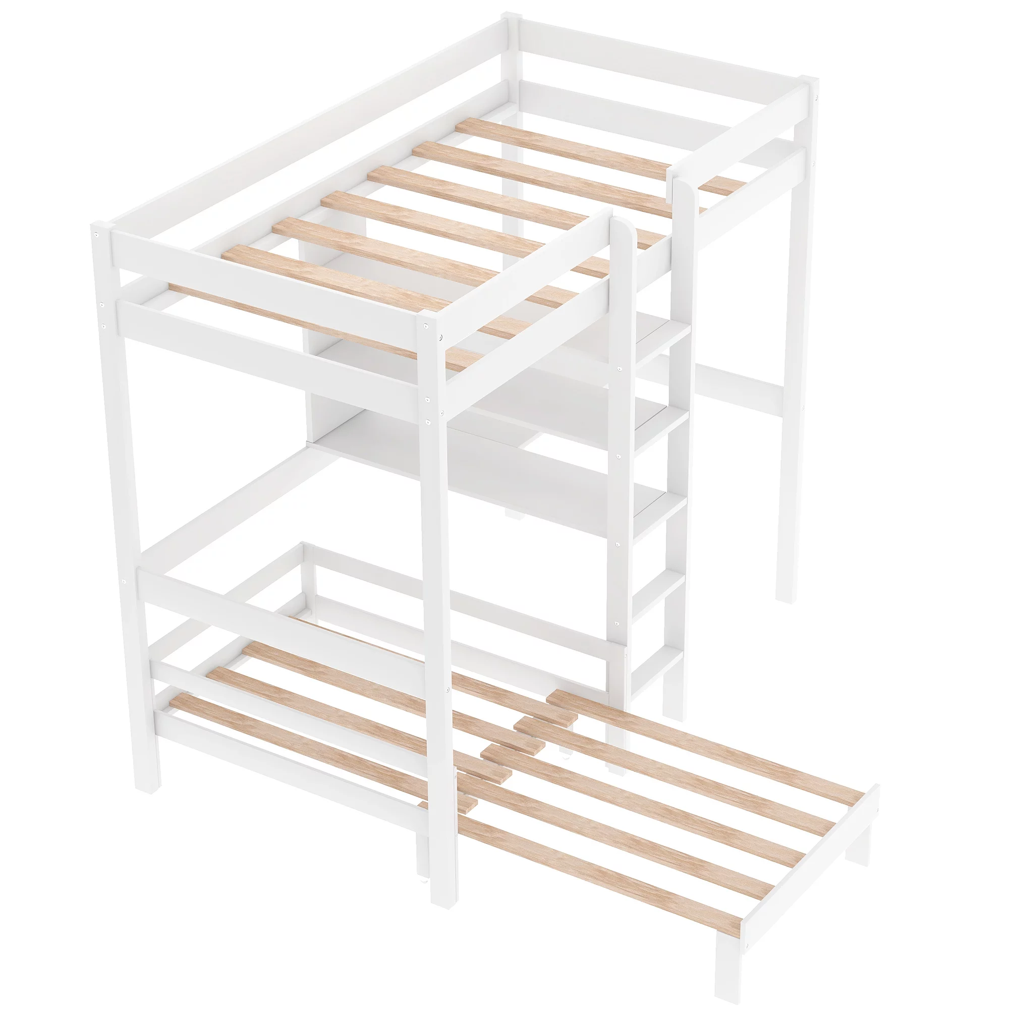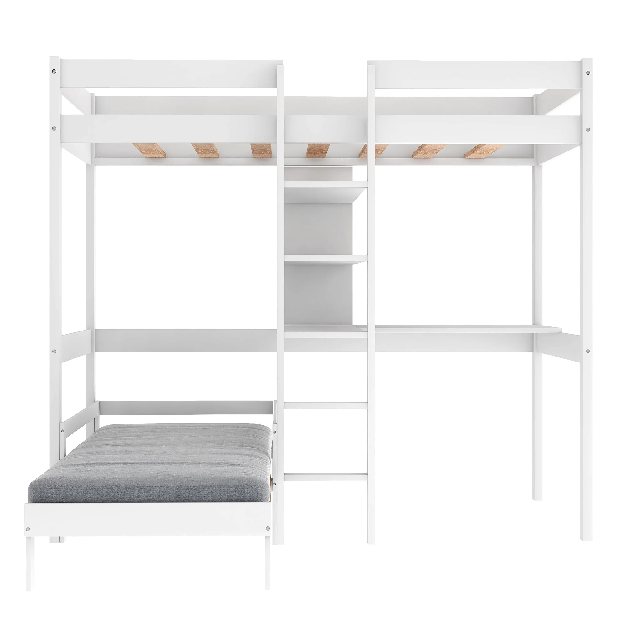 Twin Bunk Bed with Shelves and Ladder for Boys and Girls Convertible Loft Bed with L-Shape Desk and One Mattress