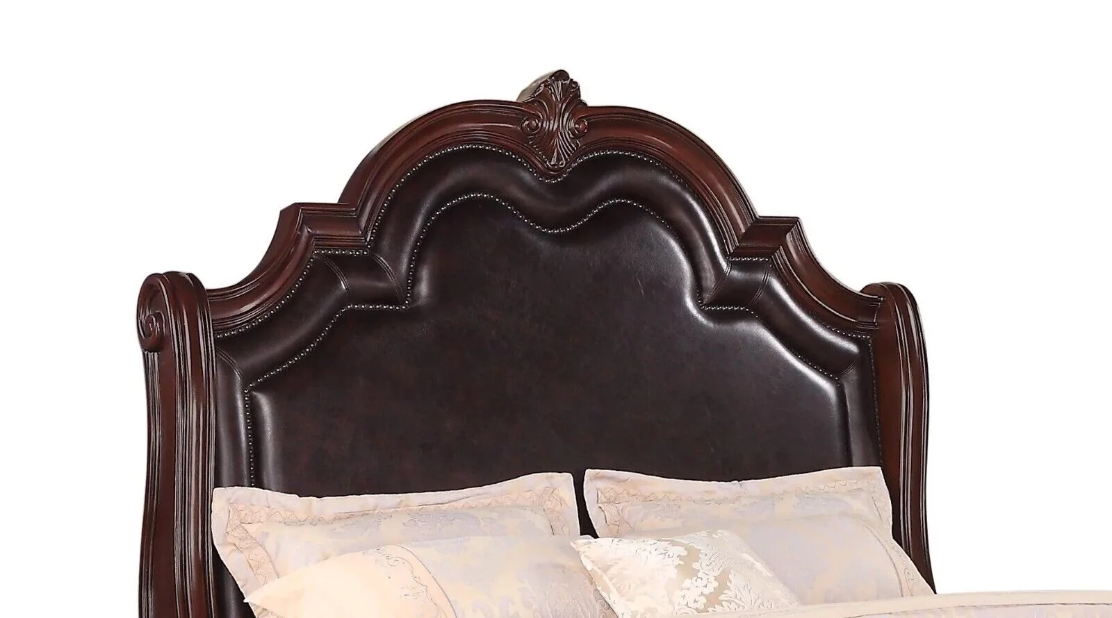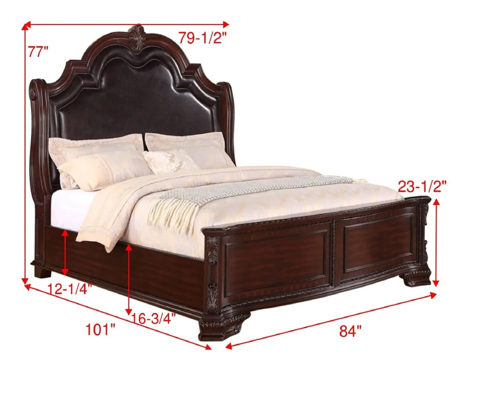 Classic Vintage Style 5Pc King Panel Bed Set Brown Finish Storage Bedroom Furniture Wooden Faux Leather