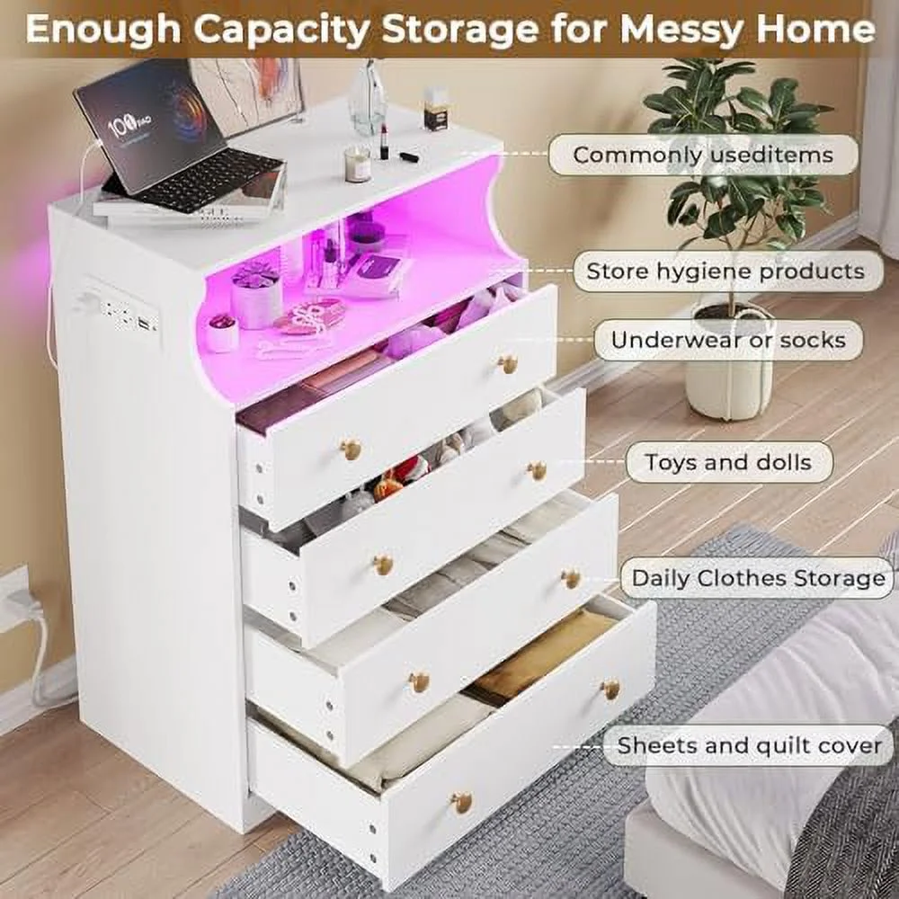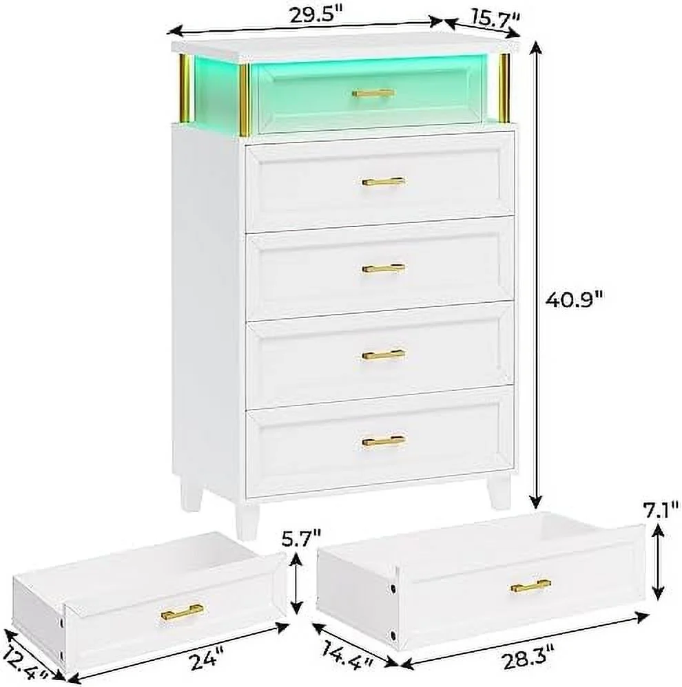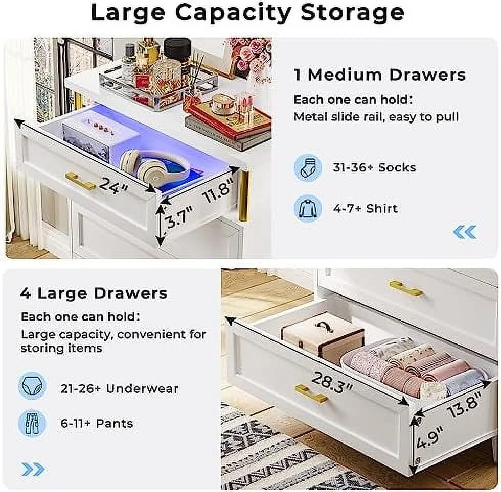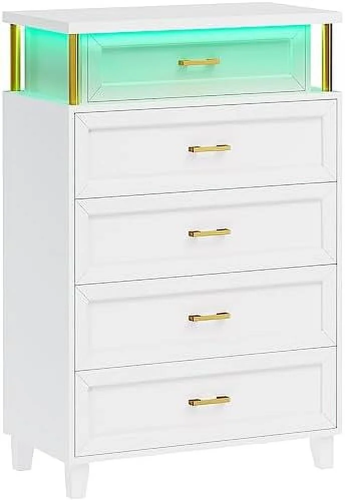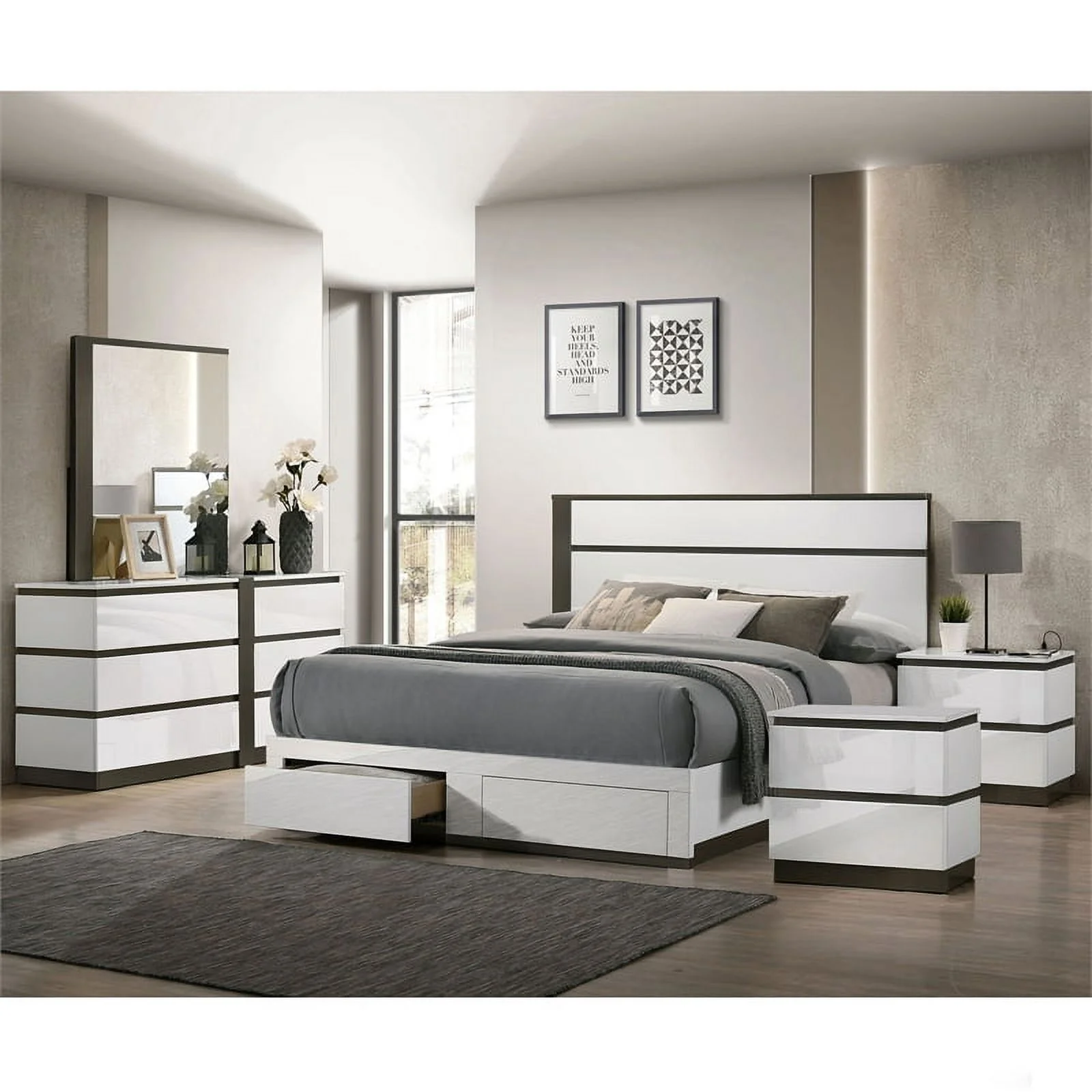 FOA Misti 5pc Wood White Storage Bed Set - Cal King+2 Nightstands+Dresser+Mirror