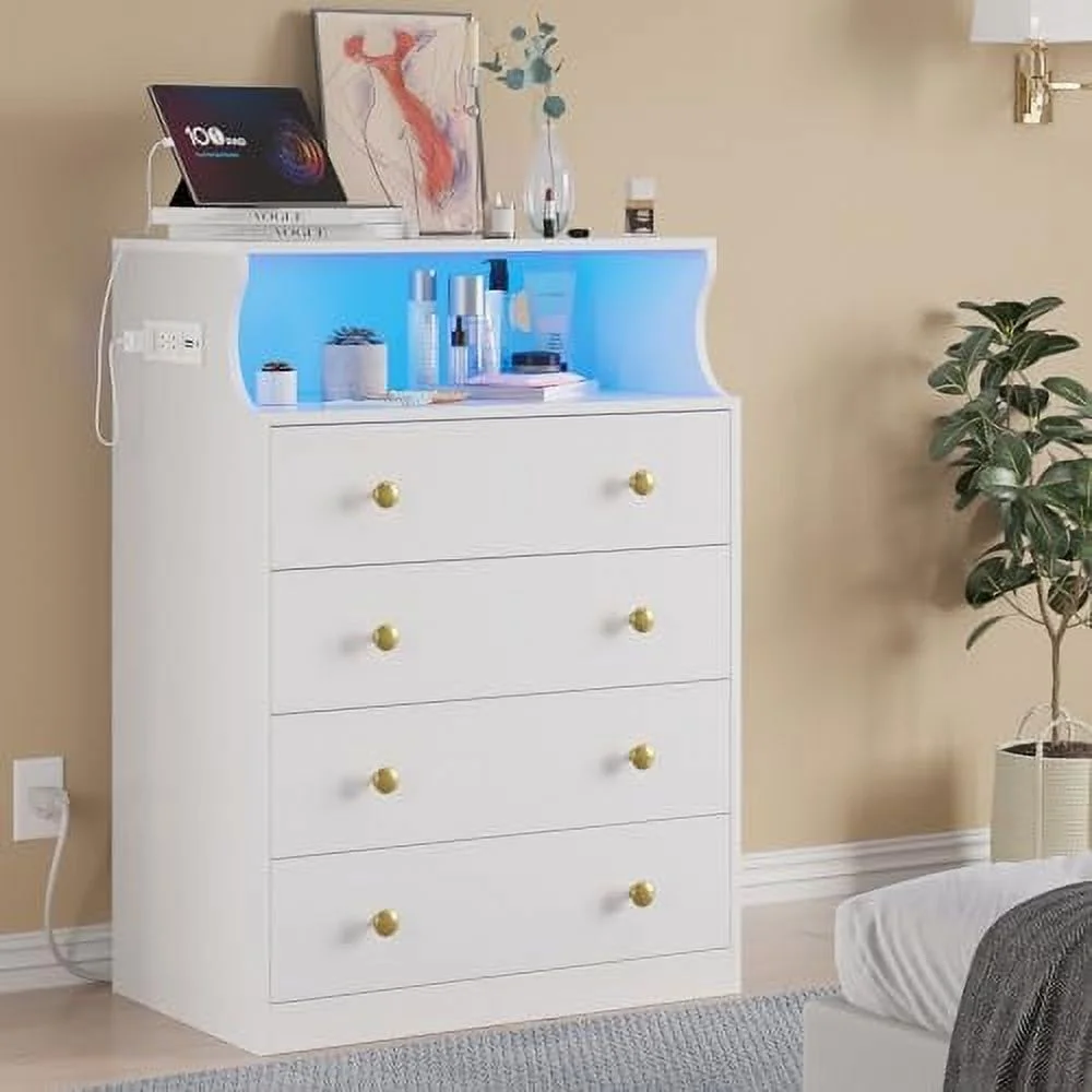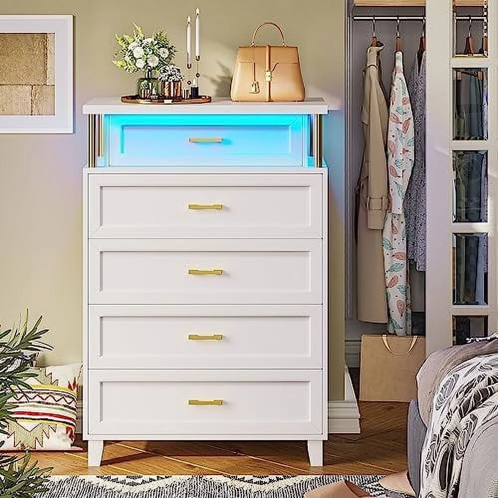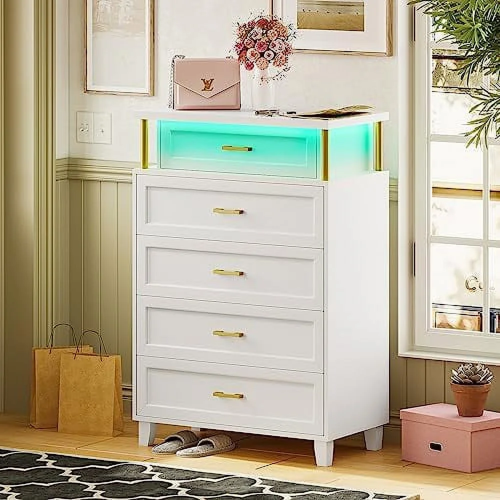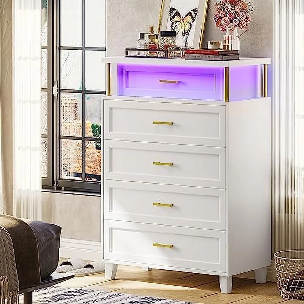 FOA Misti 5pc Wood White Storage Bed Set - Cal King+2 Nightstands+Dresser+Mirror