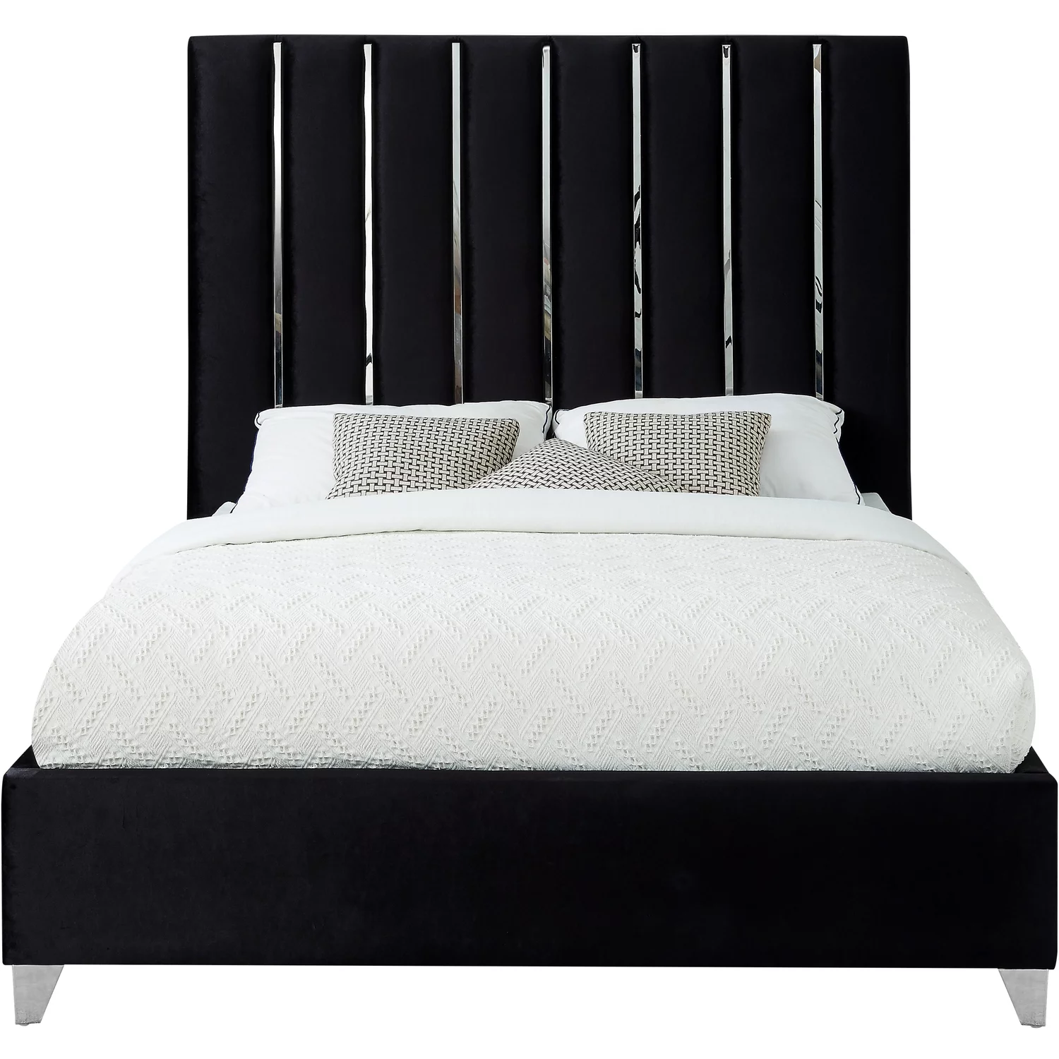 Maykoosh Art Nouveau Allure Velvet Upholstered Platform Bed with Sturdy Gold Steel Legs and Deep Channel Tufted Headboard
