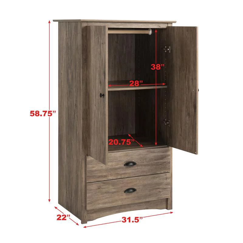 Home Square 2-Piece Set with King Platform Storage Bed and 2 Door Armoire