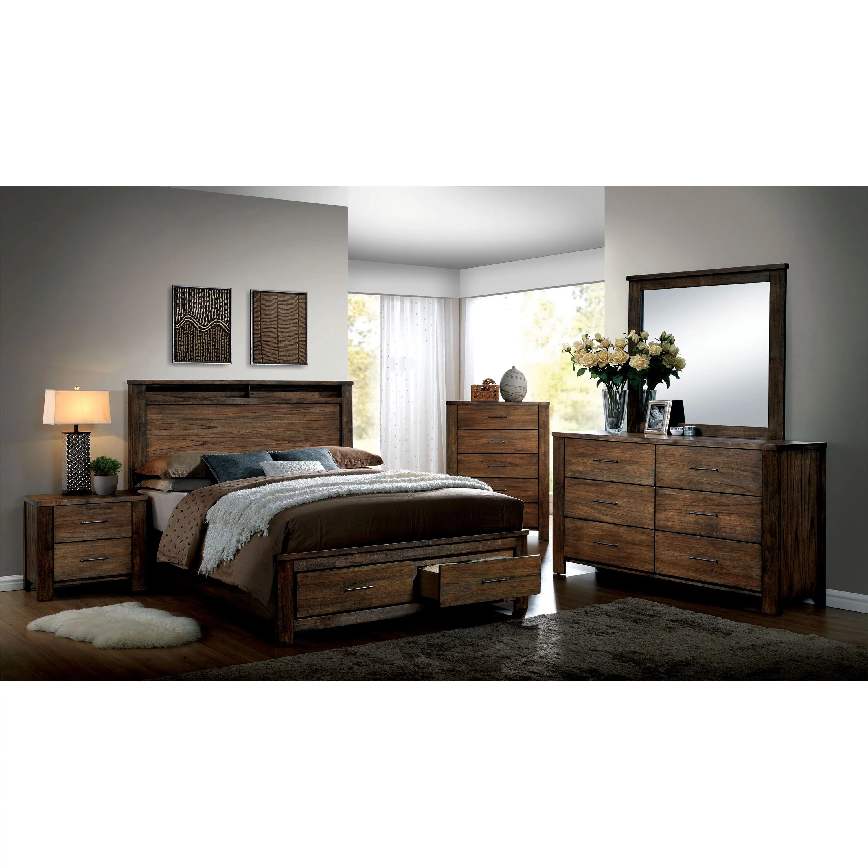 Furniture of America Slyvester Rustic Brown Cal King Wood 2-Piece Storage Platform Bed Set by