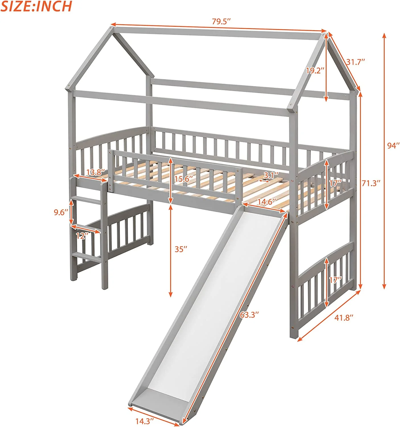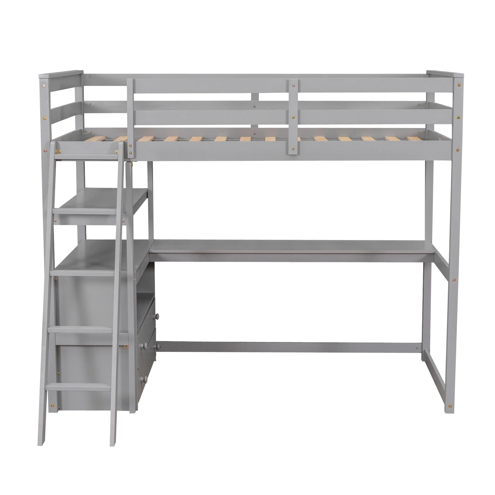 Twin Loft Bed with Desk and Shelves, Wood Loft Bed Frame with Storage Drawers, for Kids Teens Adults - Gray