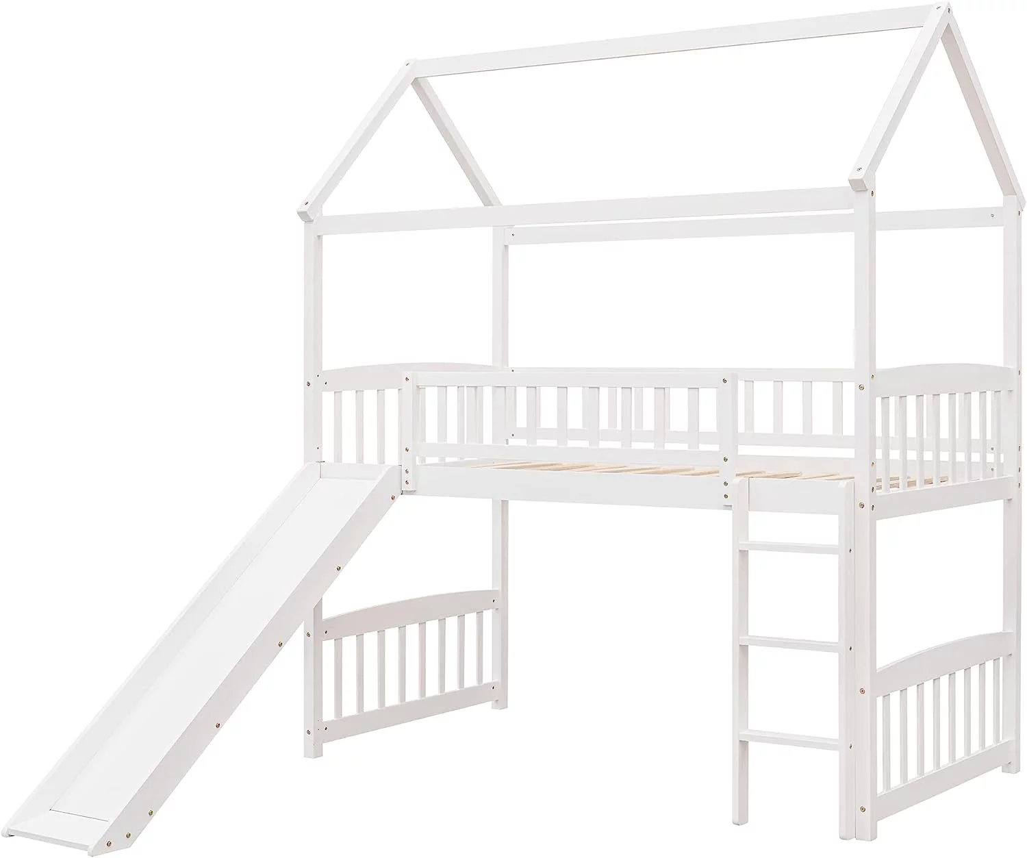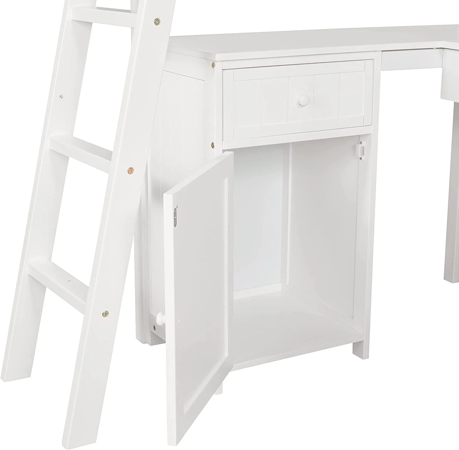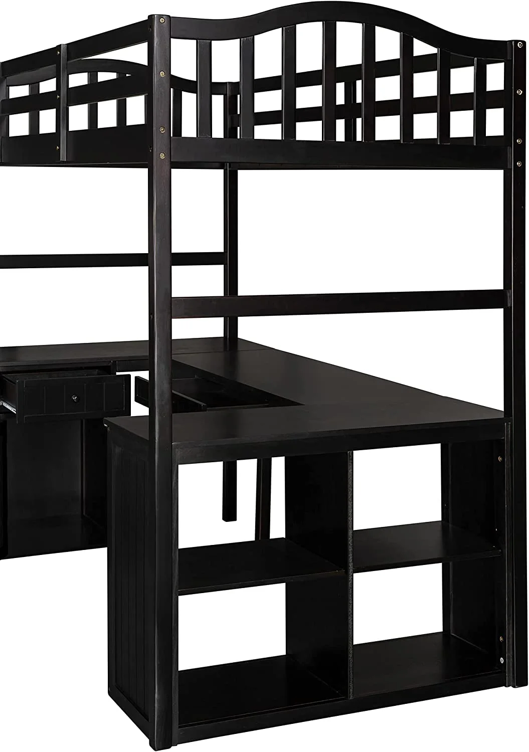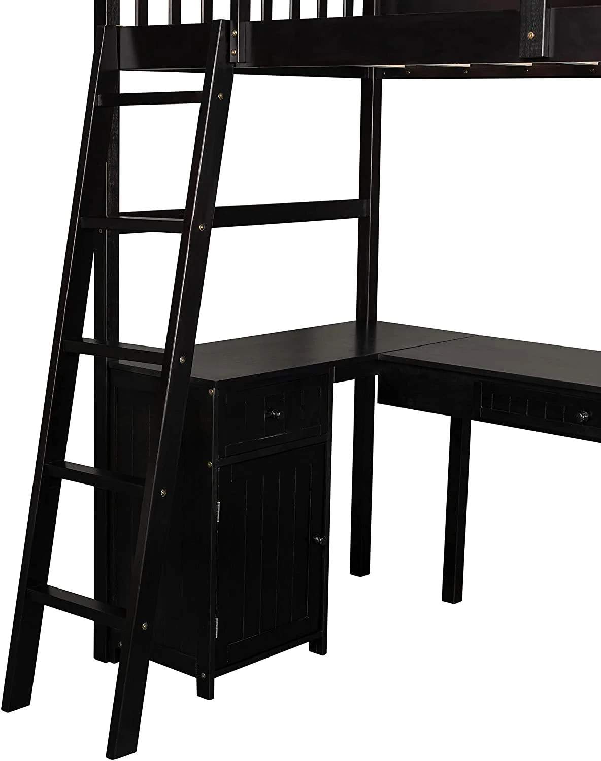 Twin Loft Bed with Desk Bookcase Storage Cabinet, Solid Wood Slat Bed Frame with Writing Board Ladder for Child Kids Teens