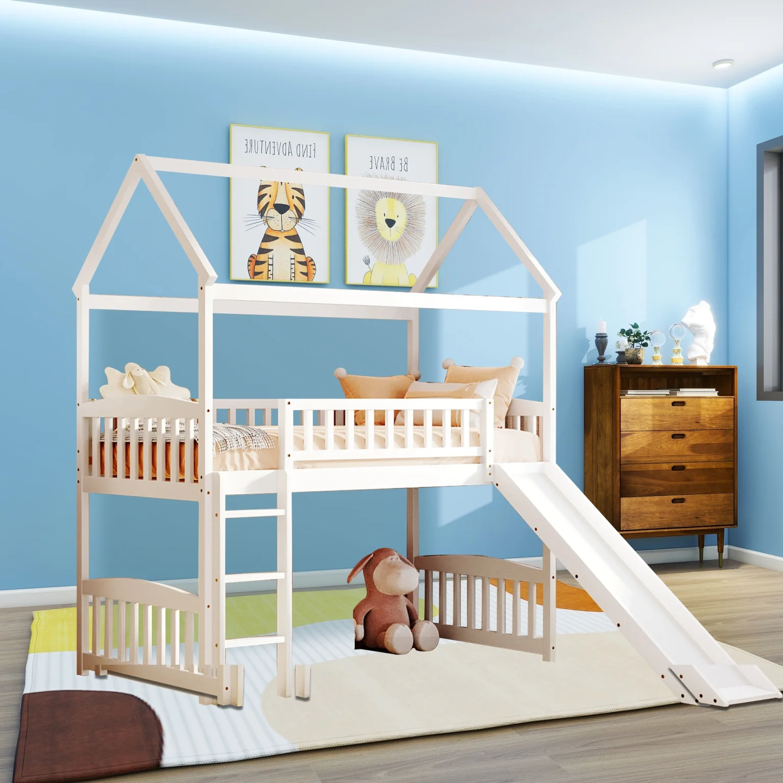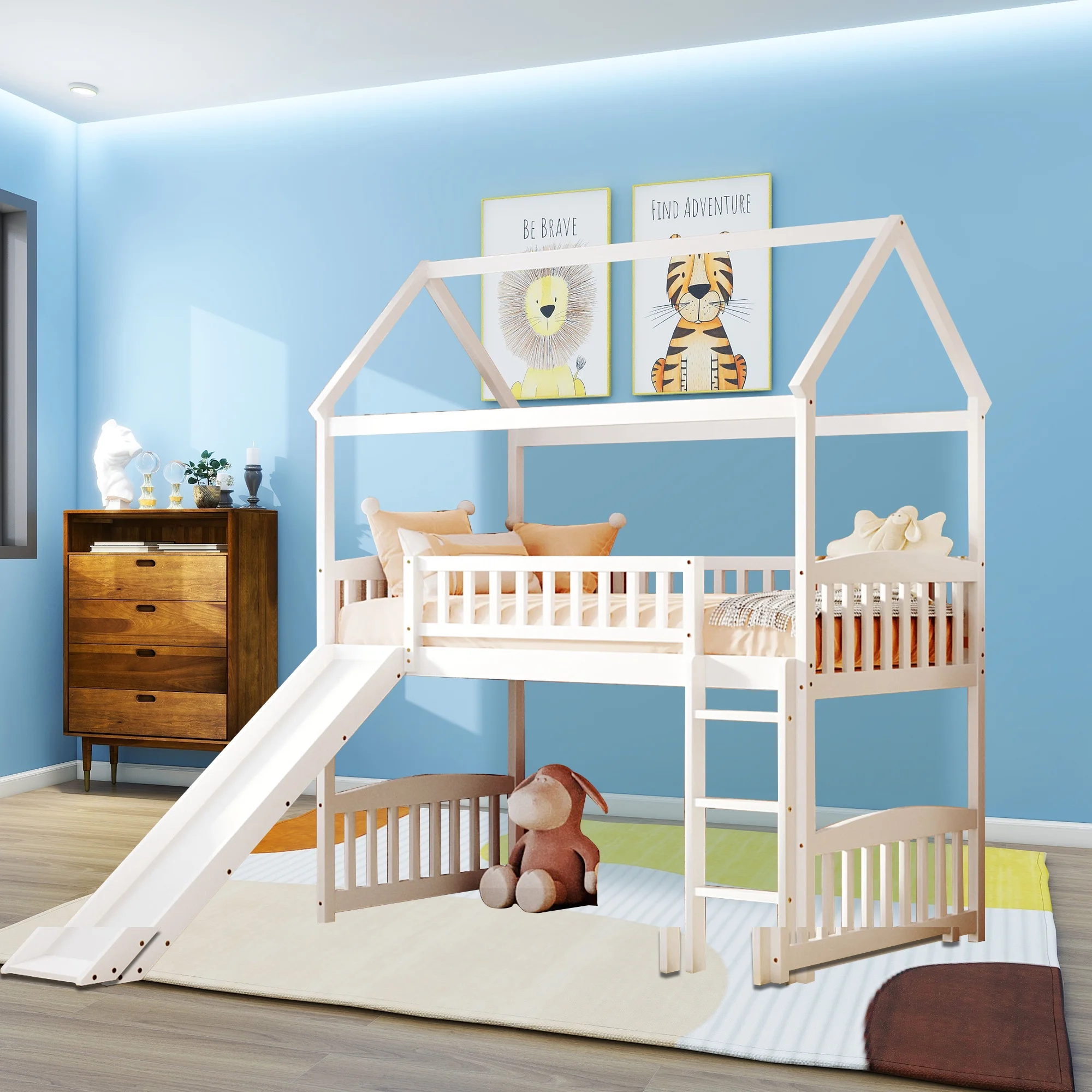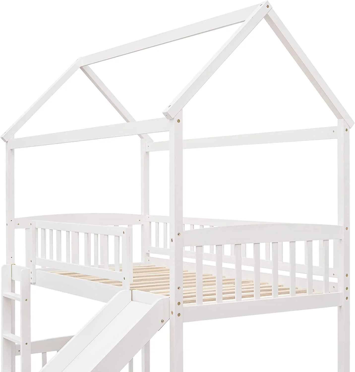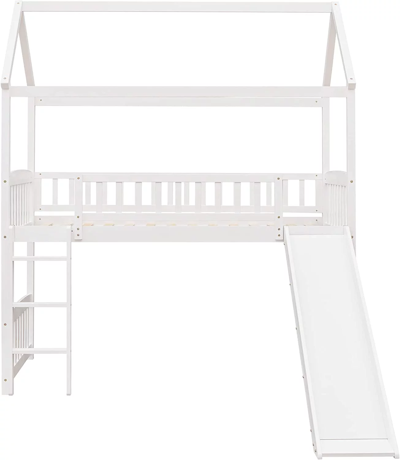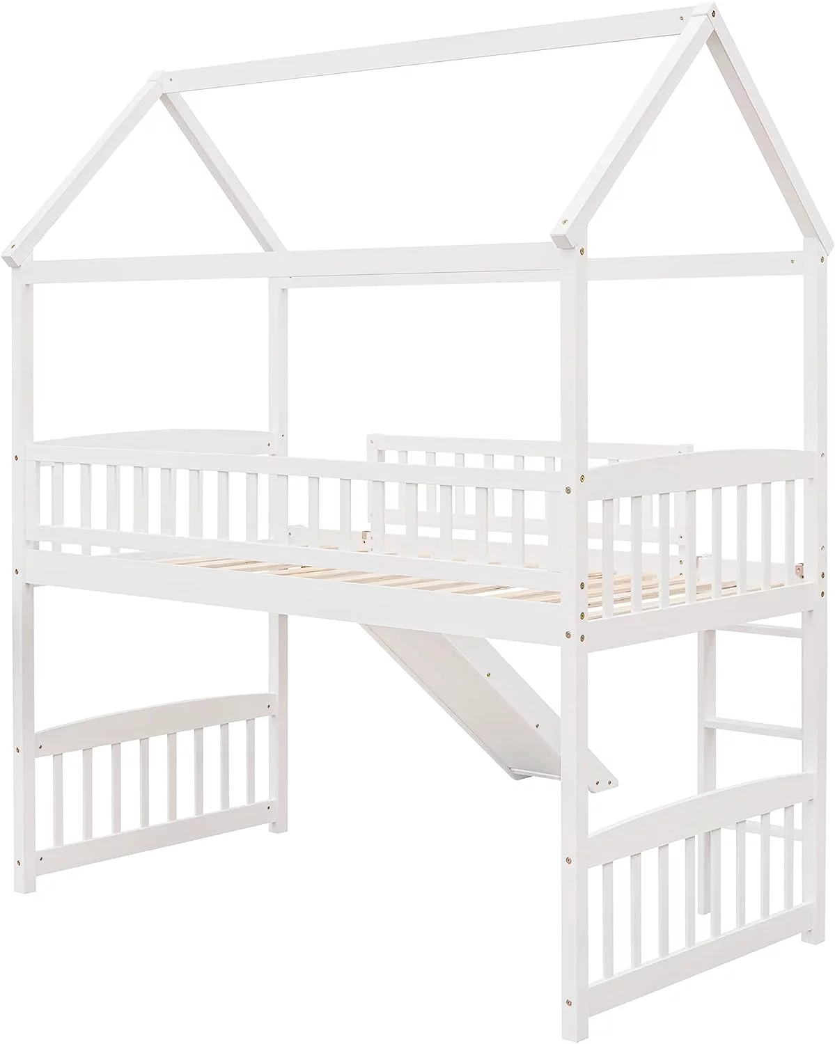 Twin Loft Bed with Desk Bookcase Storage Cabinet, Solid Wood Slat Bed Frame with Writing Board Ladder for Child Kids Teens