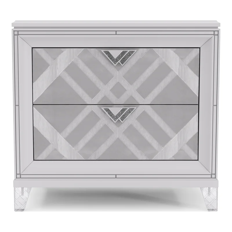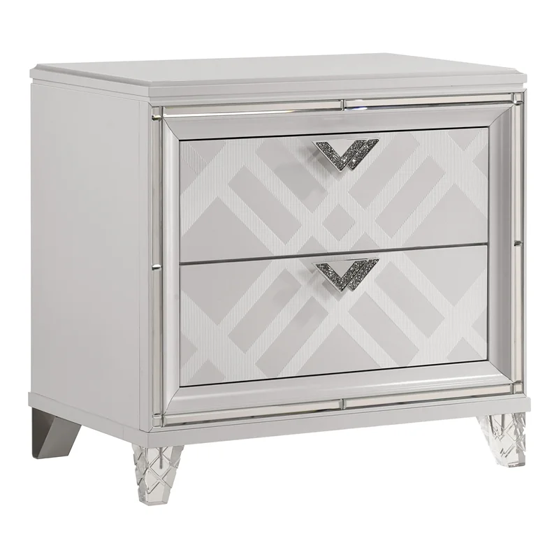 Beautiful Modern Glam Style 3pc California King Size LED Panel Bed and Storage Nightstand Set
