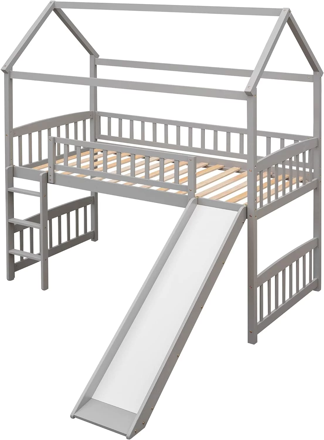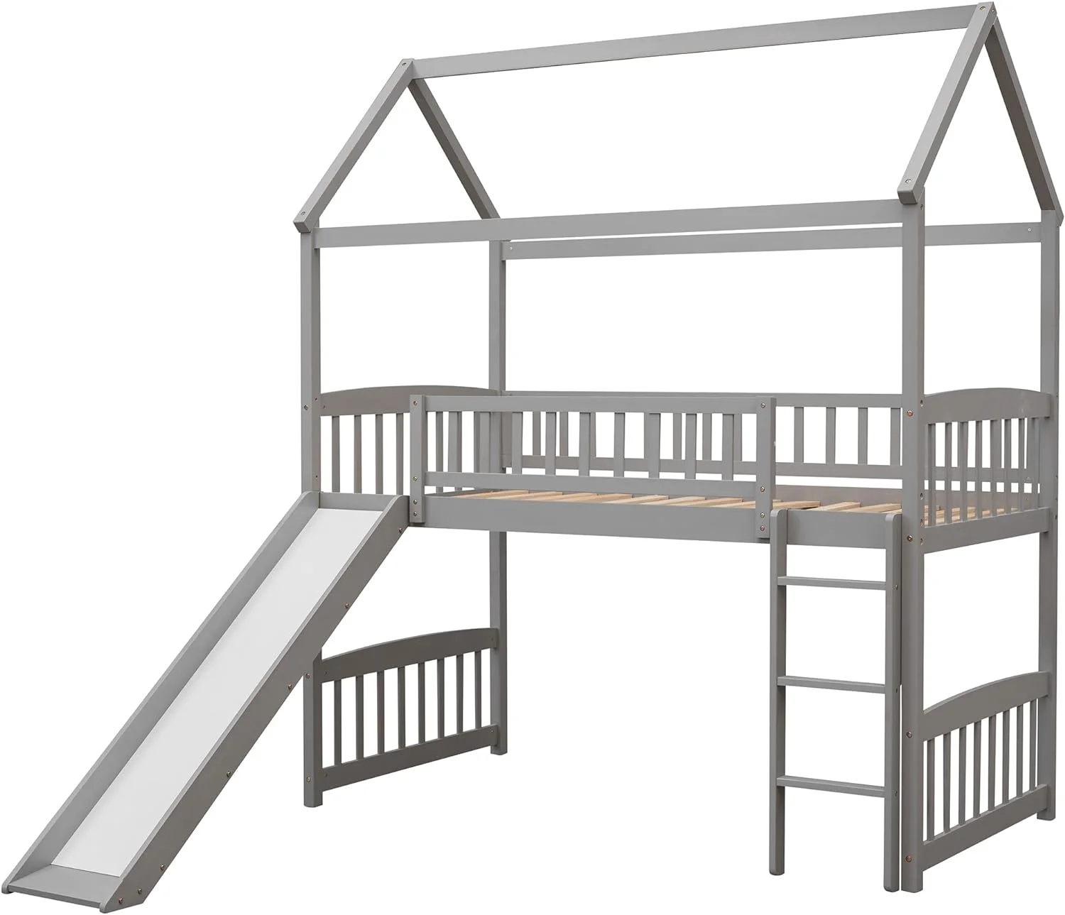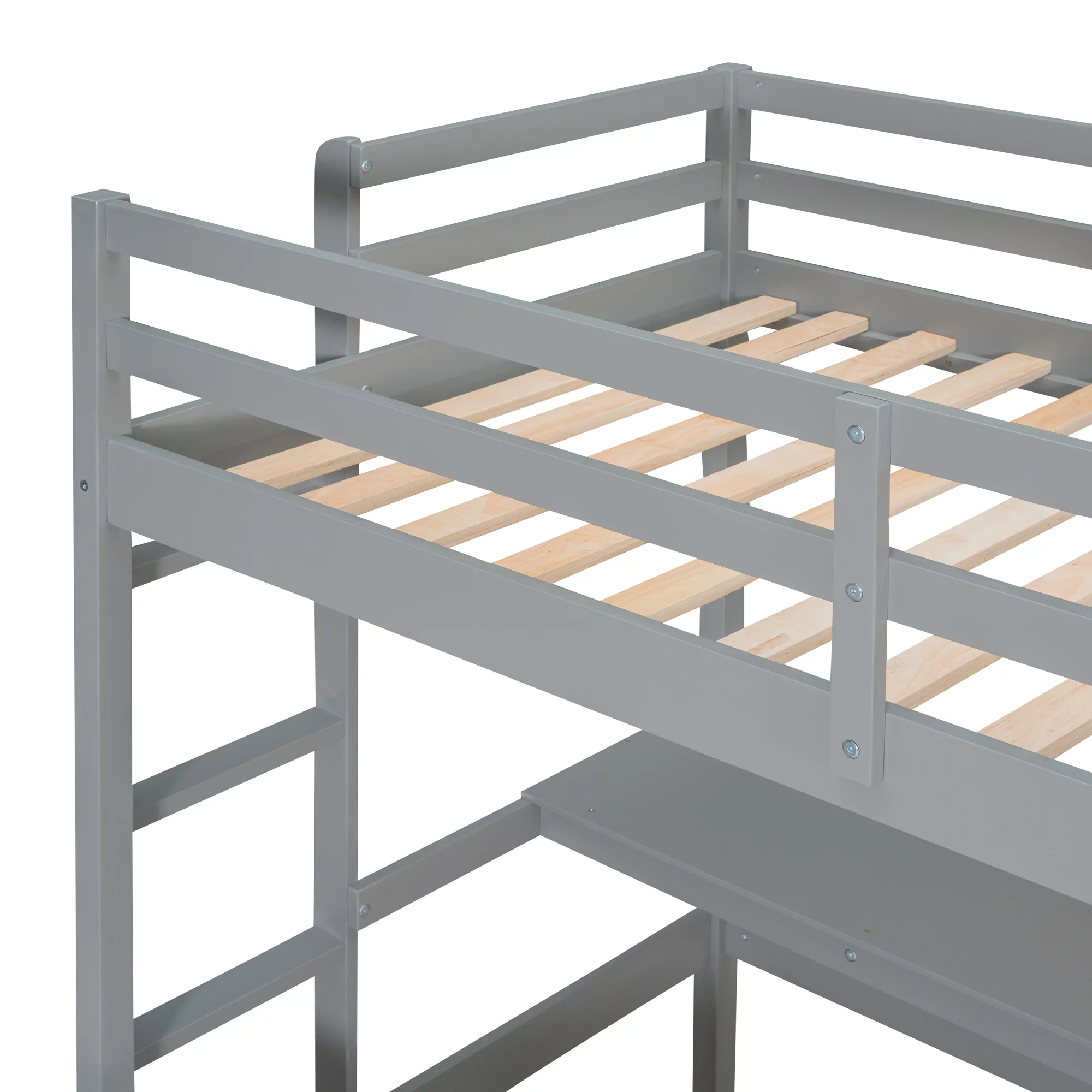 Nestfair Teen/Kids Twin Loft Bed with Twin Platform Bed,Storage Staircase,Versatile Desk,Solid Wood,Gray