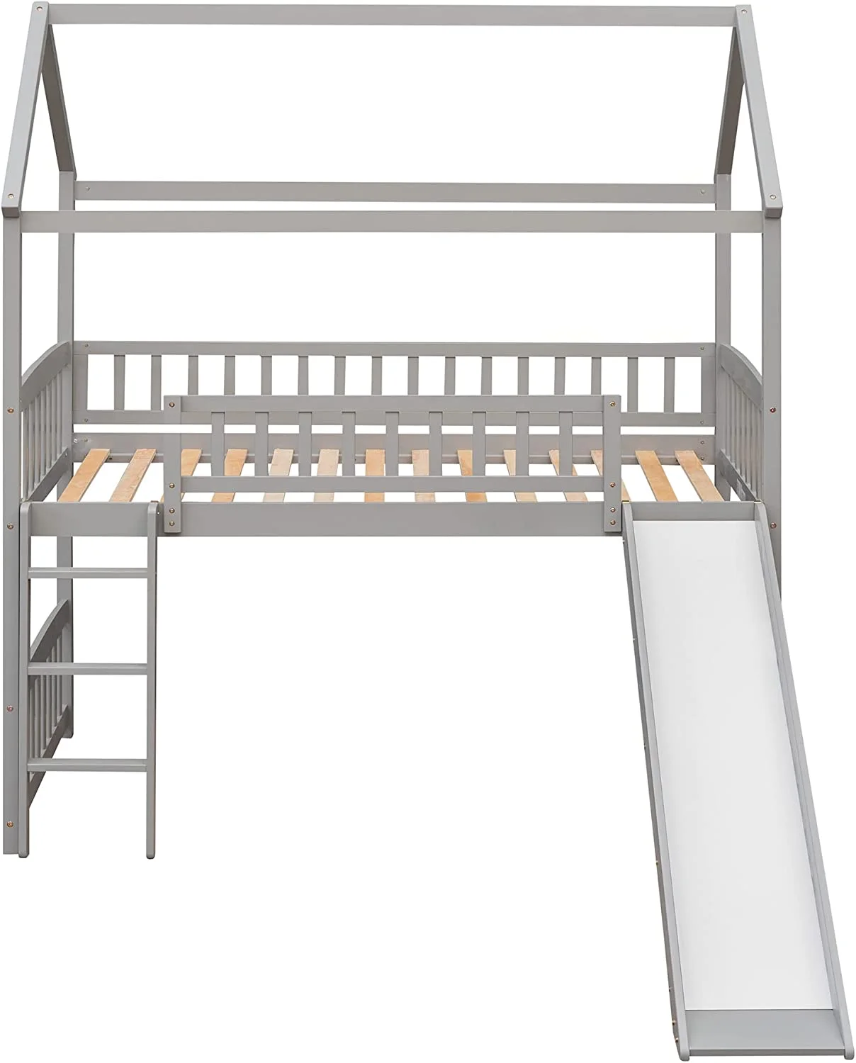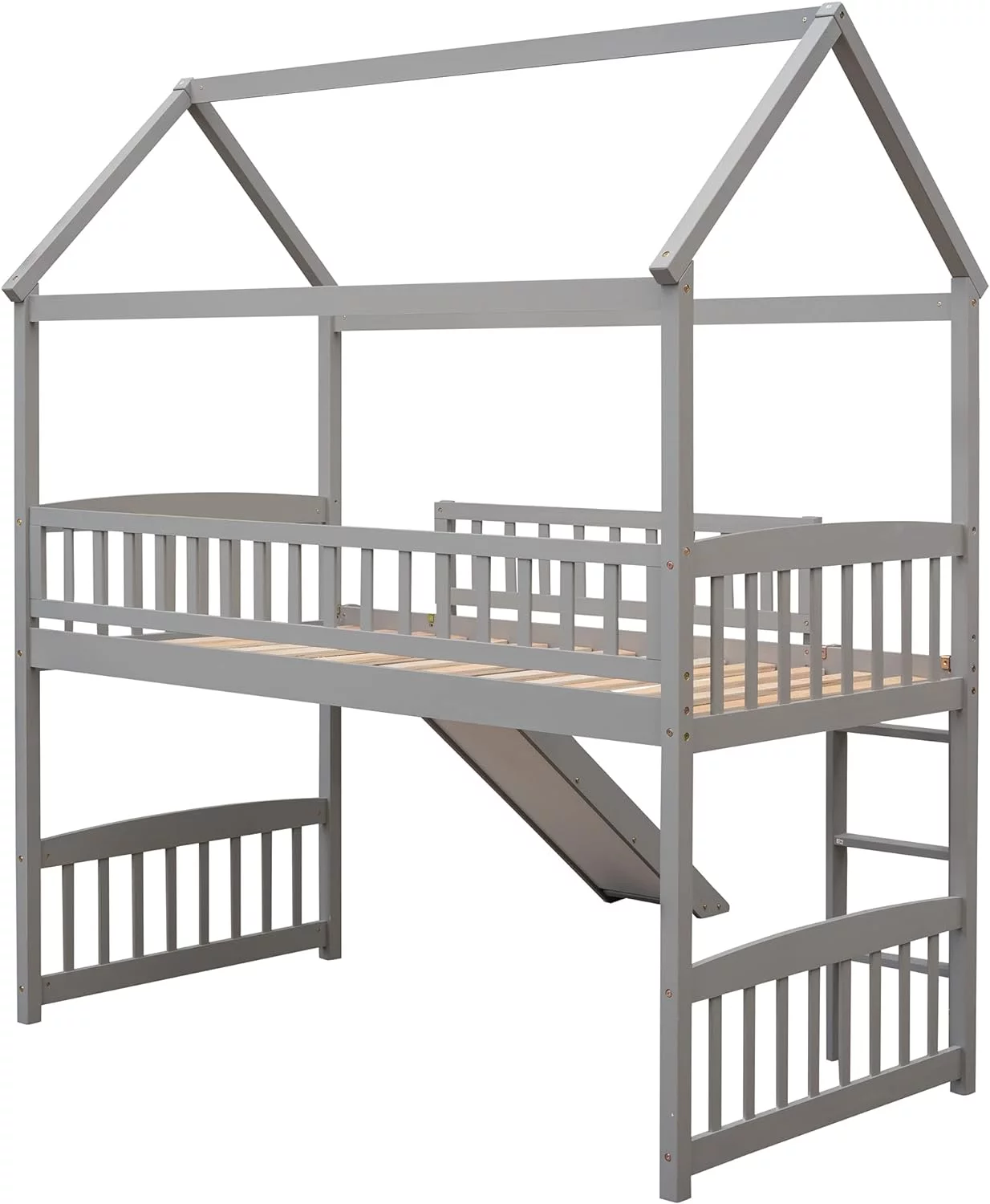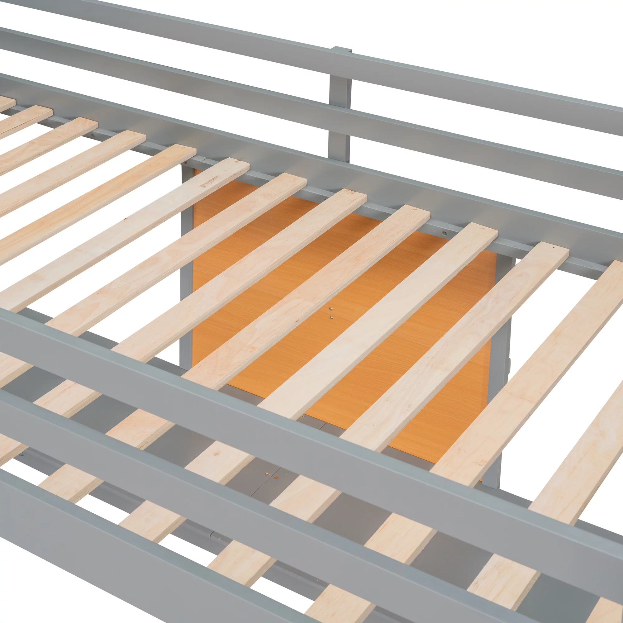 Nestfair Teen/Kids Twin Loft Bed with Twin Platform Bed,Storage Staircase,Versatile Desk,Solid Wood,Gray