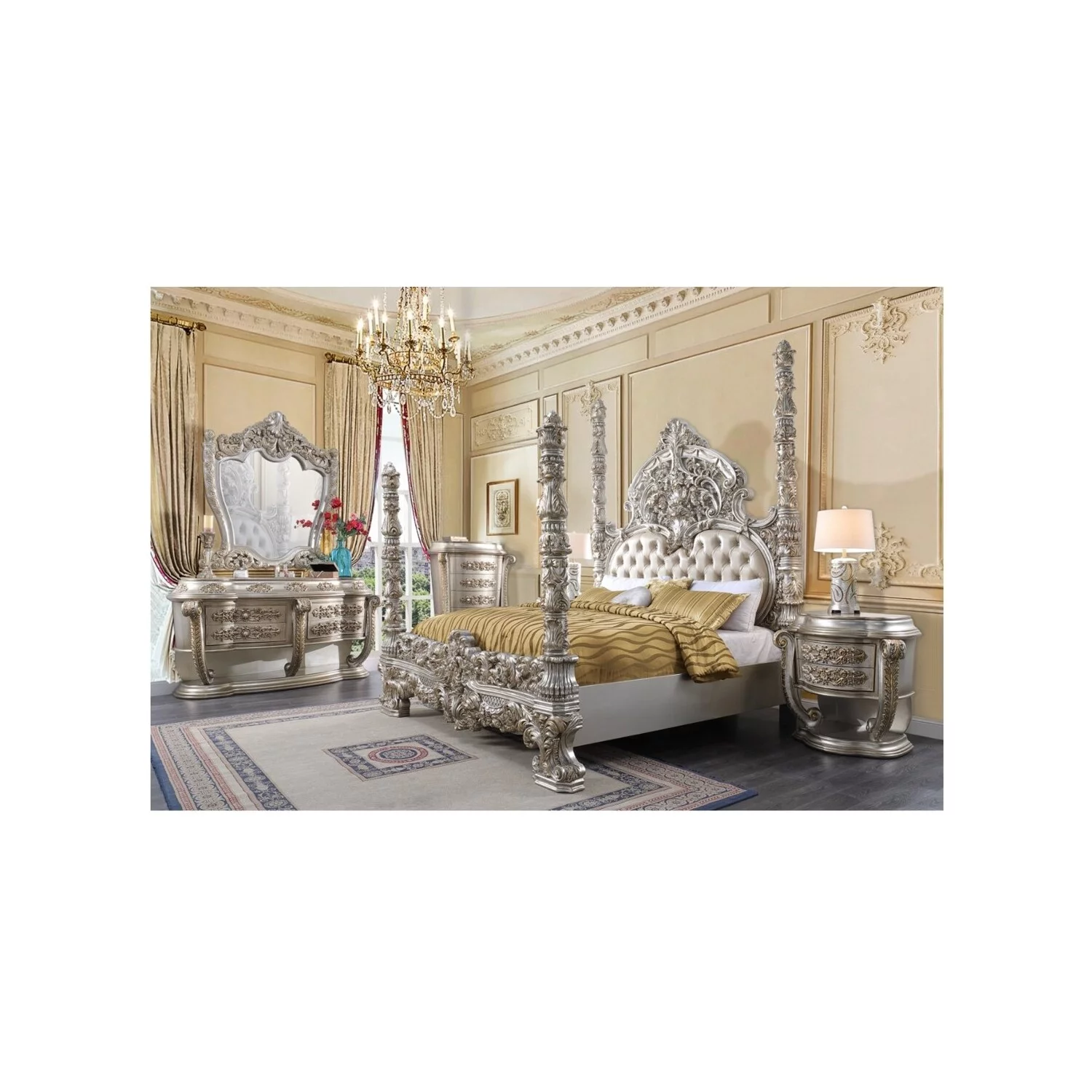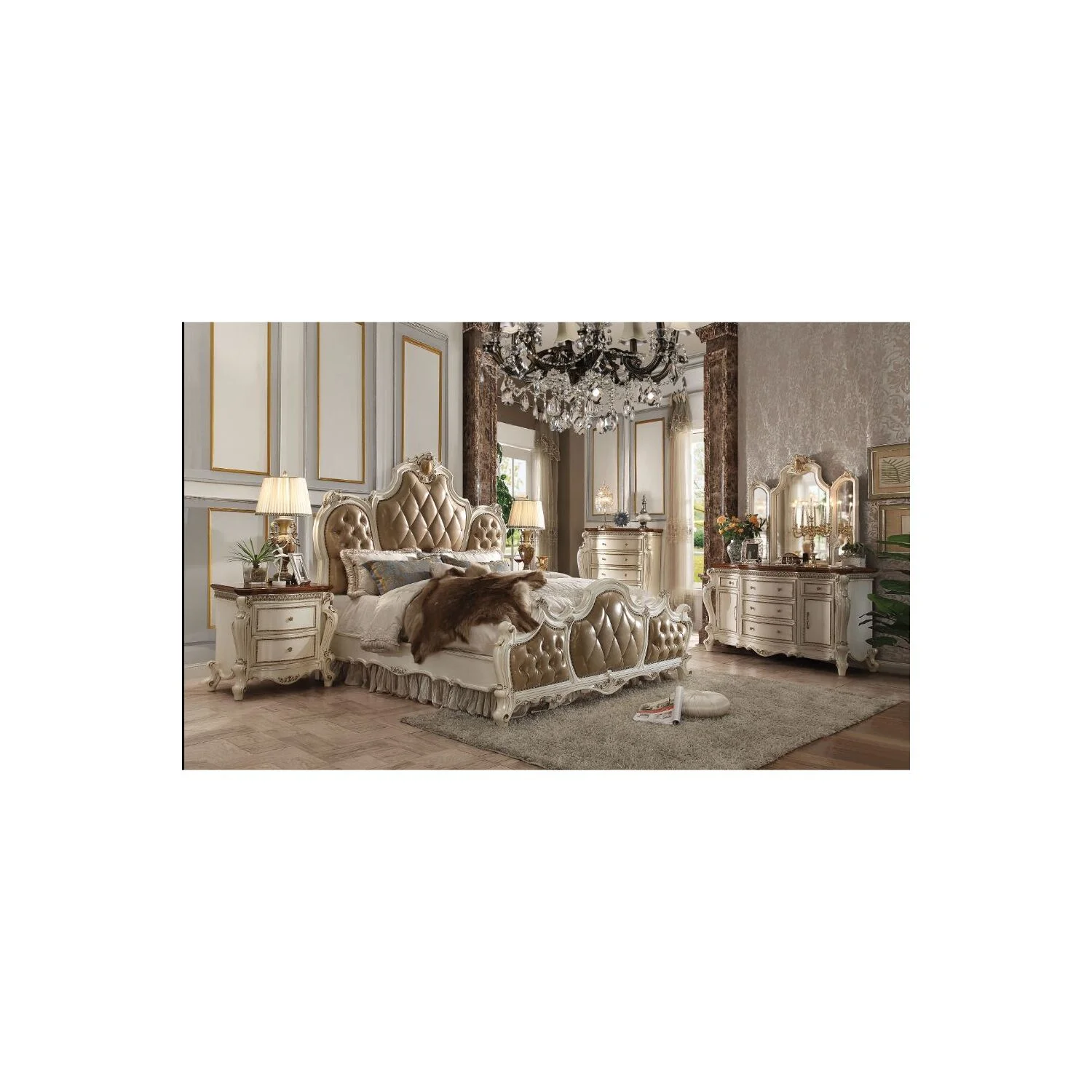 Beautiful Modern Glam Style 4pc California King Size LED Panel Bed and Storage Set