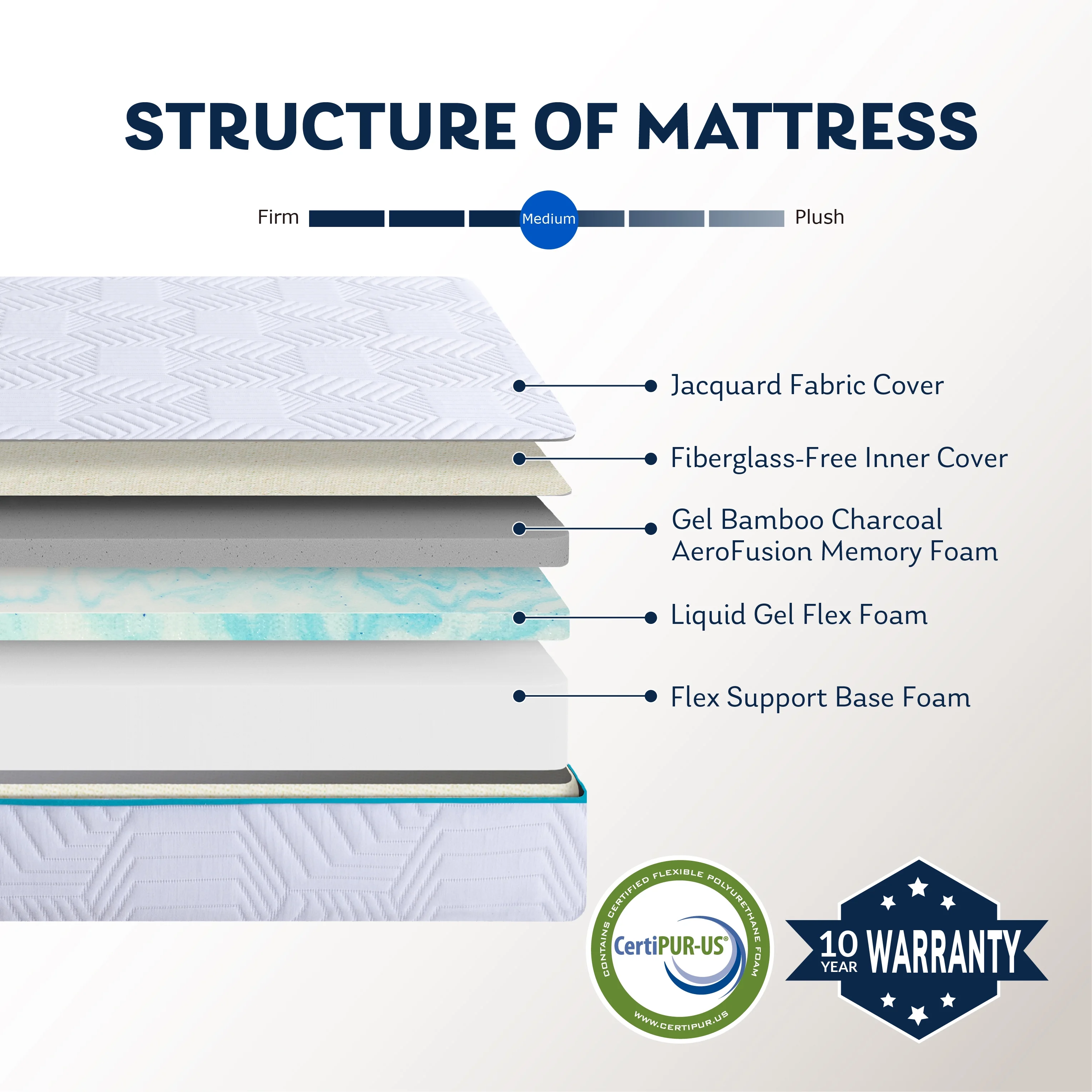 Hcore Ego White 10 inch Memory Foam Mattress, Full Size Mattress in a Box, Medium Firm