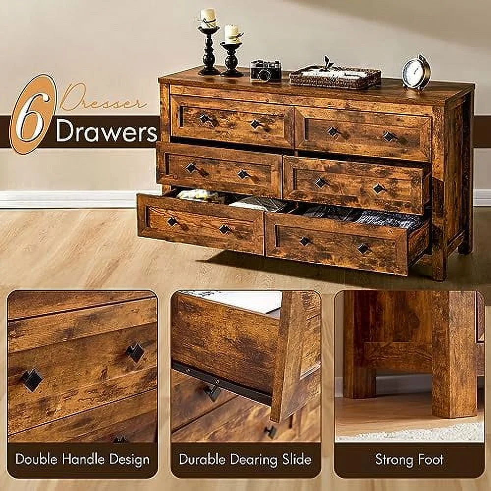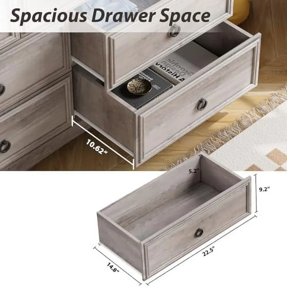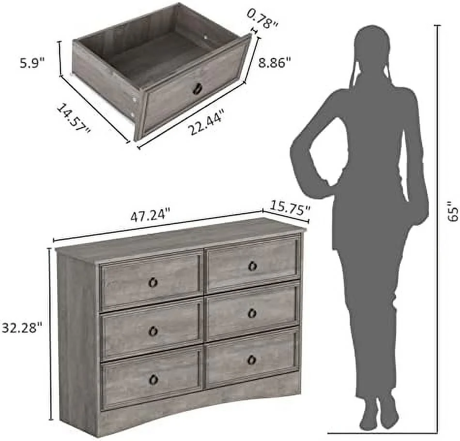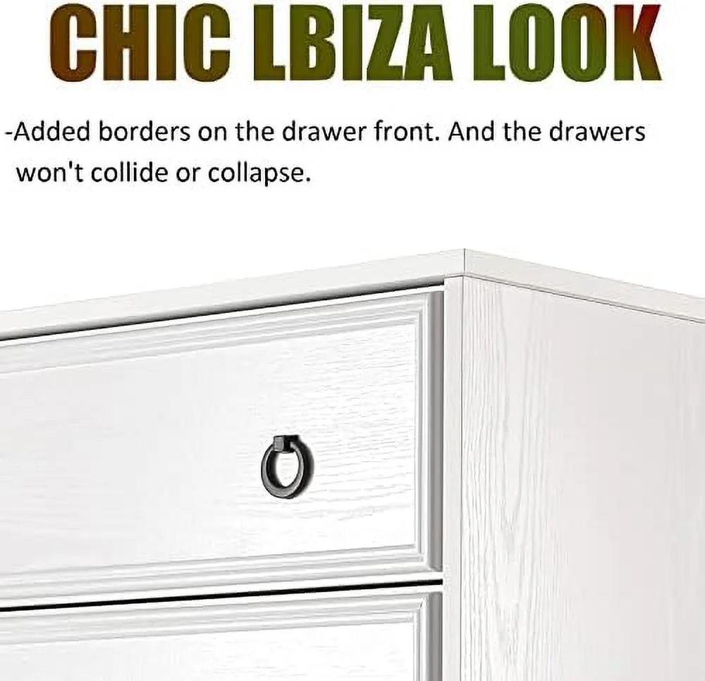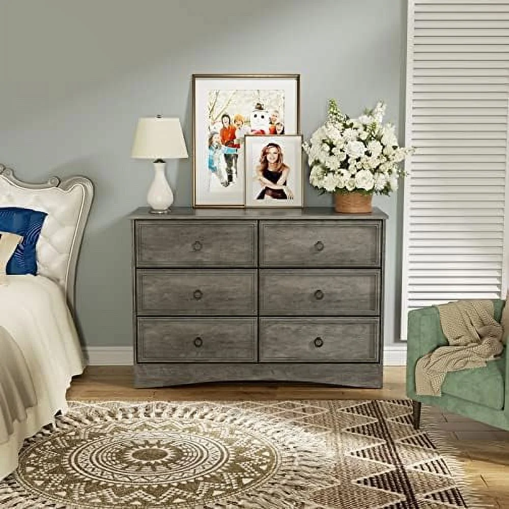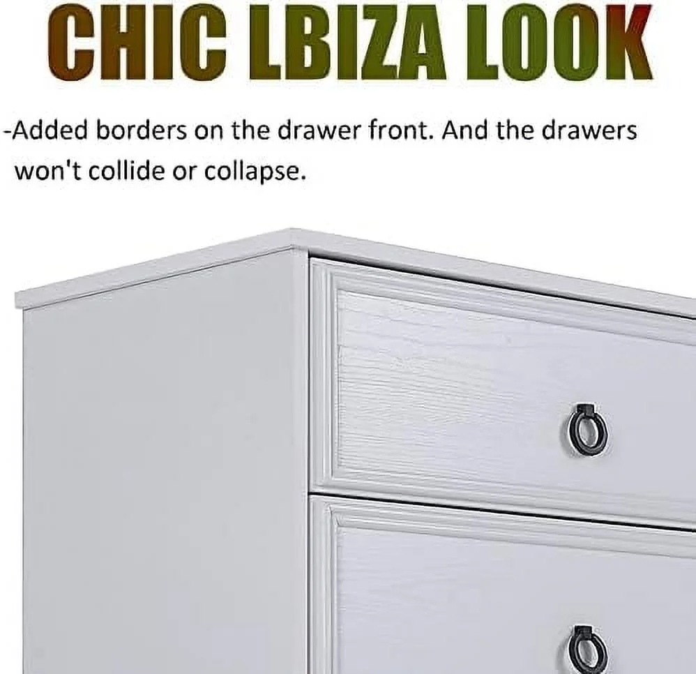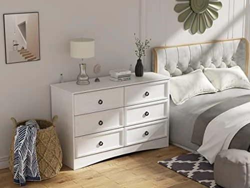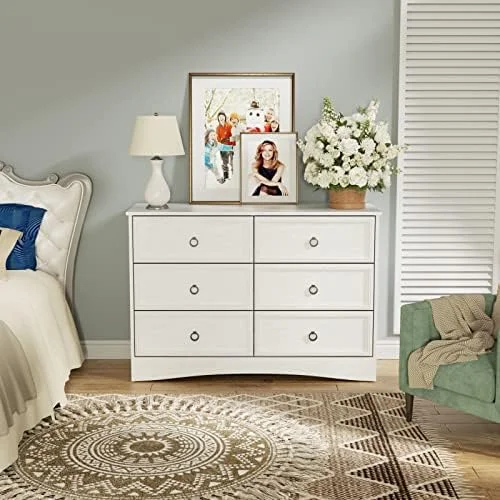 Bedroom Dresser Wood Dresser with 6 Fabric Drawers, Classic Storage Cabinet for Living Room, Hallway, White