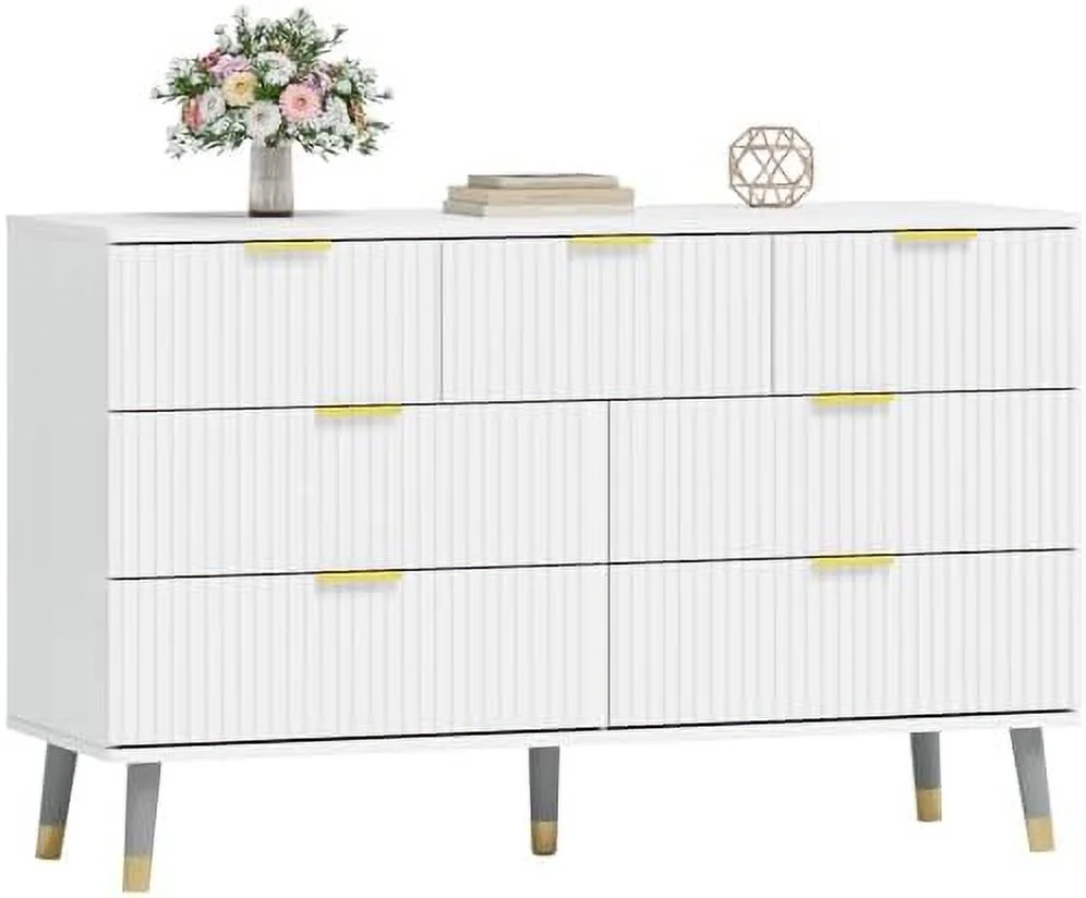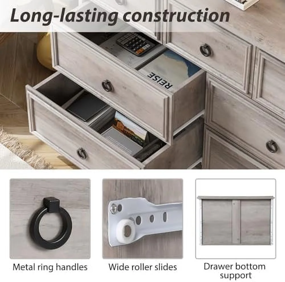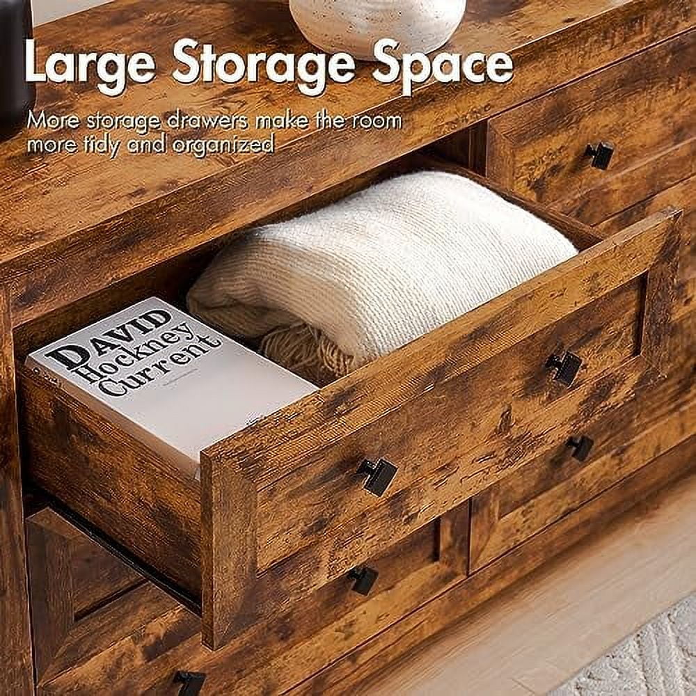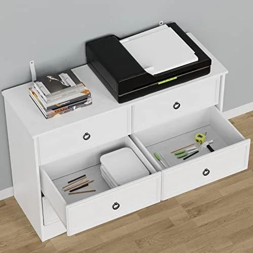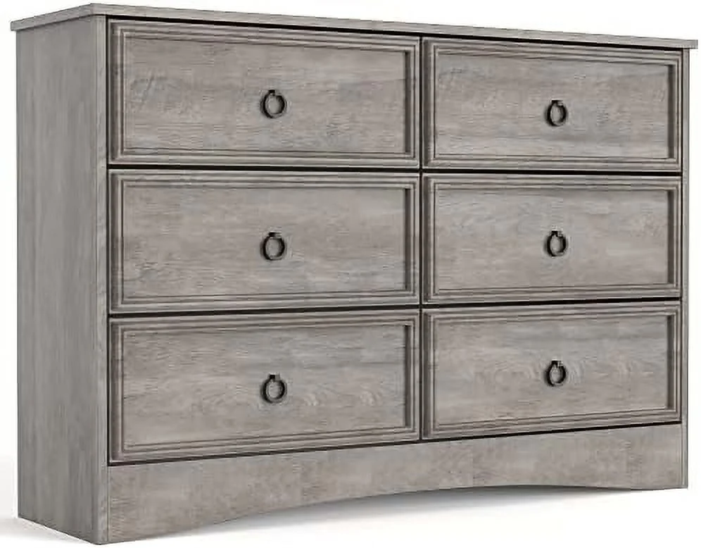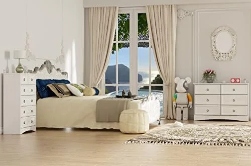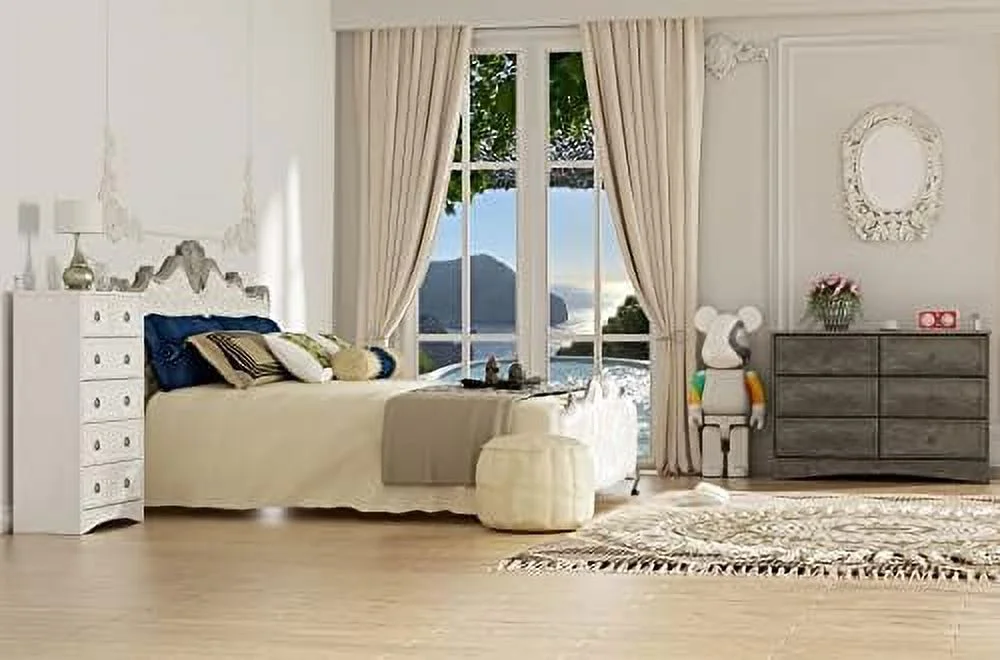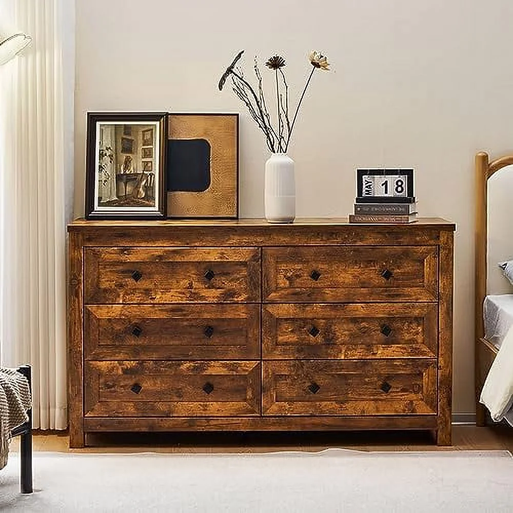 Bedroom Dresser Wood Dresser with 6 Fabric Drawers, Classic Storage Cabinet for Living Room, Hallway, White