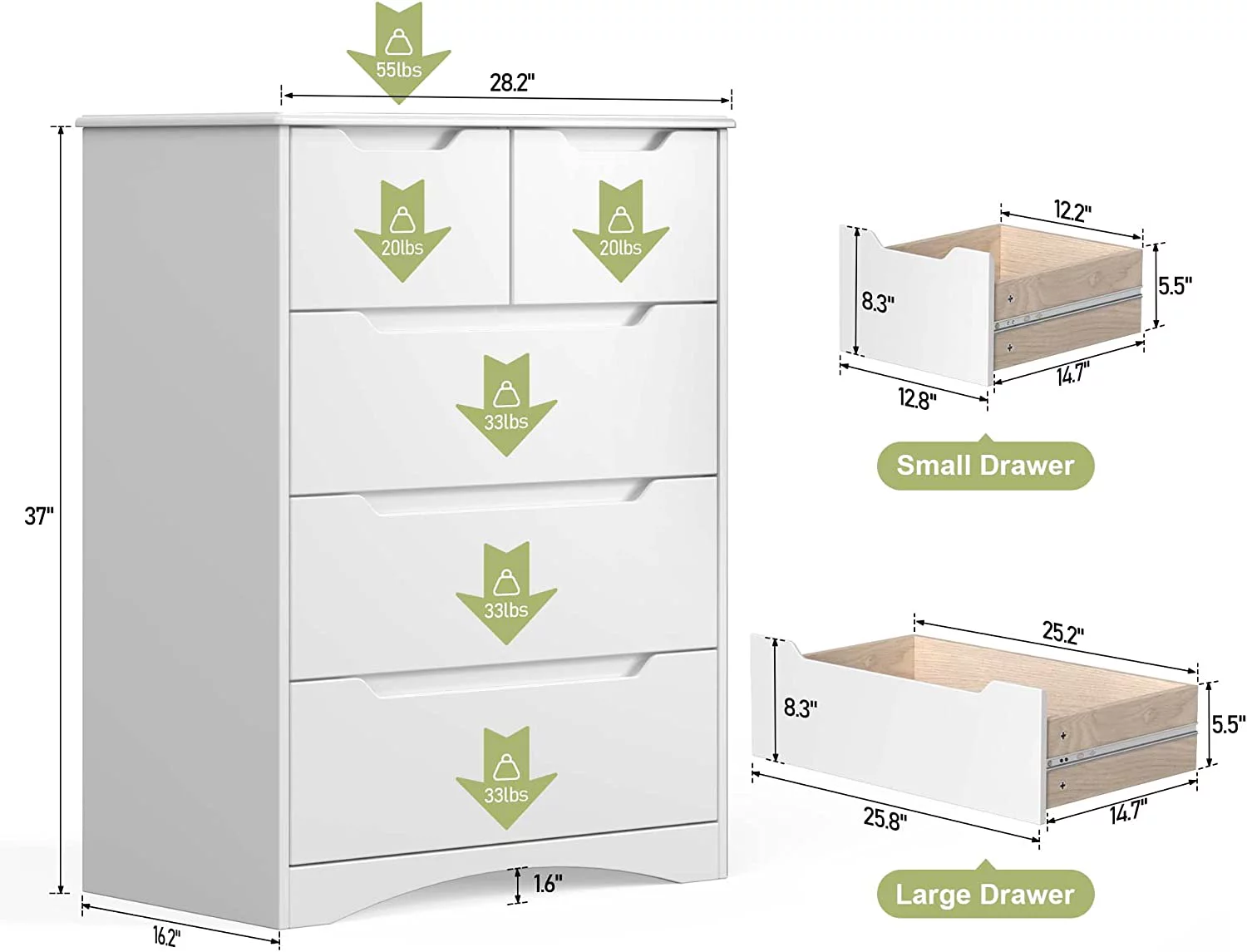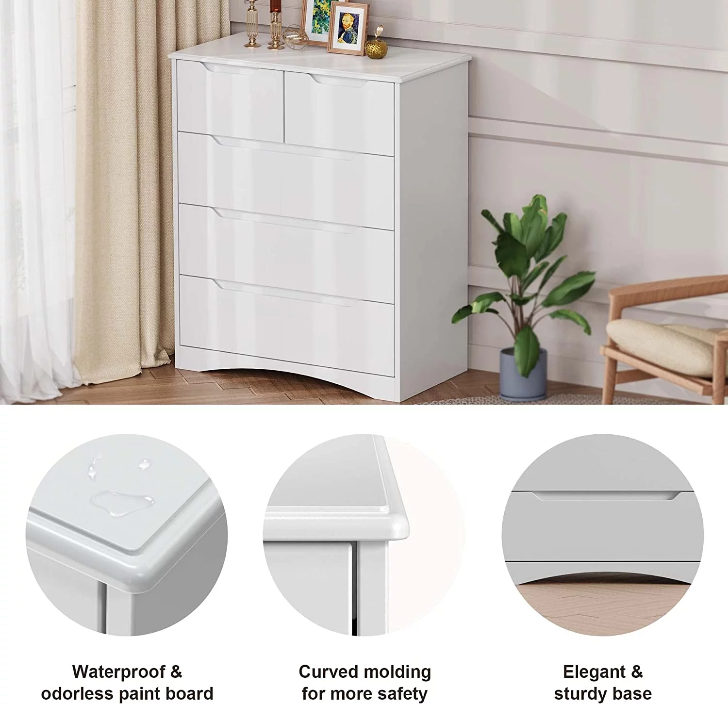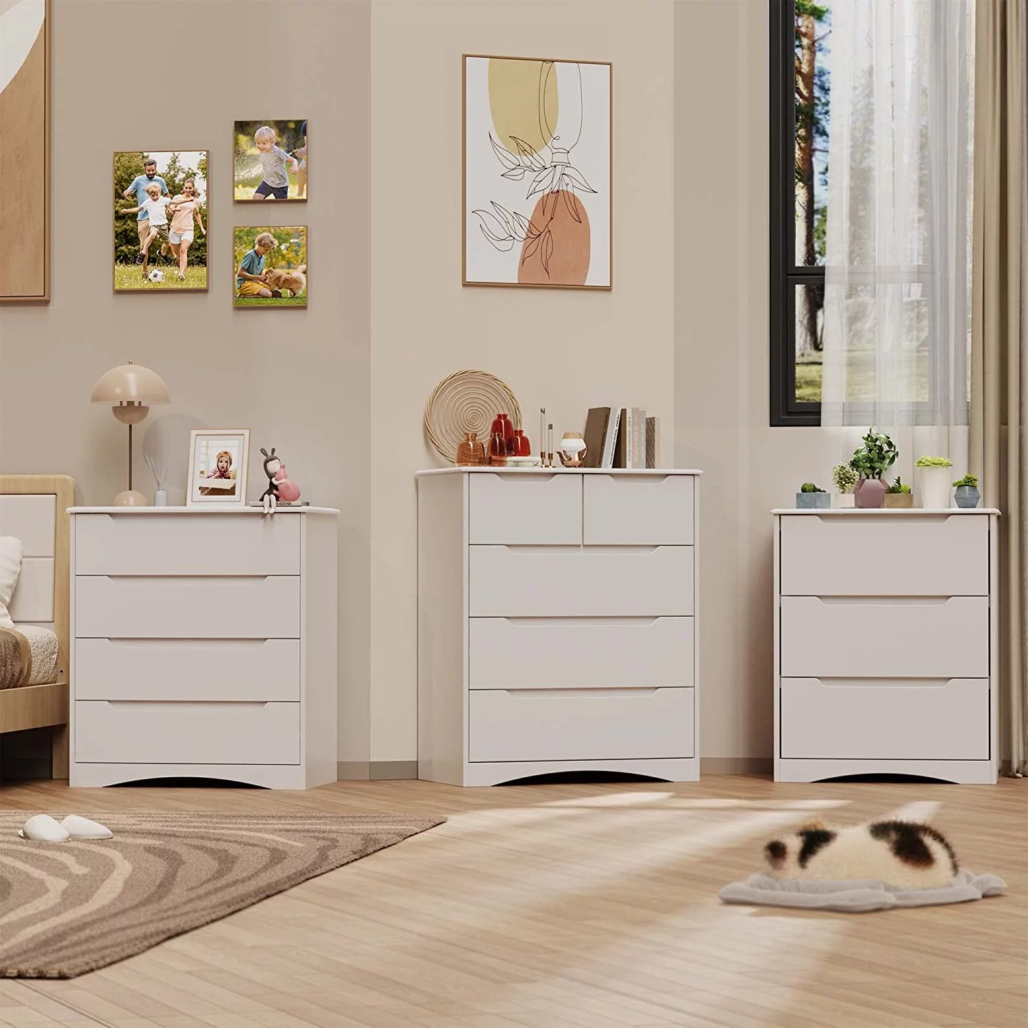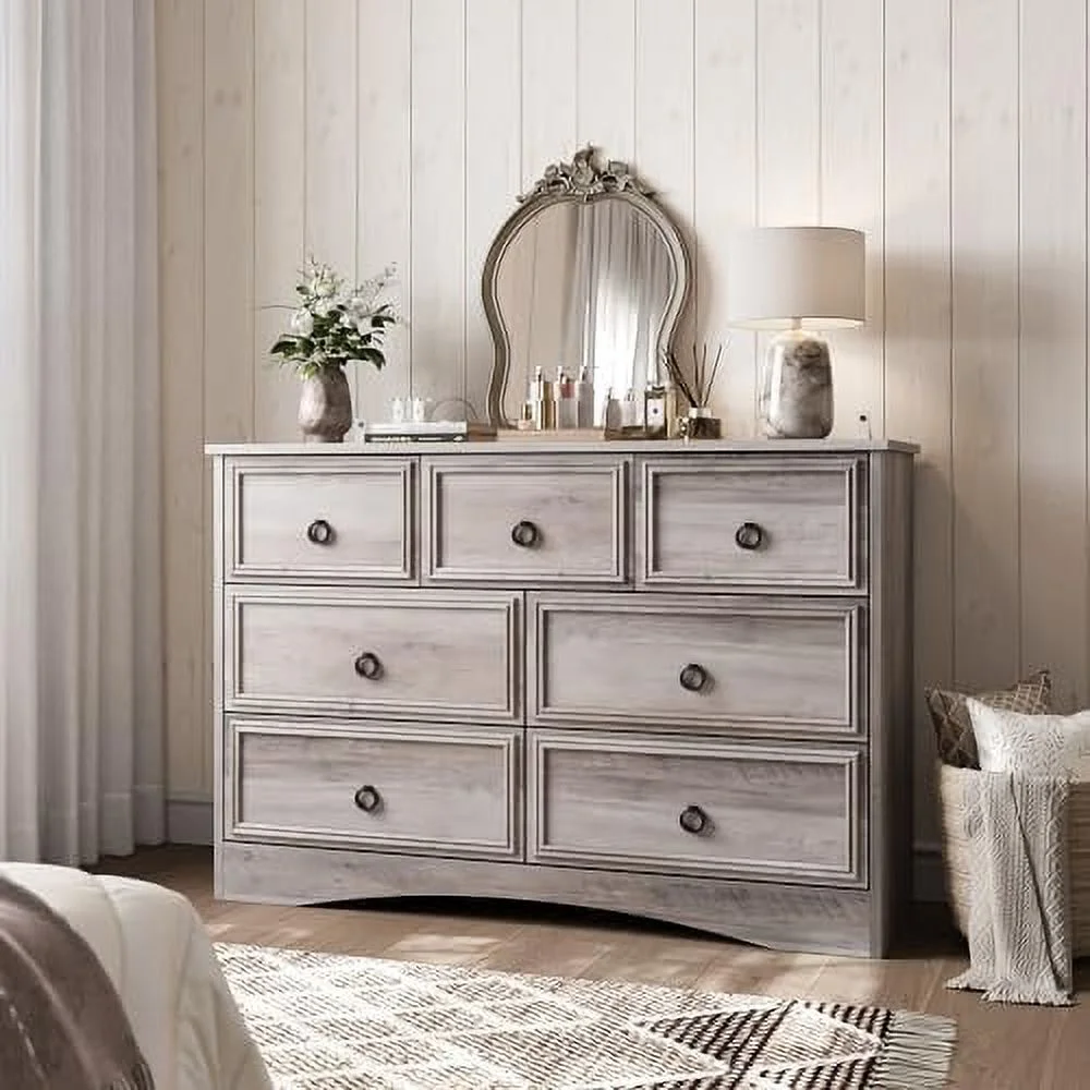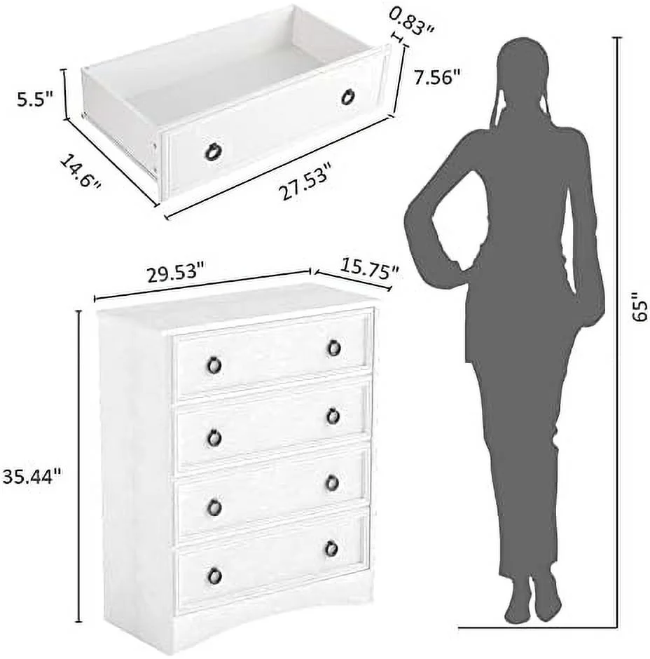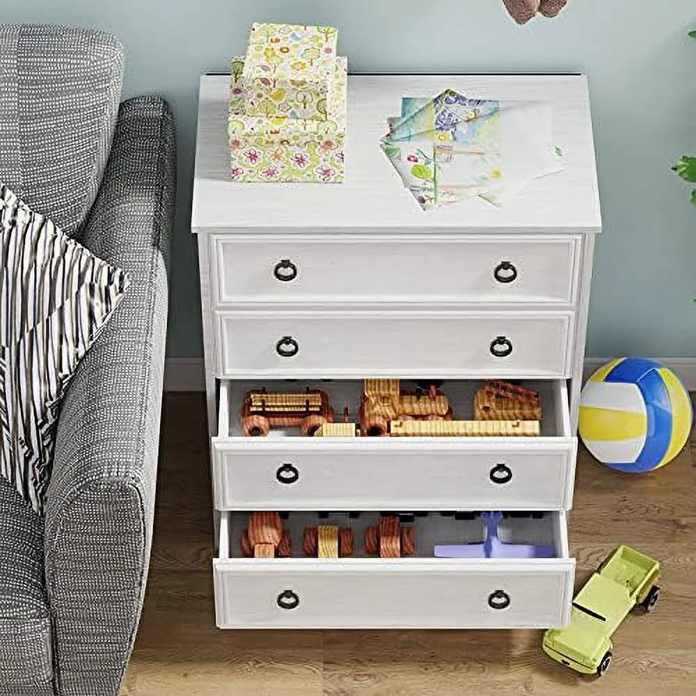 Bedroom Dresser Wood Dresser with 6 Fabric Drawers, Classic Storage Cabinet for Living Room, Hallway, White