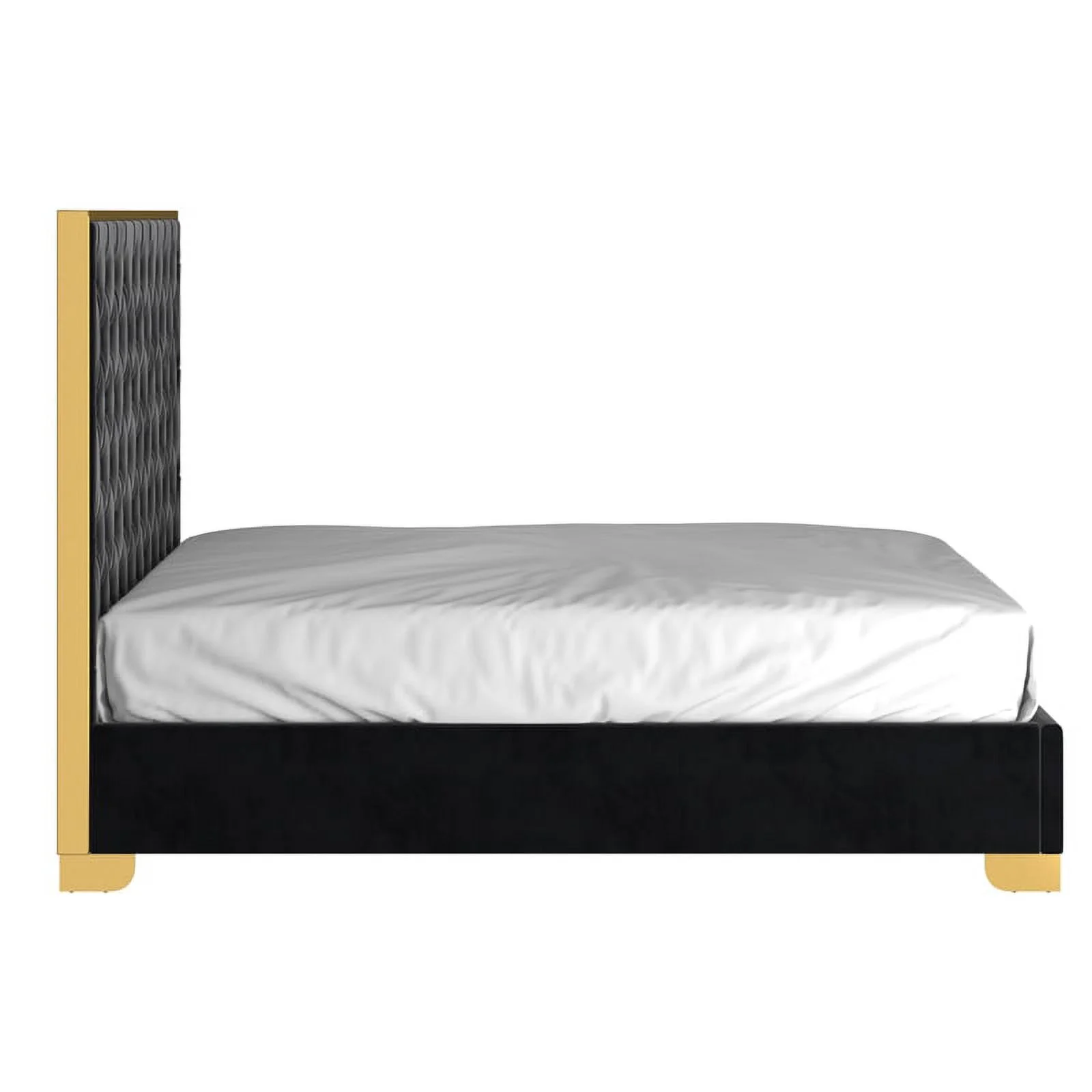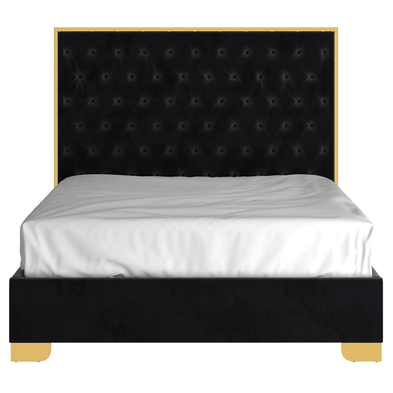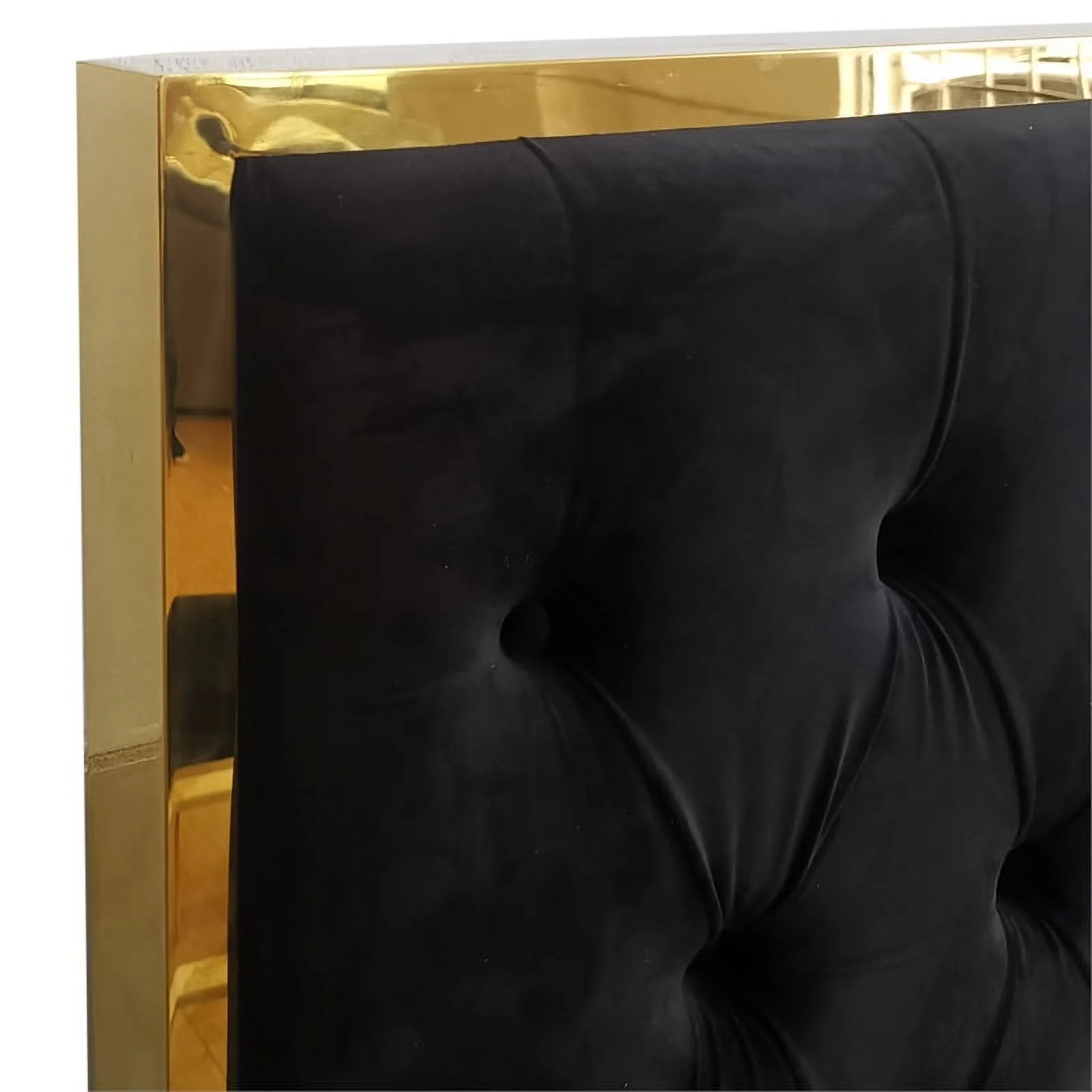 Lucille 60" Tufted Contemporary Velvet & Stainless Steel Bed in Black and Gold