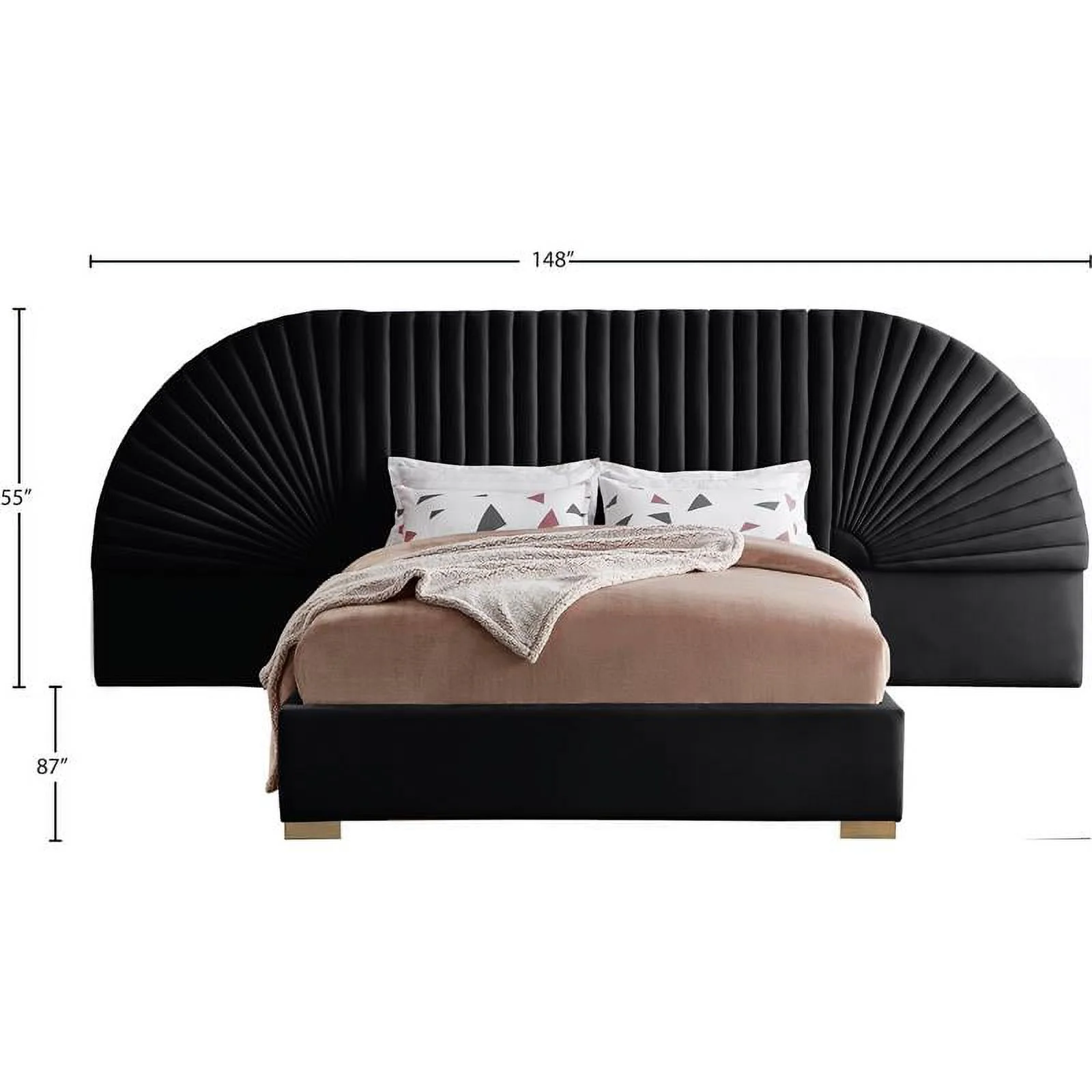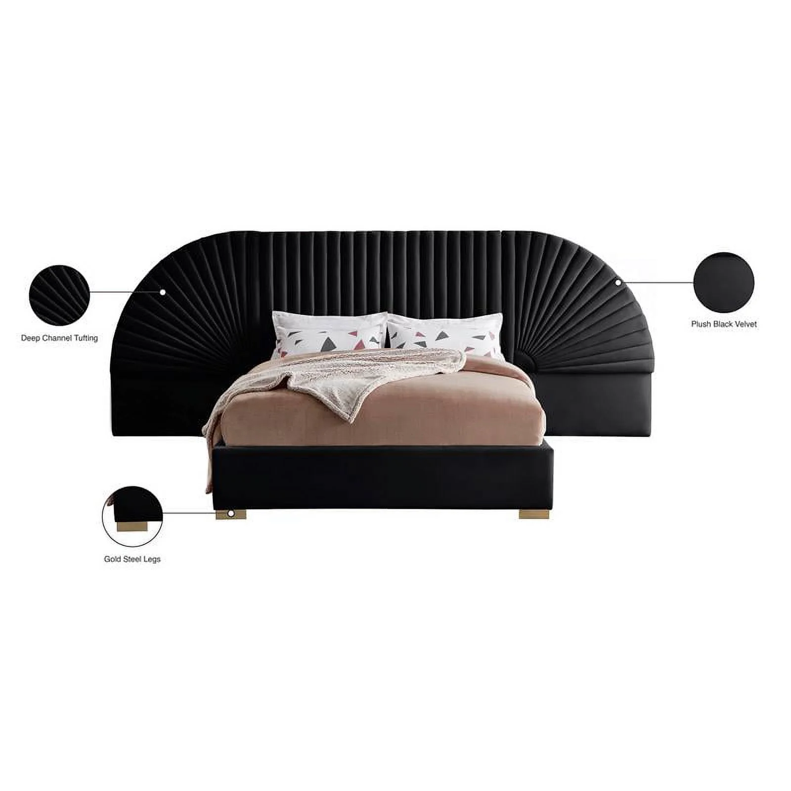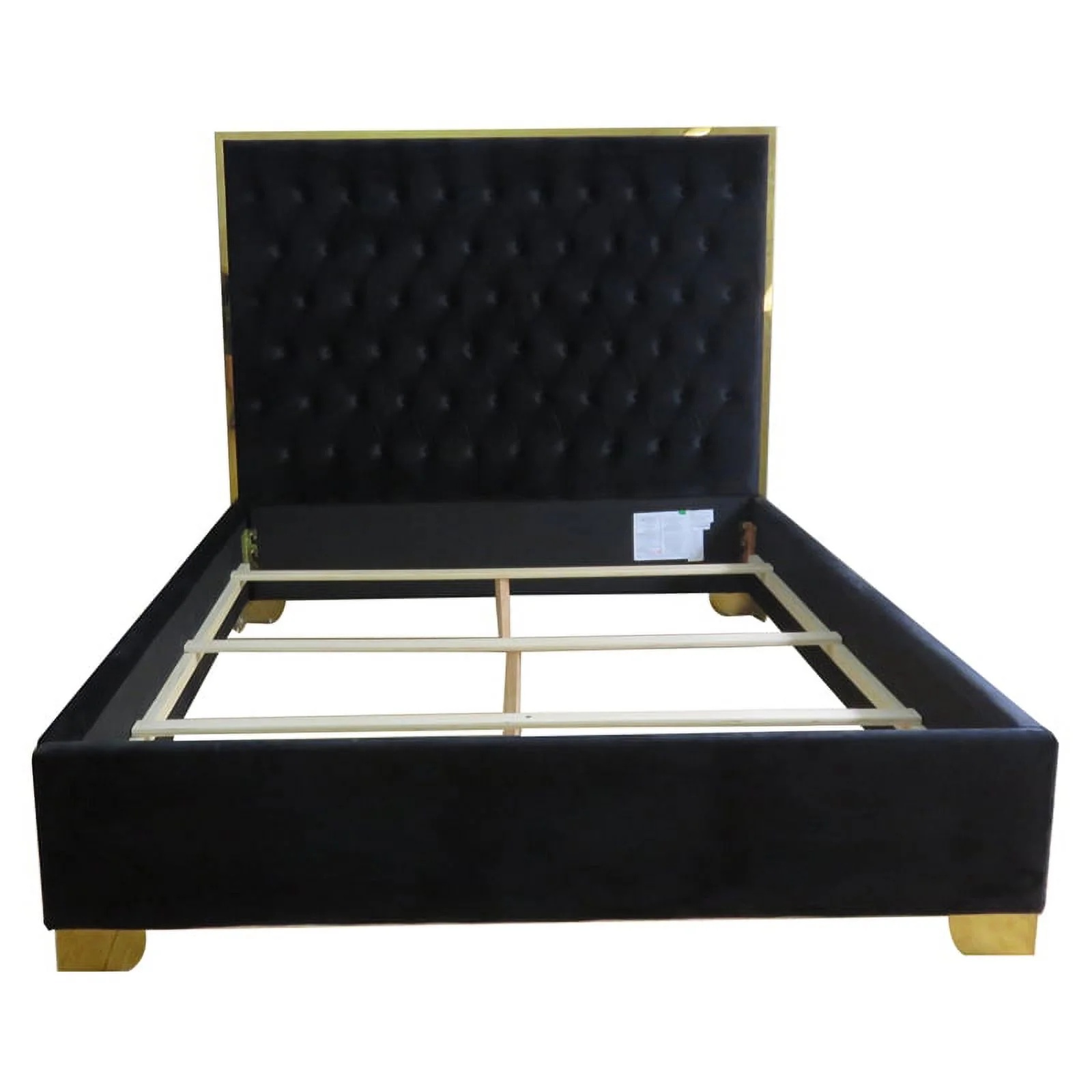 Lucille 60" Tufted Contemporary Velvet & Stainless Steel Bed in Black and Gold