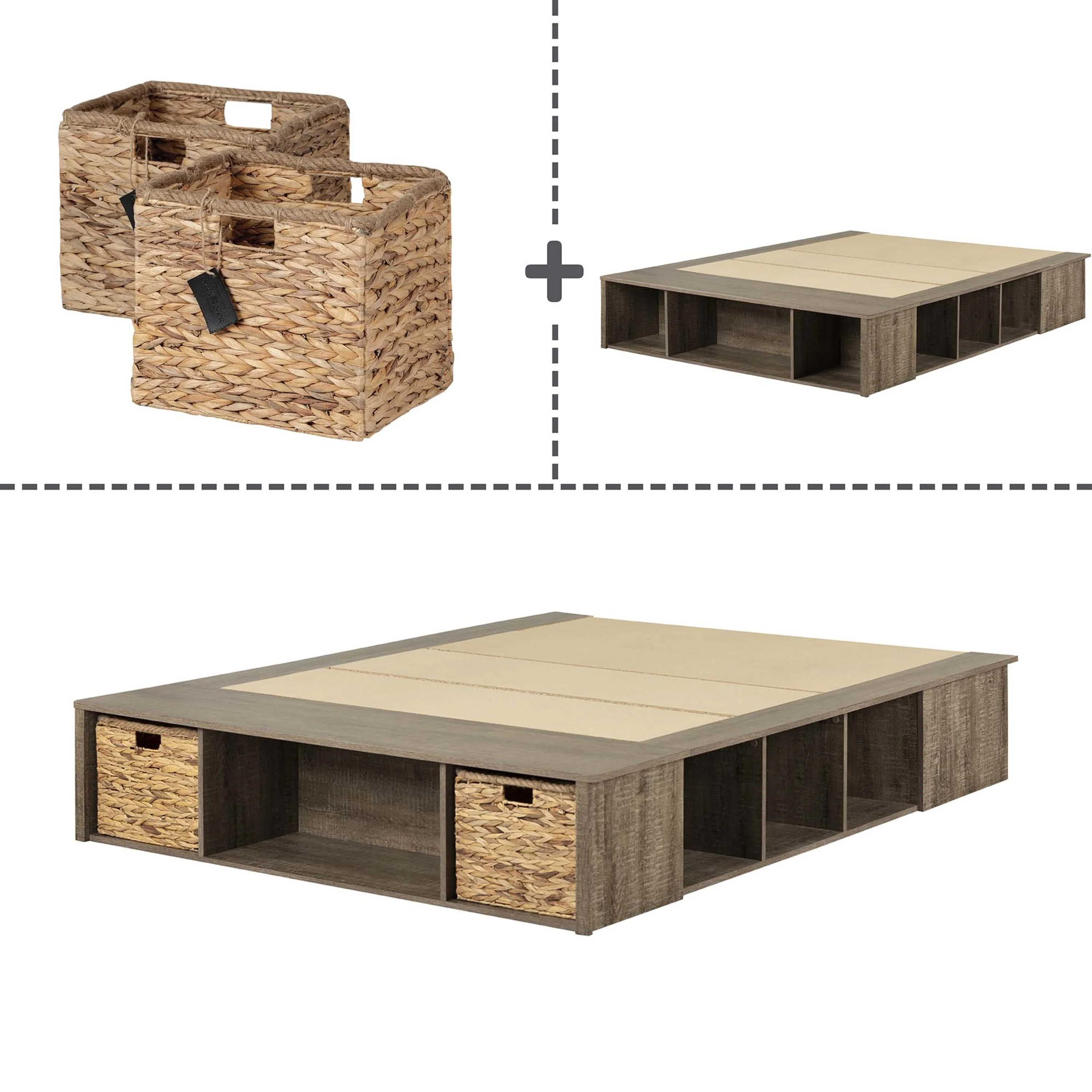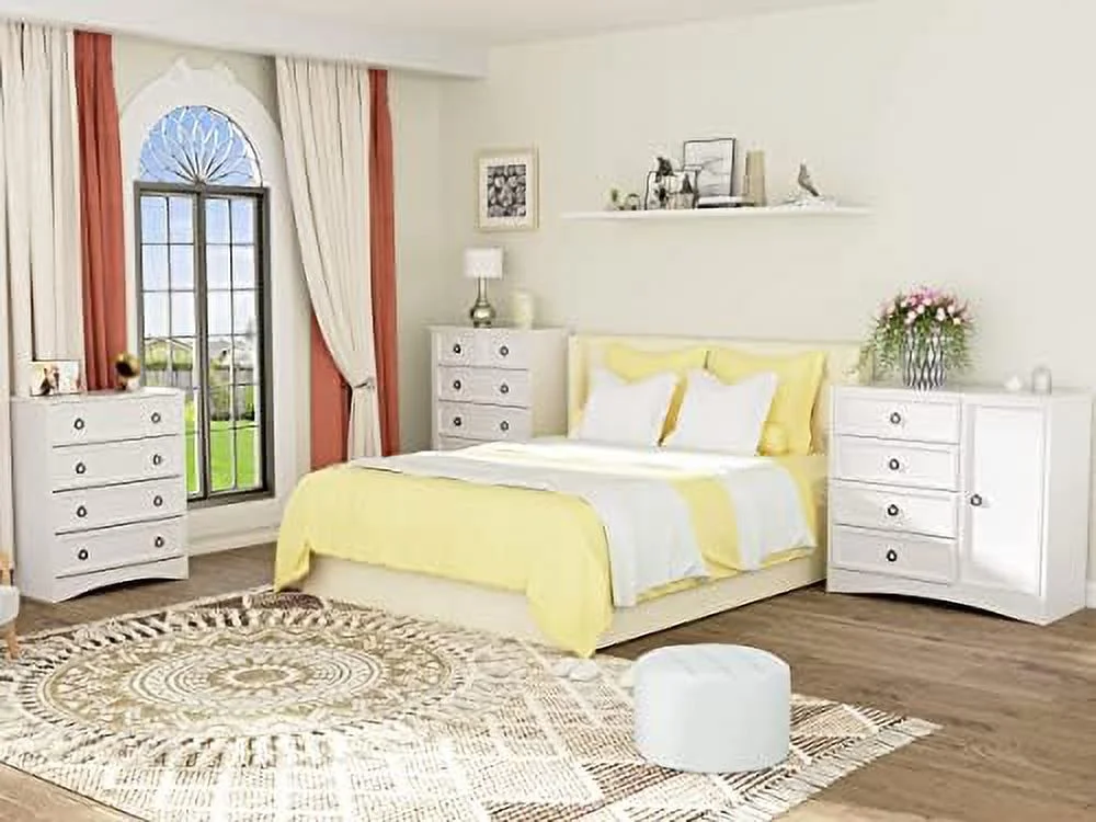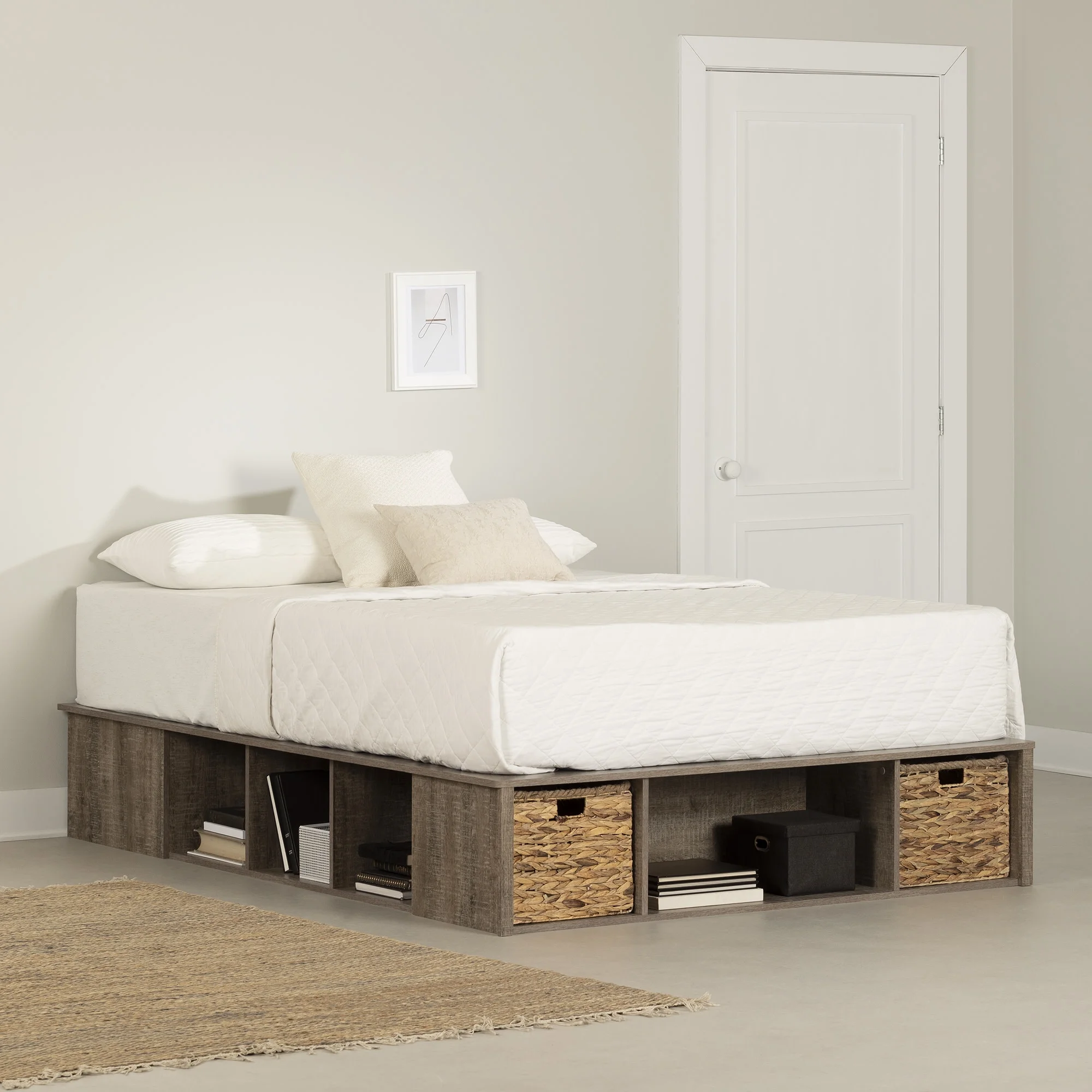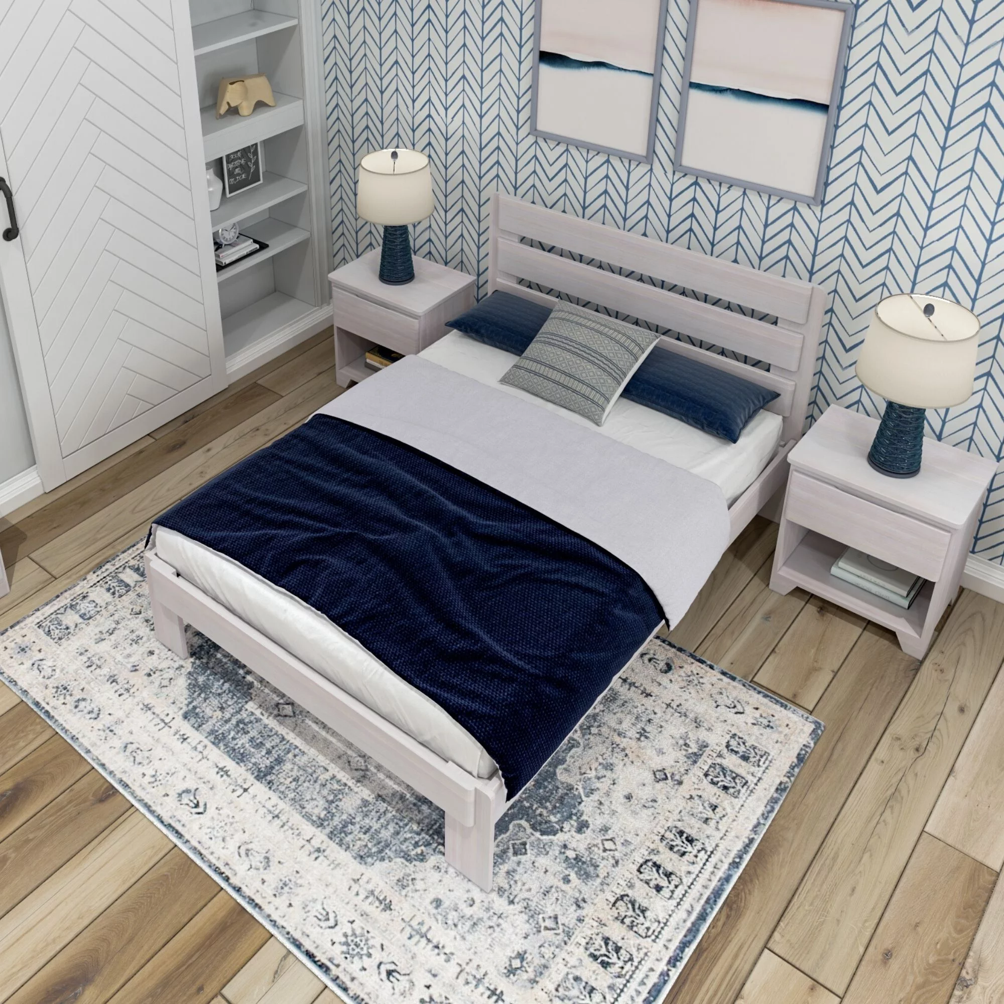 Plank+Beam Farmhouse Full Size Bed Frame with Plank Headboard, Solid Wood Platform Bed, White Wash
