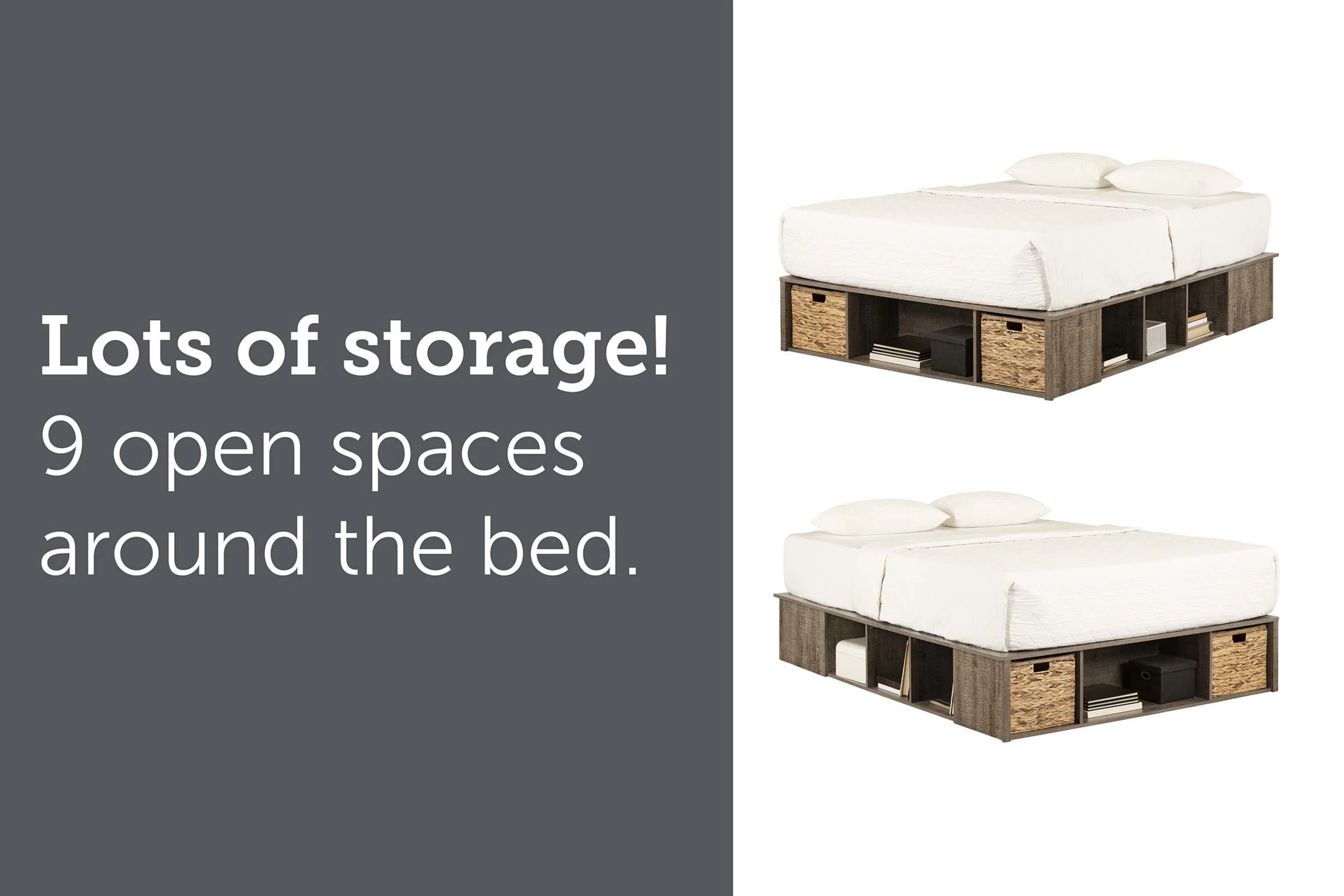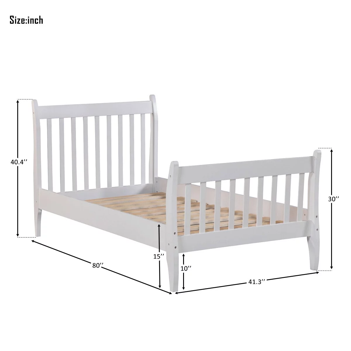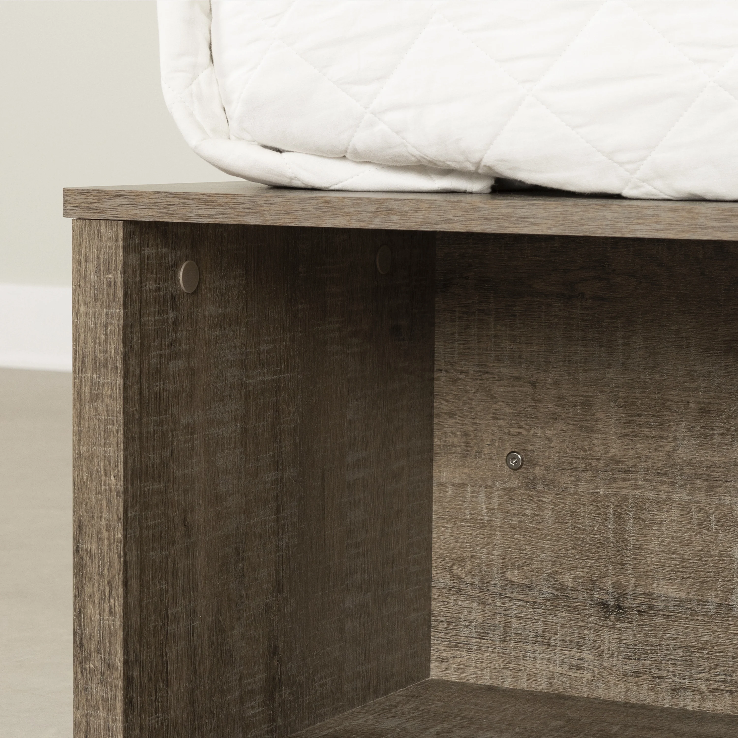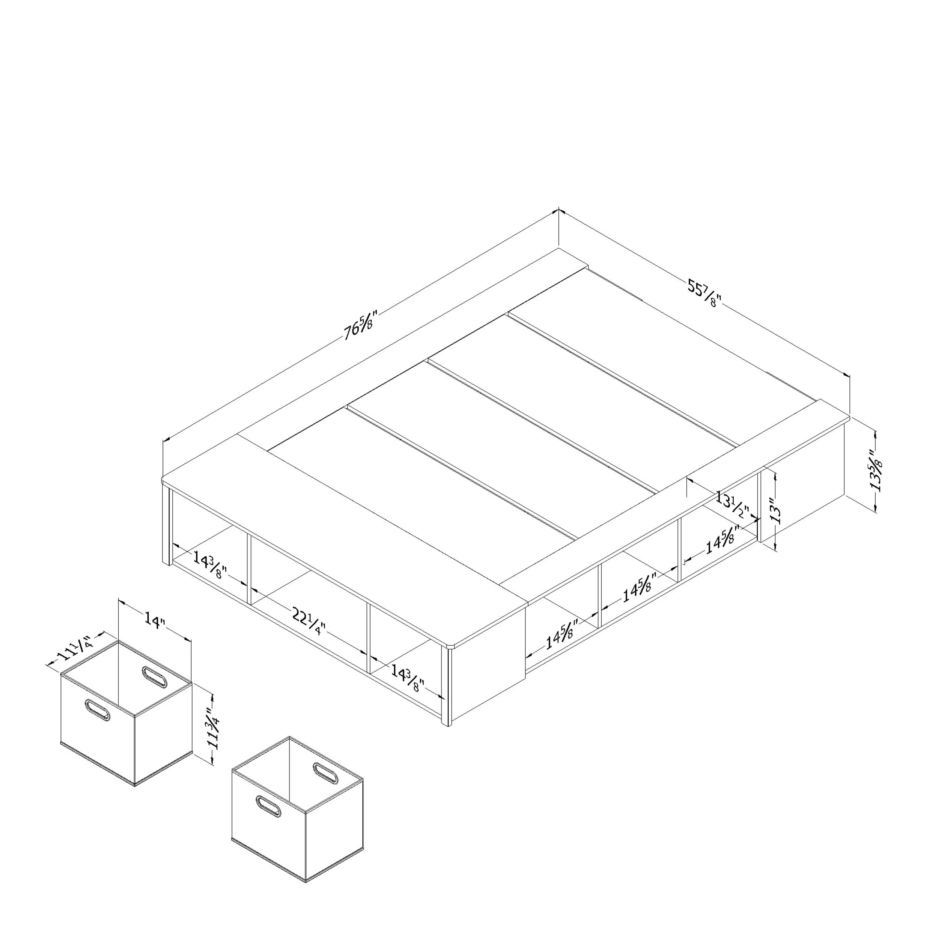 Plank+Beam Farmhouse Full Size Bed Frame with Plank Headboard, Solid Wood Platform Bed, White Wash