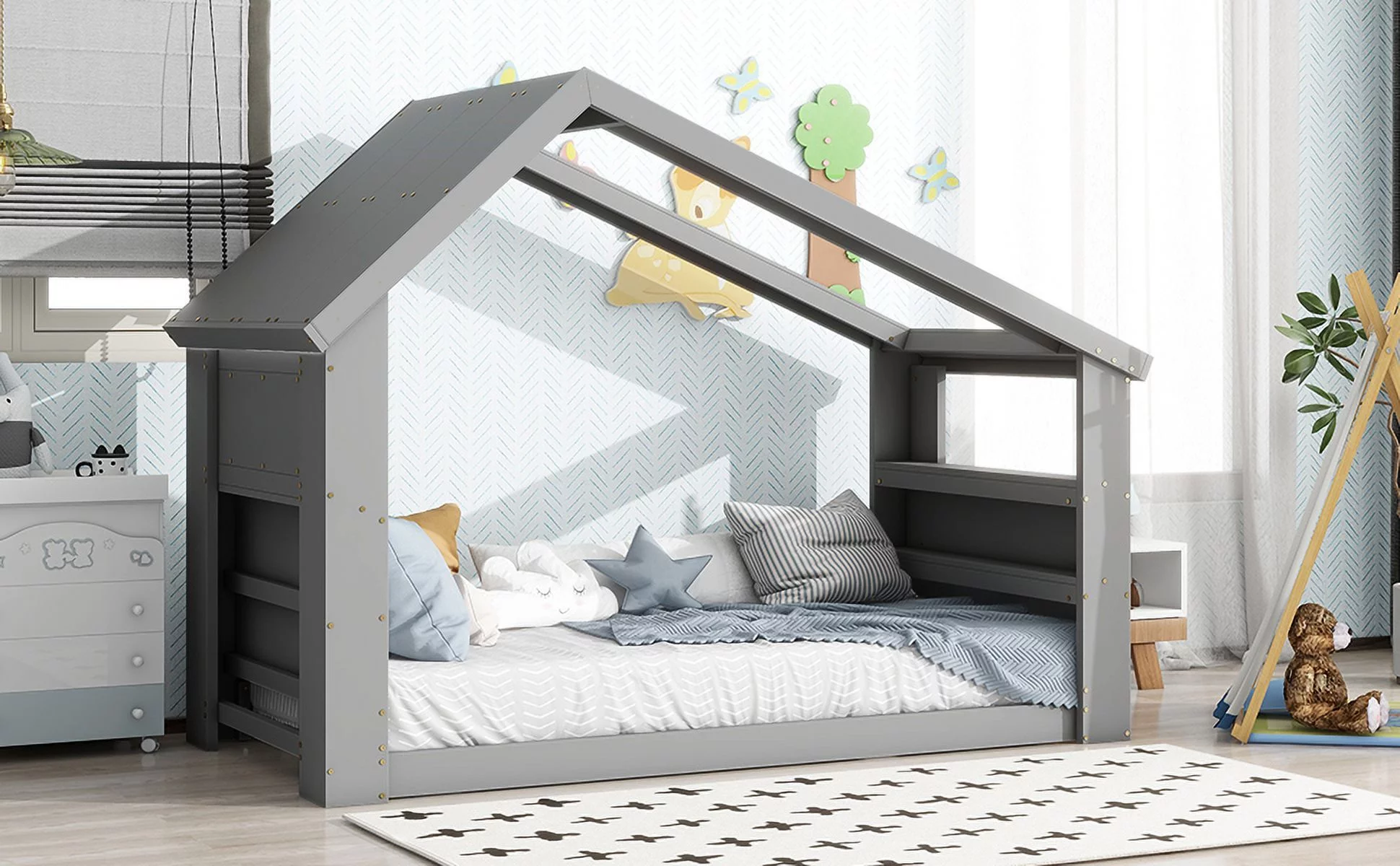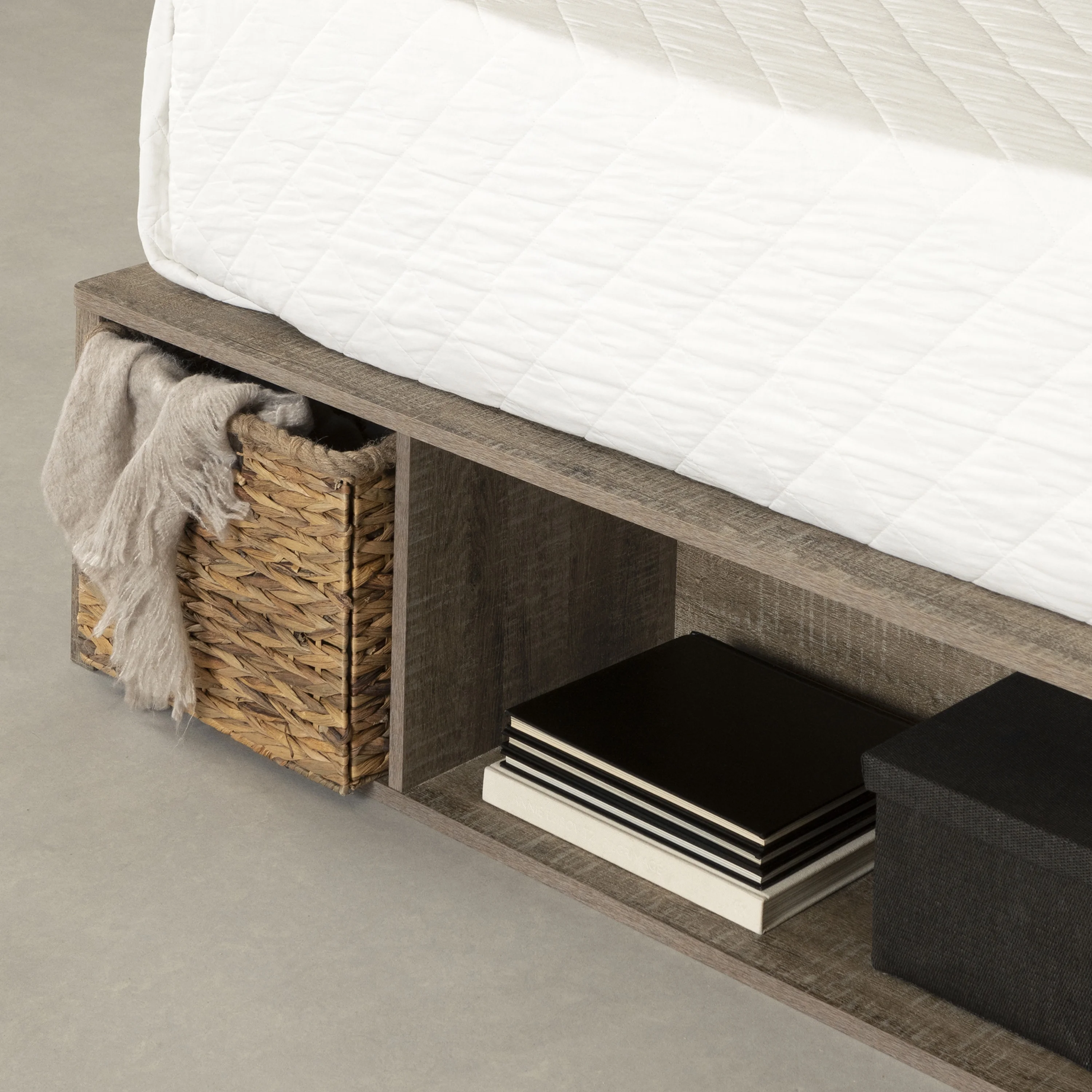 AFI NoHo Farmhouse Solid Wood Full Bed with Footboard with USB Charger in Gray