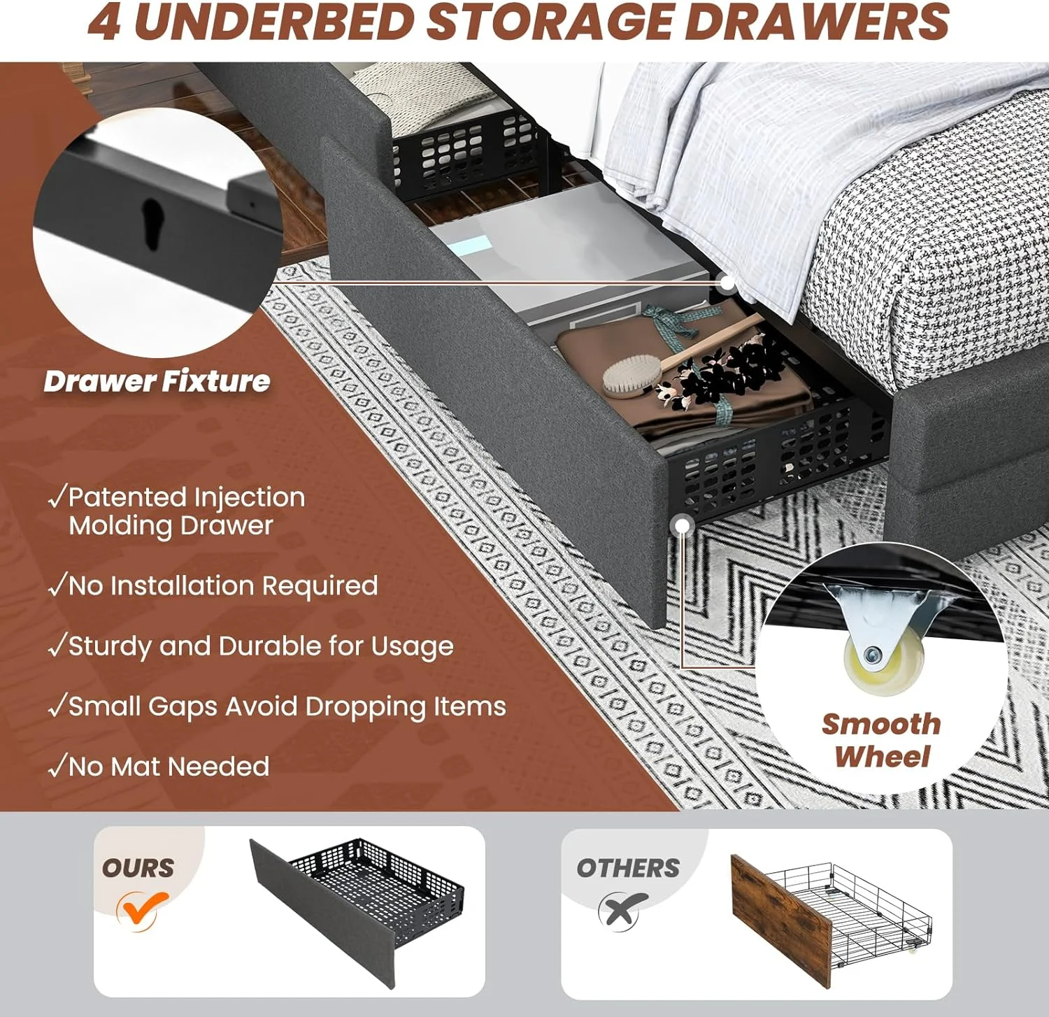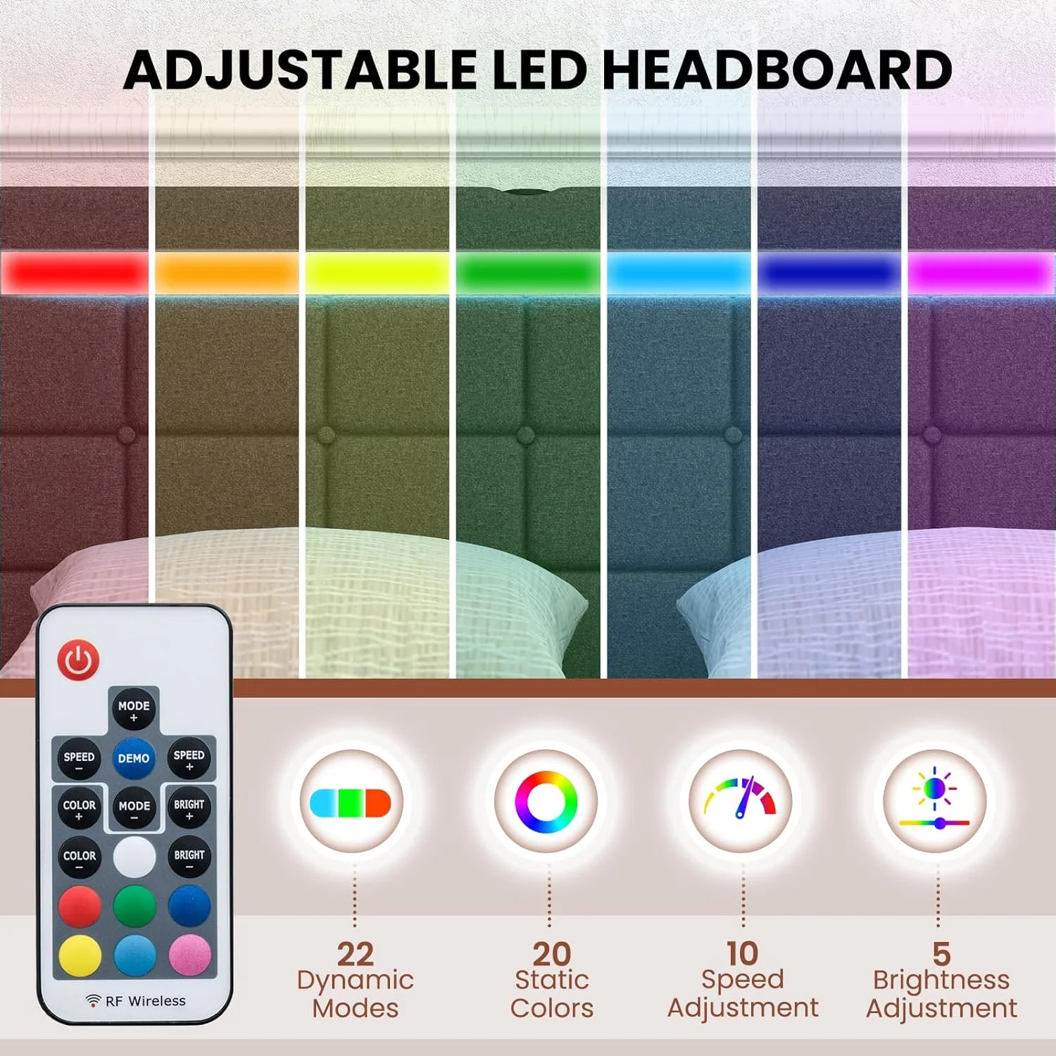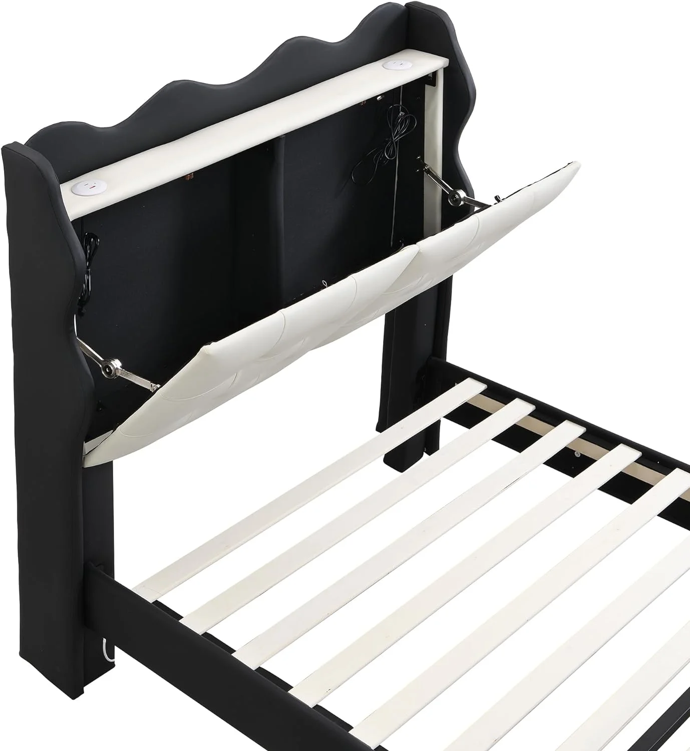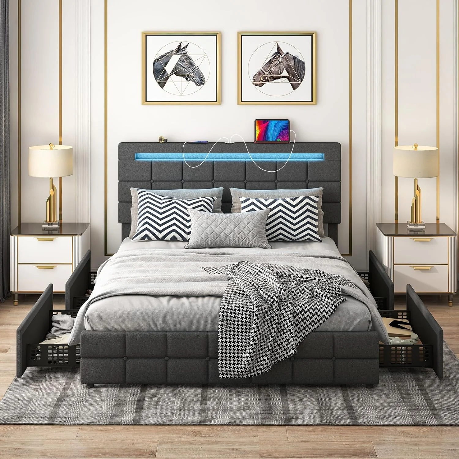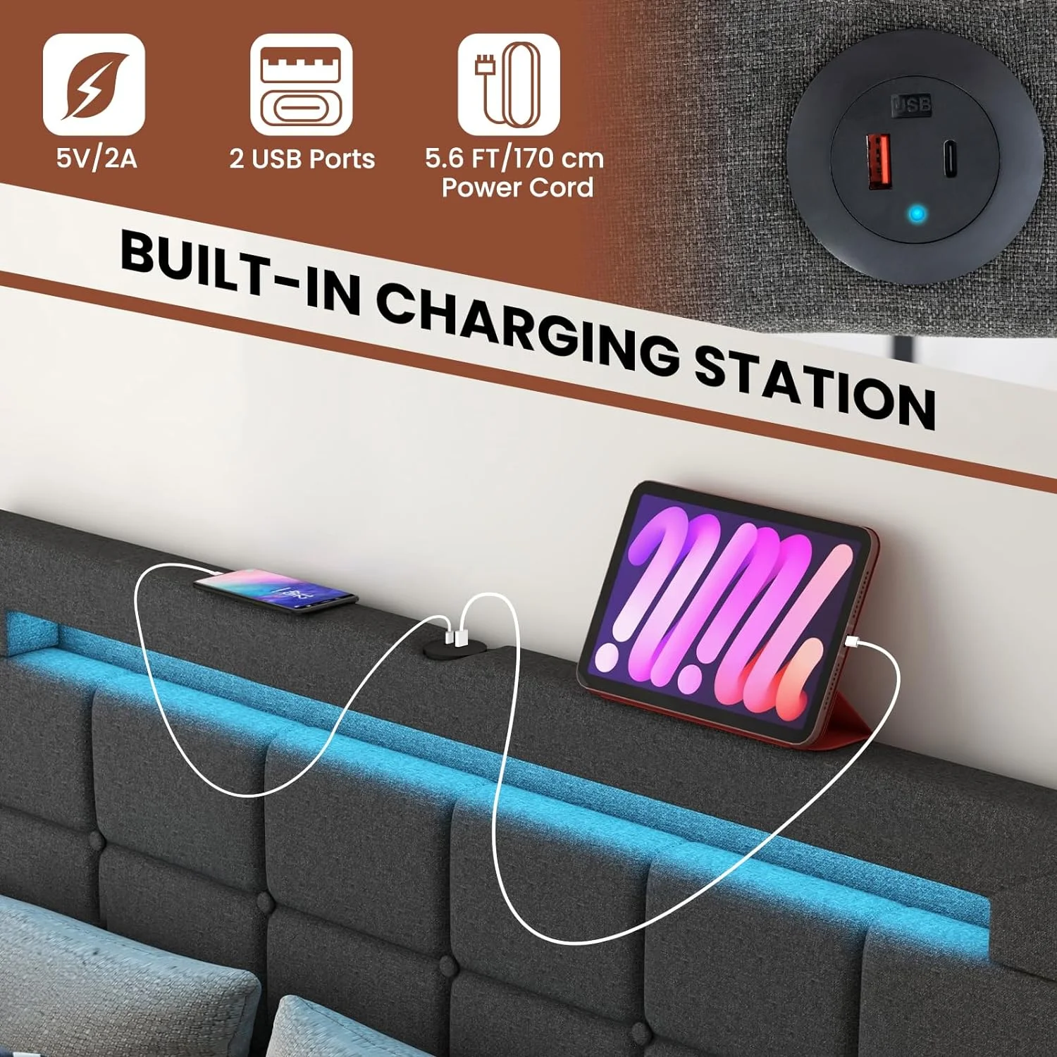 Twin Size Upholstery Platform Bed Frame with LED Light Strips,Headboard Storage Space and Two USB Charging Deisgn