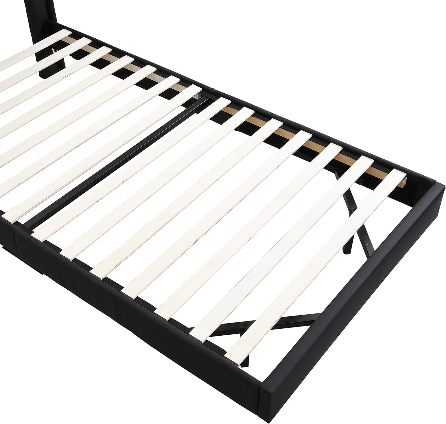 CoSoTower Twin Size Platform Bed with Bear Ears Shaped Headboard and Led, Cream White