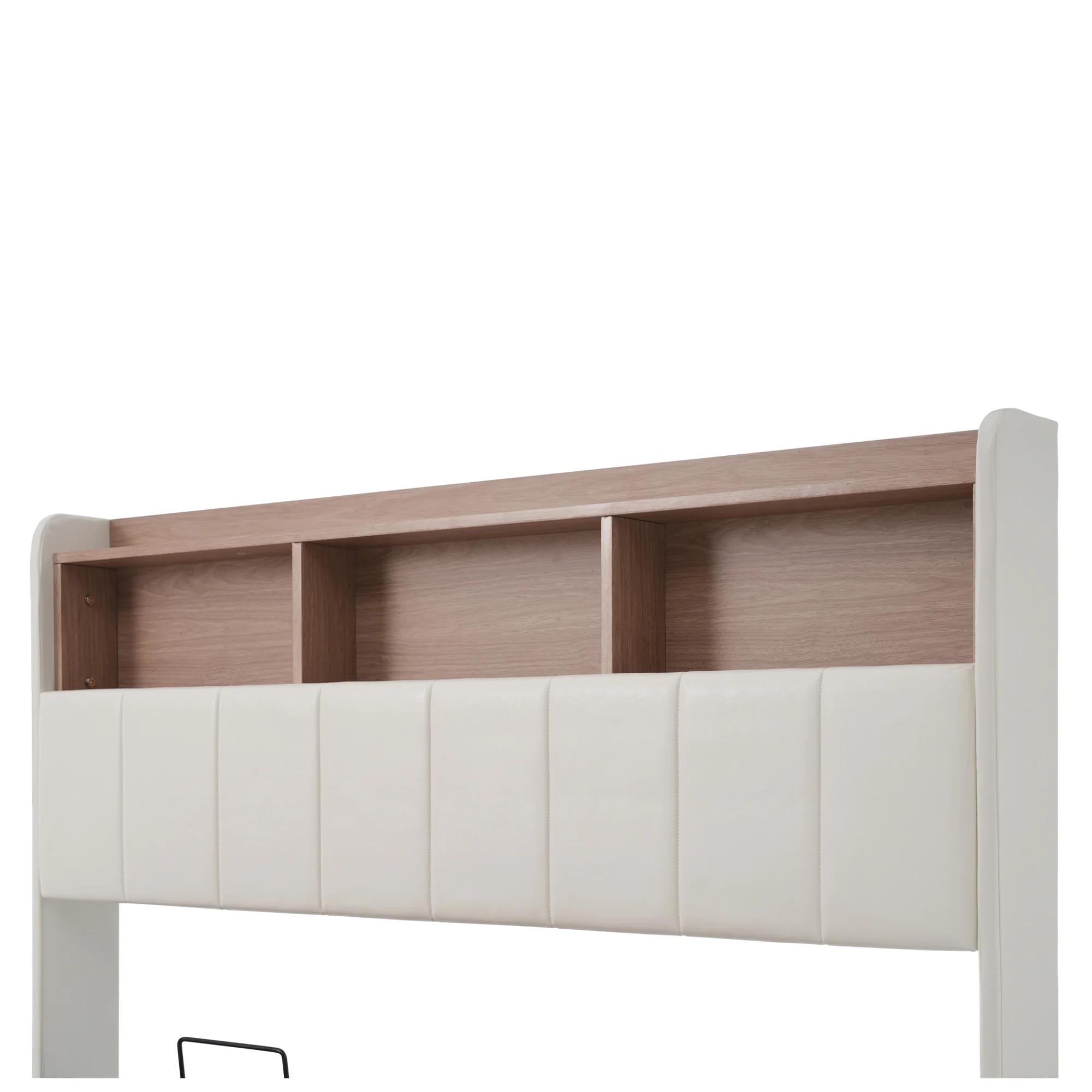 Twin Size Platform Bed with Bear Ears Shaped Headboard and LED, Cream White
