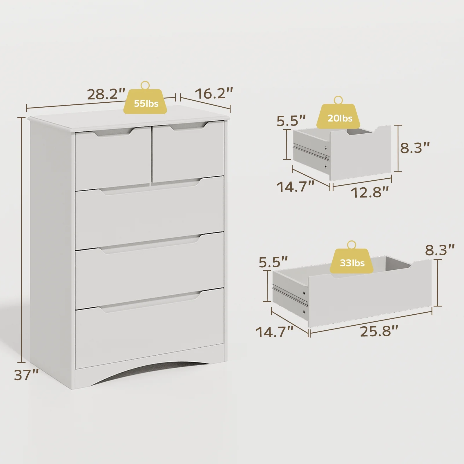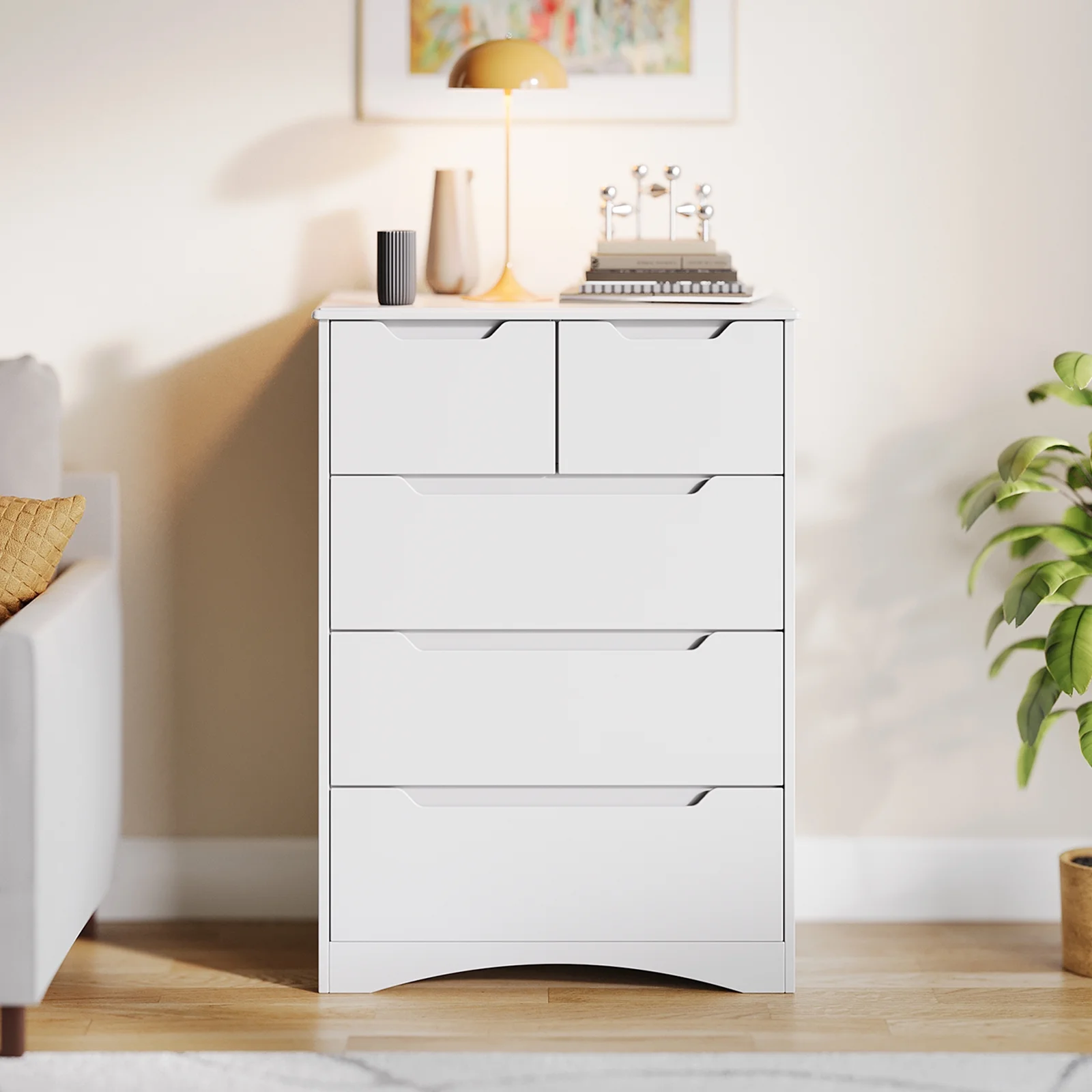 Asofer Bedroom Dressers, 5 Drawer Chest for Clothes and Toys, Living Room Wood Storage Cabinet , White