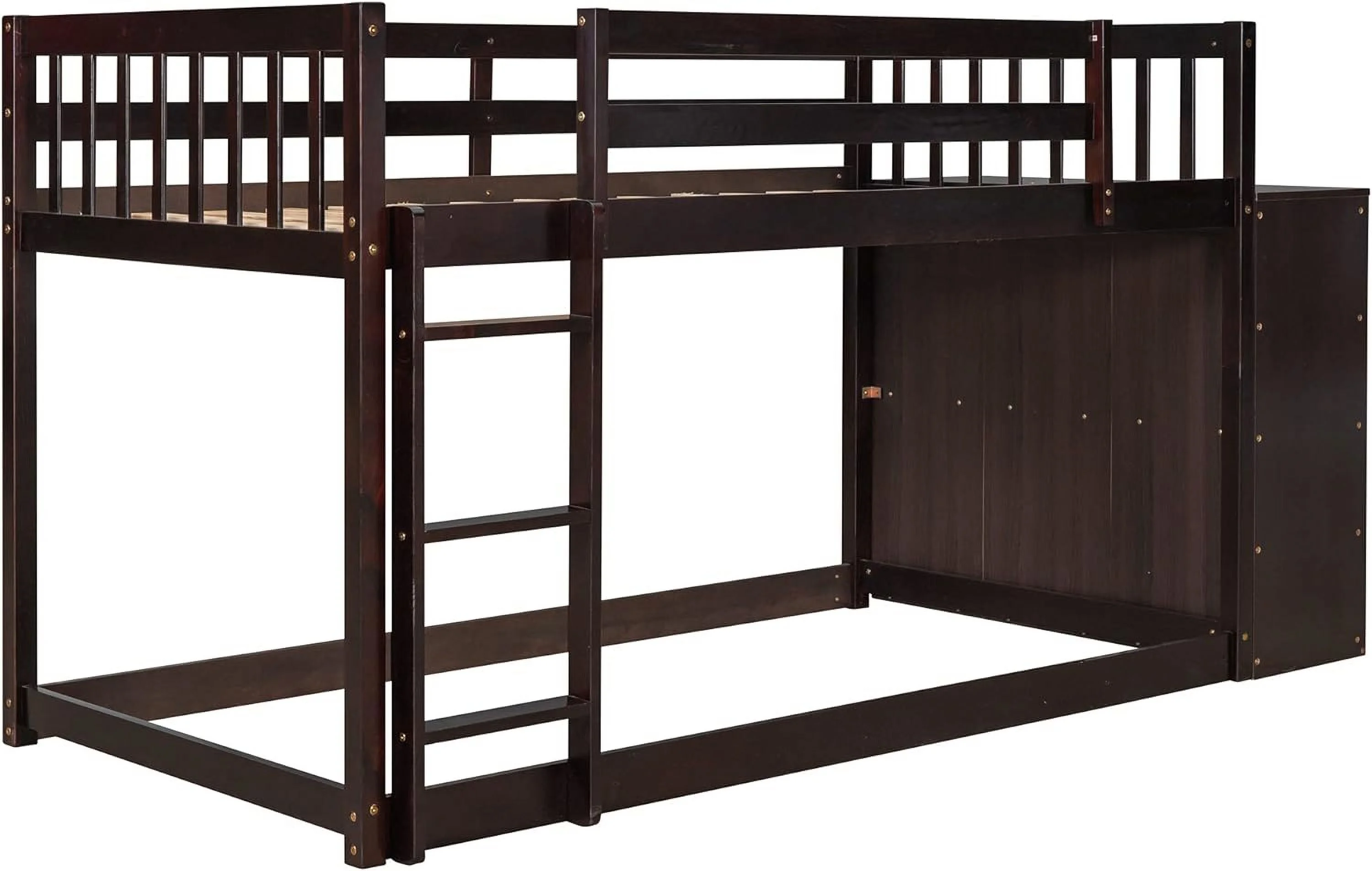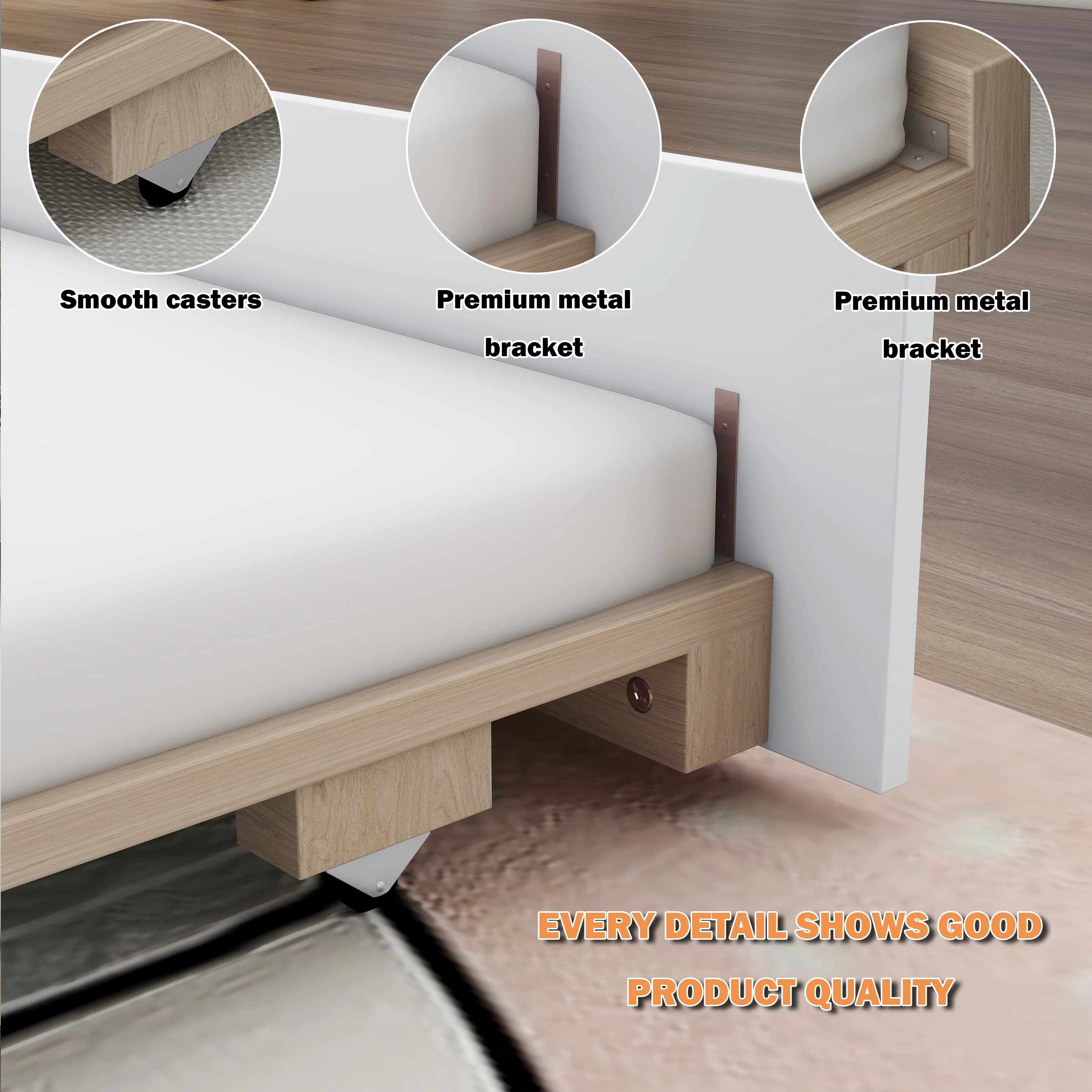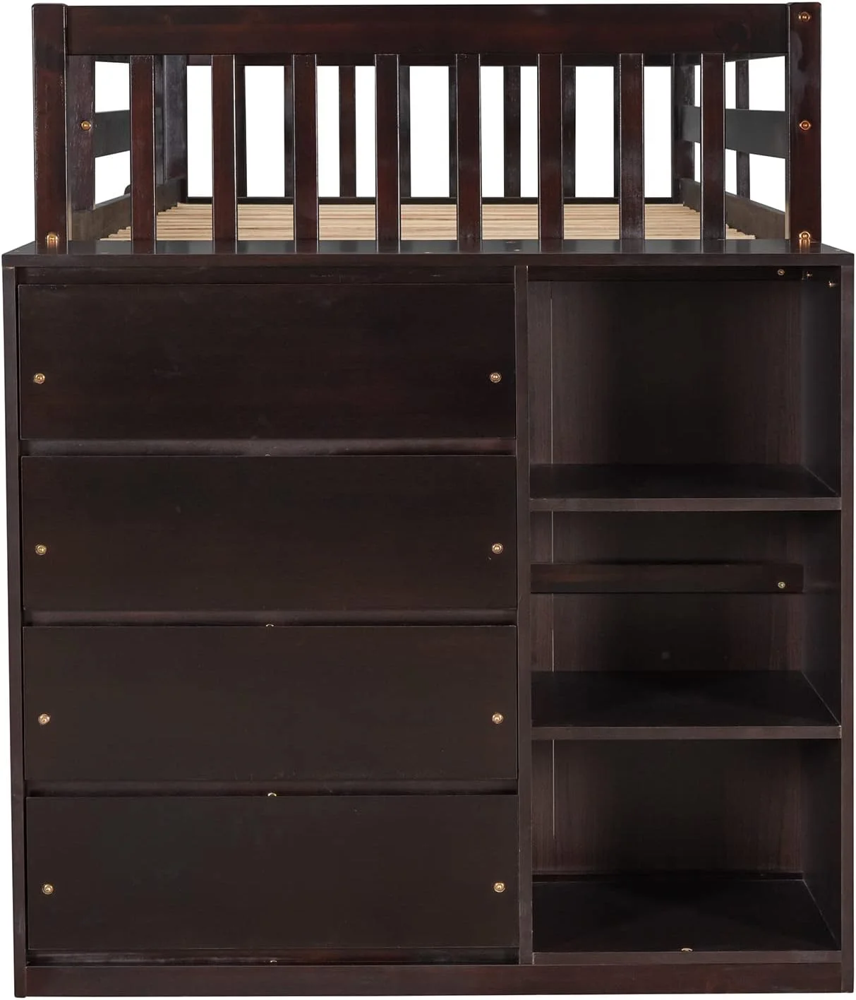 Bunk Bed, Over Bunk Bed With Drawers For Kids/Teens, Wood Platform 4 Bed Frame With Support Slats (White)